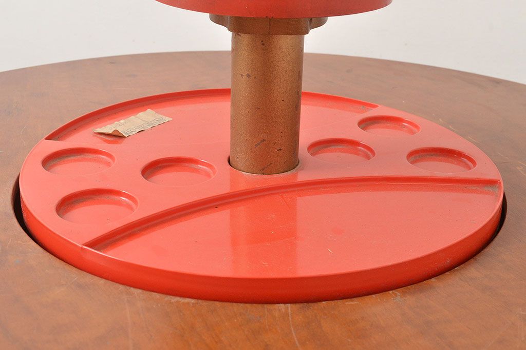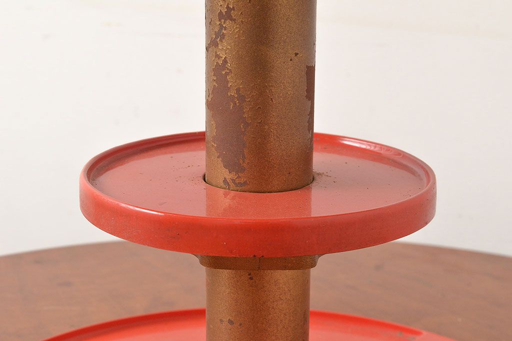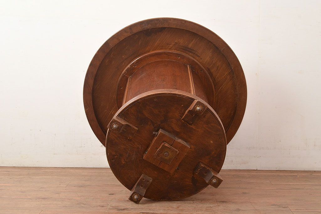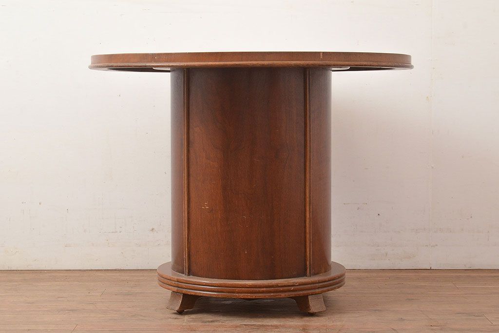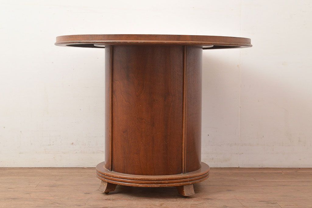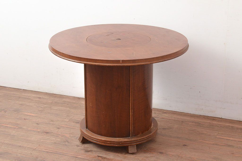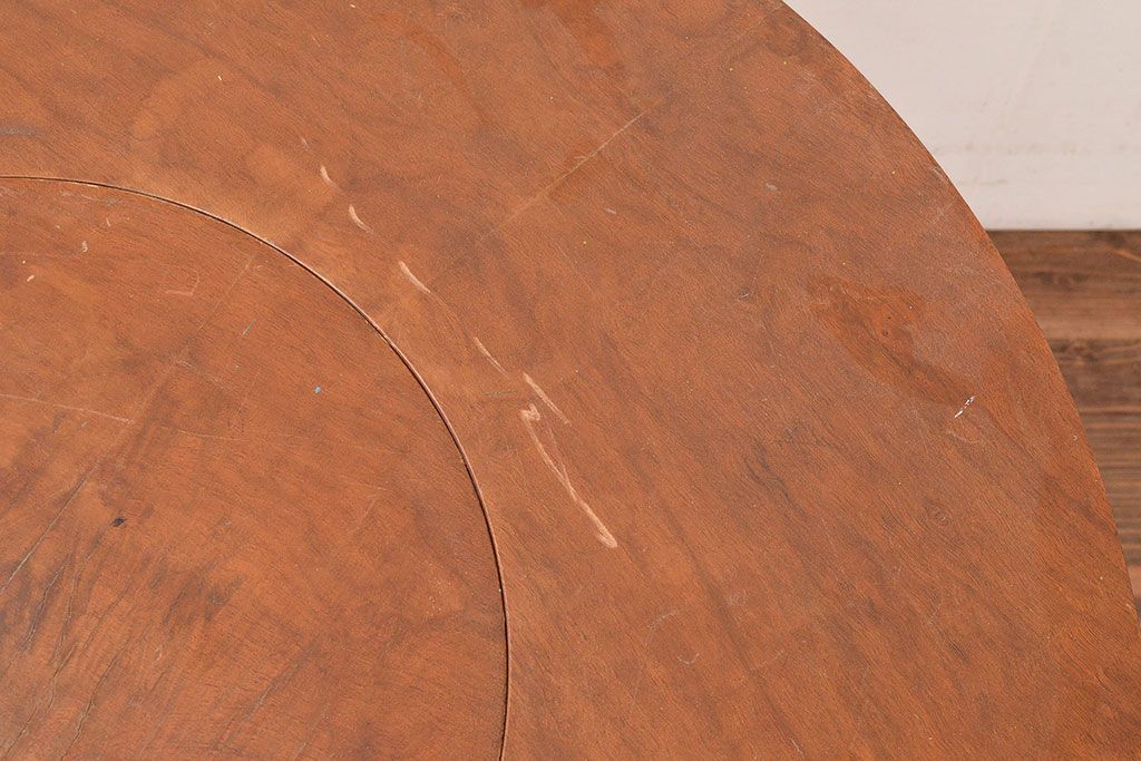 ラフジュ工房> テーブル> 丸テーブル > 和製ヴィンテージ 珍品 店舗什器におすすめ!可動式の棚が付いた変わったつくりのセンターテーブル(ラウンドテーブル、ビンテージ)(R-048400)