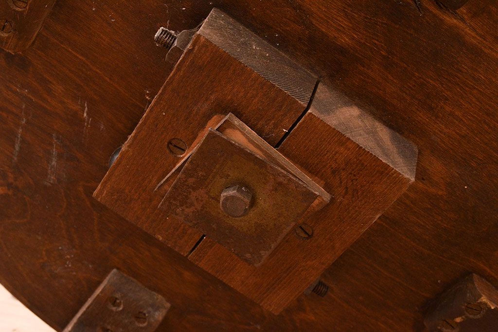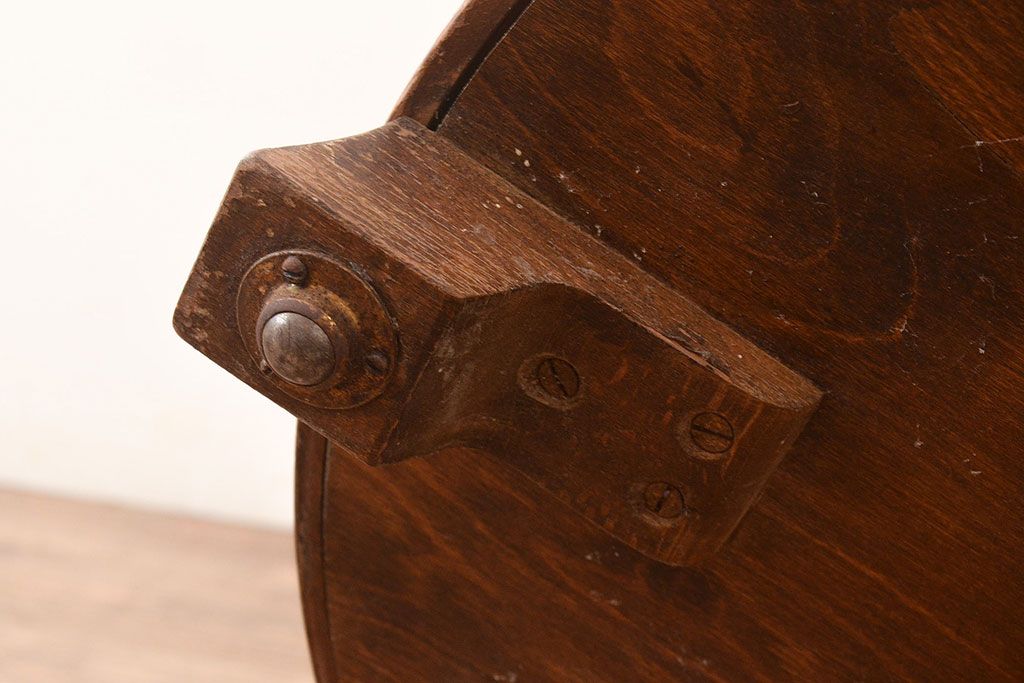 和製ヴィンテージ 珍品 店舗什器におすすめ!可動式の棚が付いた変わったつくりのセンターテーブル(ラウンドテーブル、ビンテージ)(R-048400)