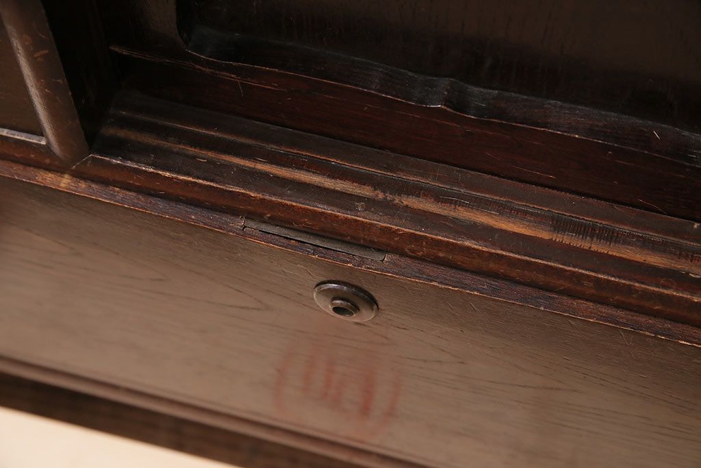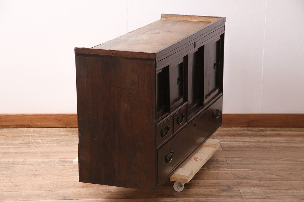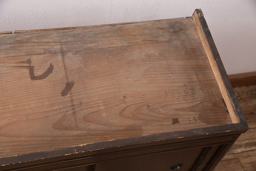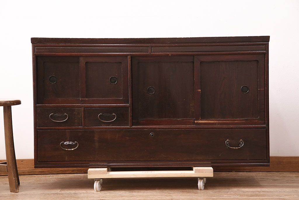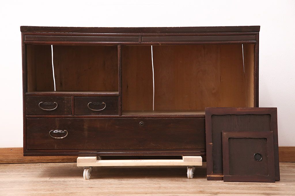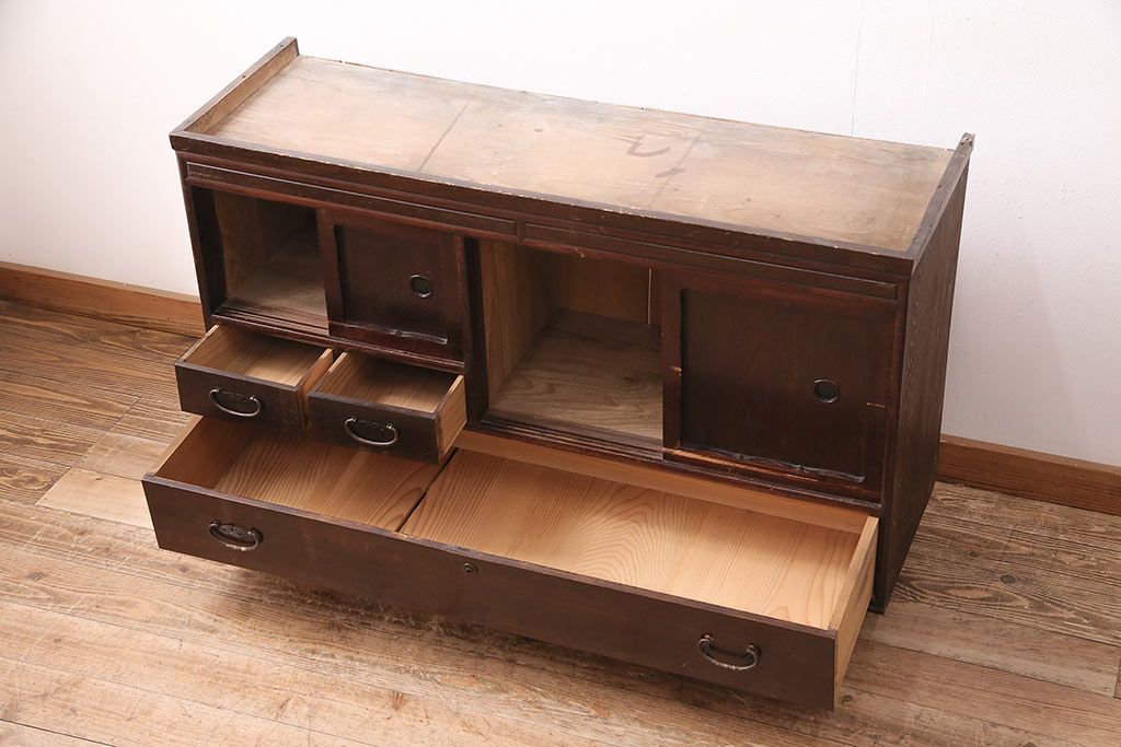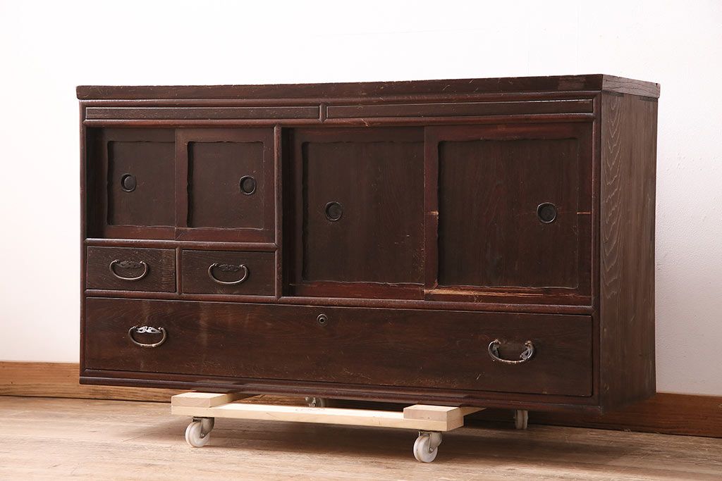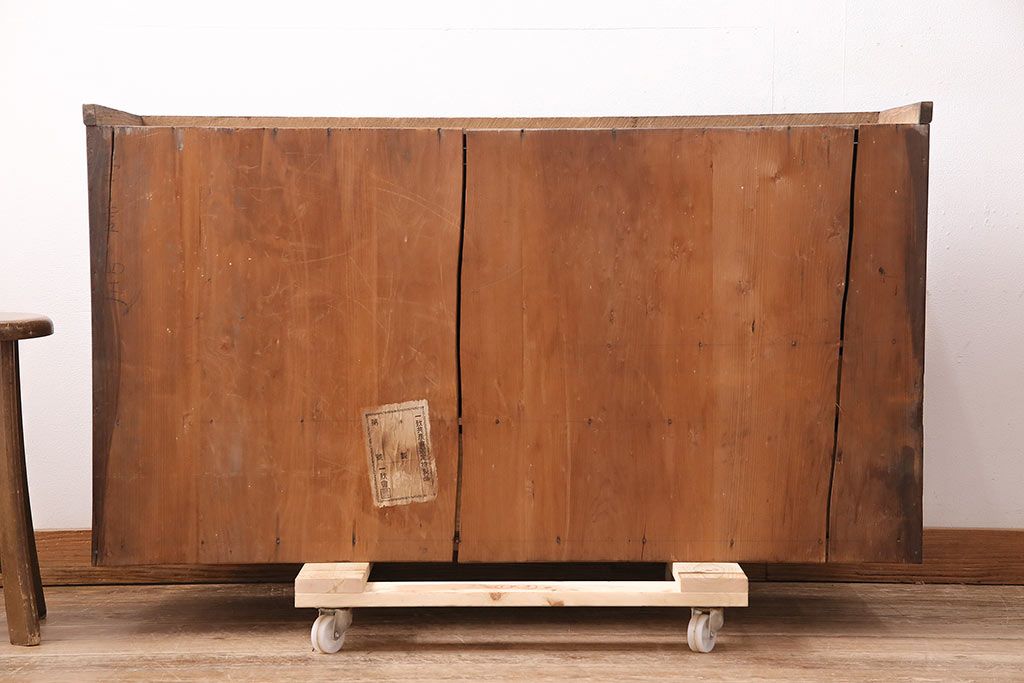 和製アンティーク 昭和レトロ 戸棚と引き出し3杯!ノスタルジックな雰囲気が素敵な箪笥サイドボード(収納棚、リビングボード、キャビネット)(R-047887)