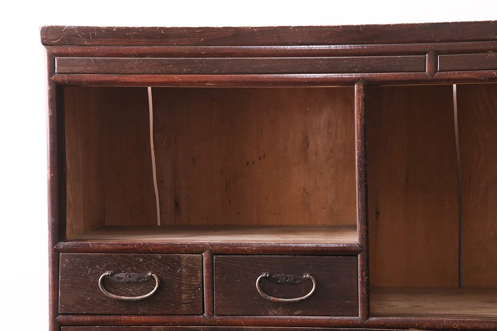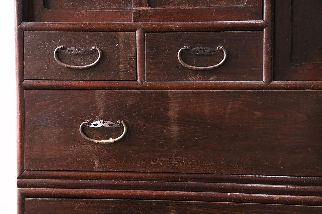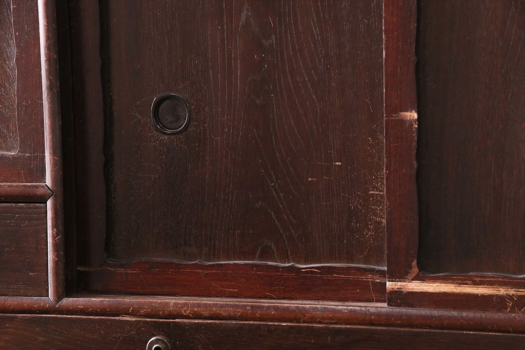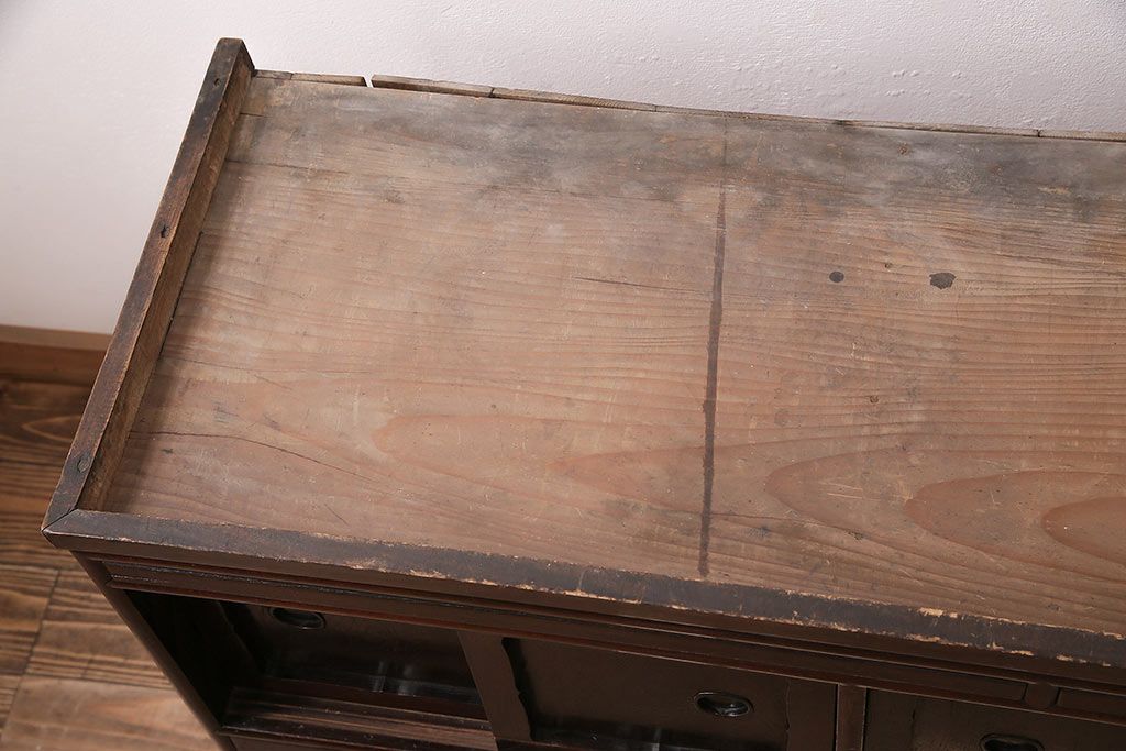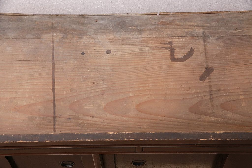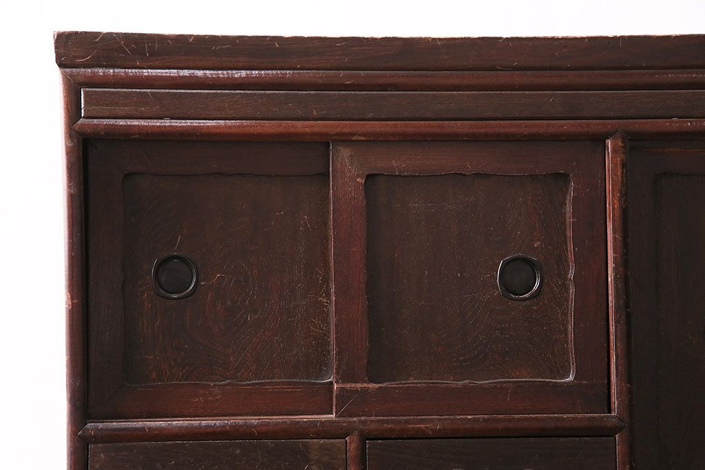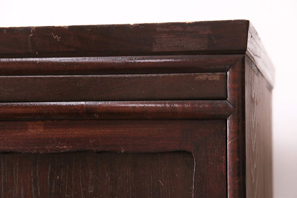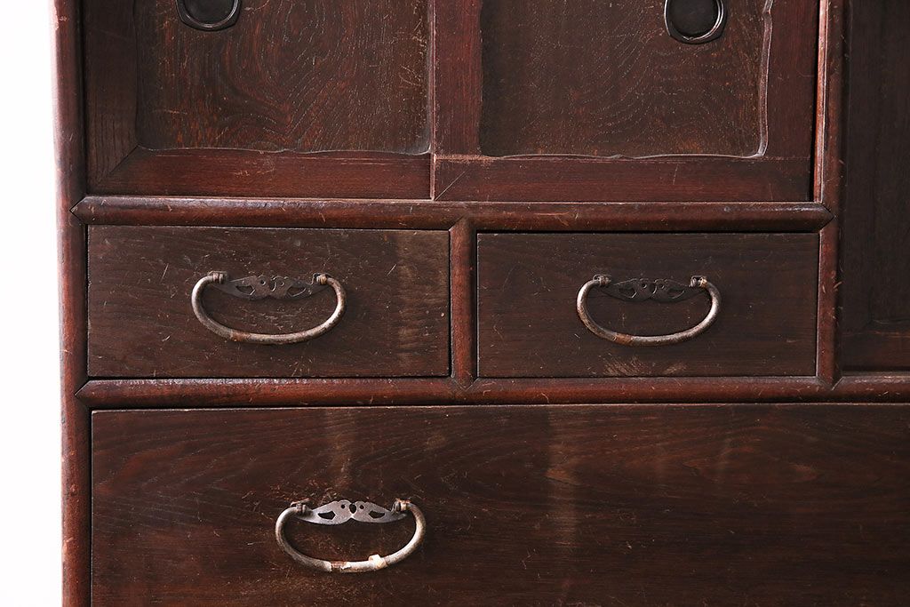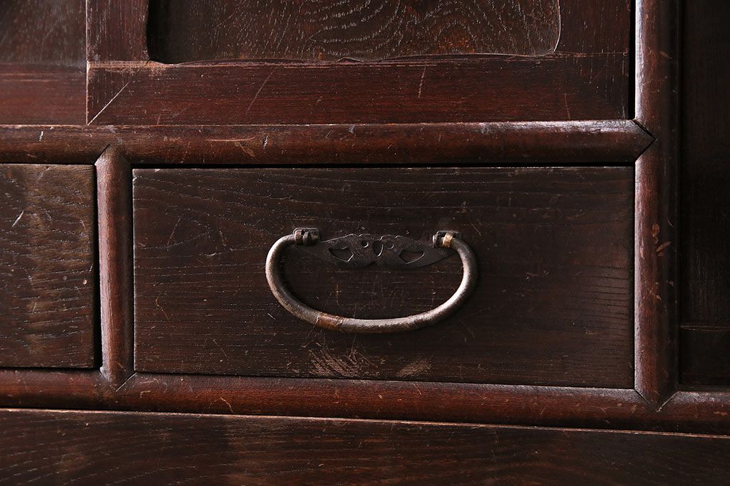 和製アンティーク 昭和レトロ 戸棚と引き出し3杯!ノスタルジックな雰囲気が素敵な箪笥サイドボード(収納棚、リビングボード、キャビネット)(R-047887)