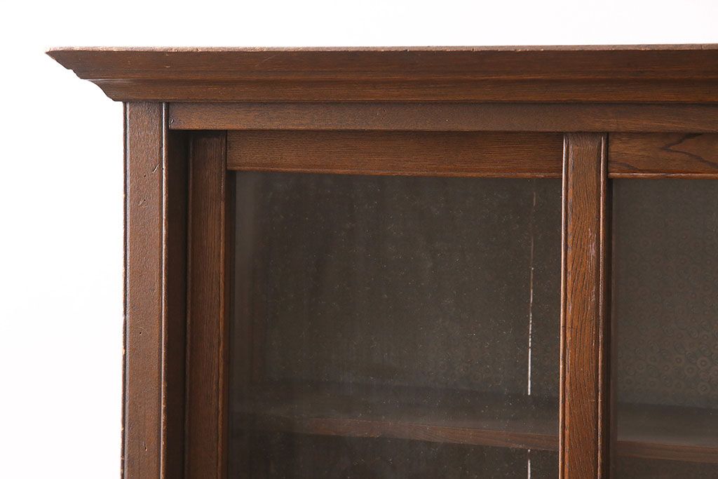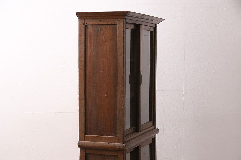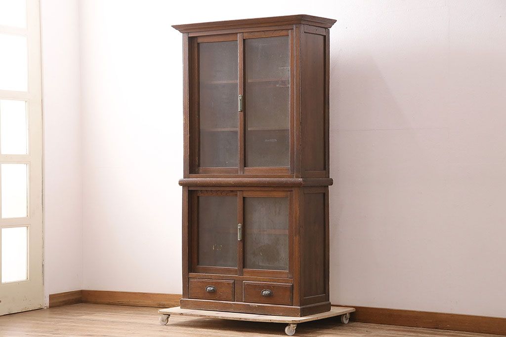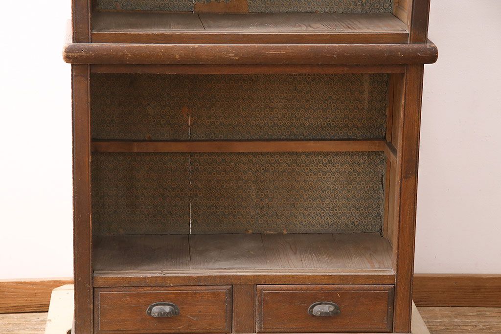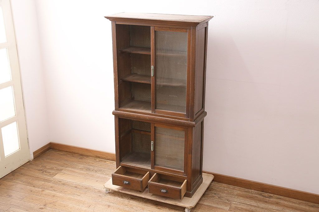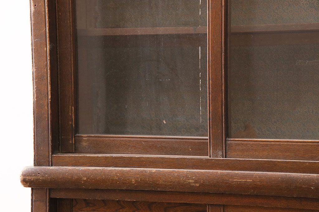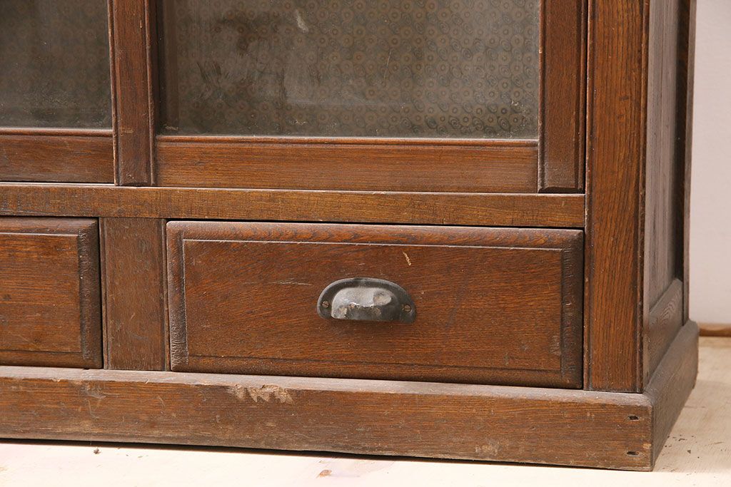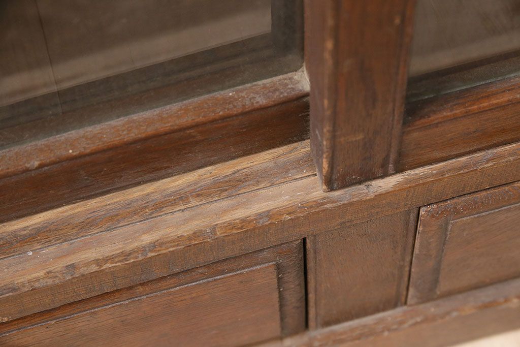 ガラスケース・ショーケース > 【簡易リペア限定品】アンティーク建具 栓材 レトロな引手が懐かしい雰囲気を醸しだす重ね戸棚(キャビネット、ガラスケース、ガラス戸棚、収納棚、食器棚、引き出し)(R-048542)
