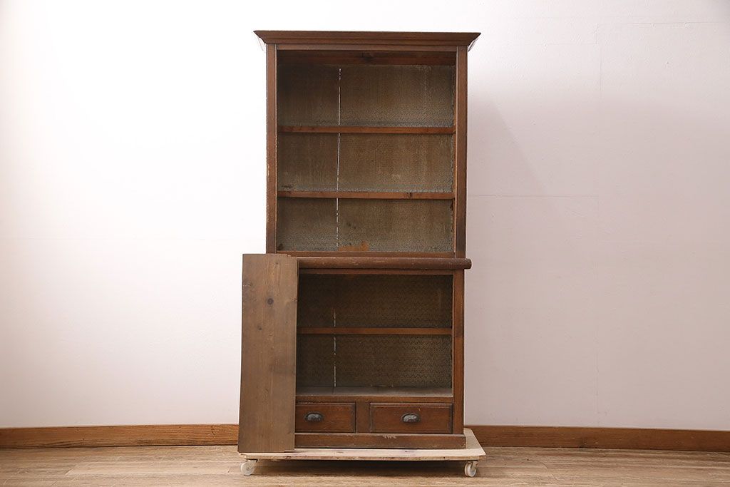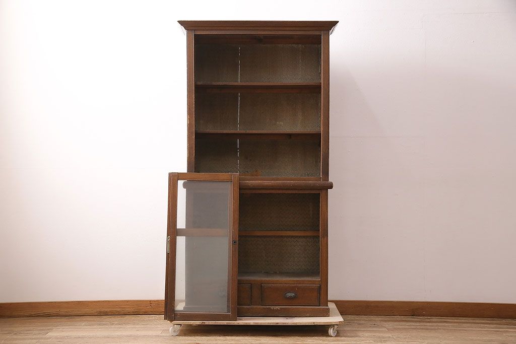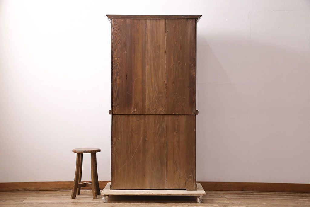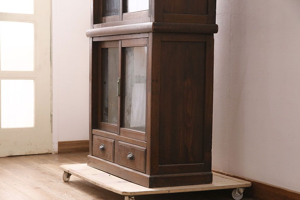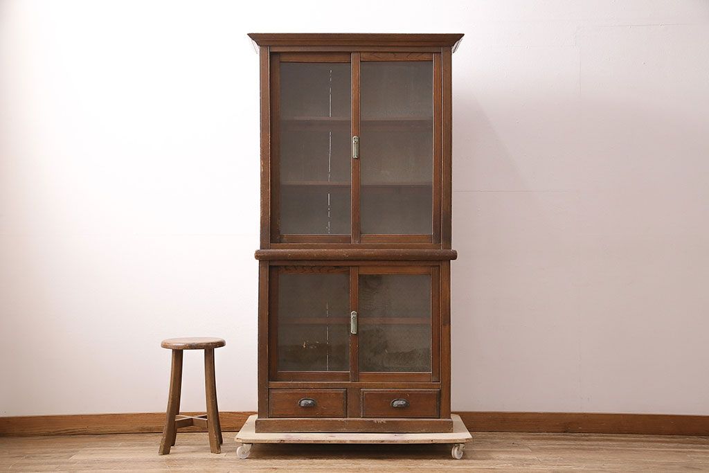 キャビネット・戸棚> 食器棚・カップボード > 【簡易リペア限定品】アンティーク建具 栓材 レトロな引手が懐かしい雰囲気を醸しだす重ね戸棚(キャビネット、ガラスケース、ガラス戸棚、収納棚、食器棚、引き出し)(R-048542)