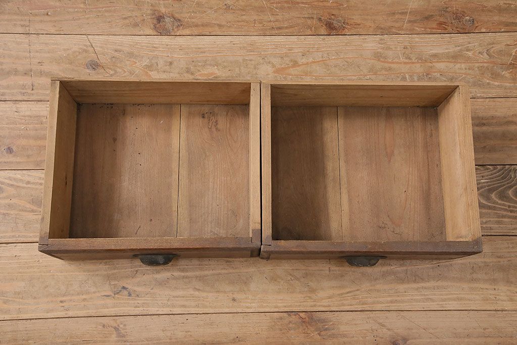 【簡易リペア限定品】アンティーク建具 栓材 レトロな引手が懐かしい雰囲気を醸しだす重ね戸棚(キャビネット、ガラスケース、ガラス戸棚、収納棚、食器棚、引き出し)(R-048542)