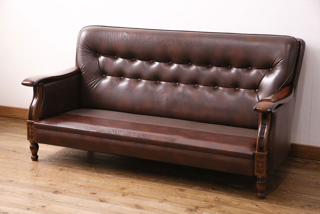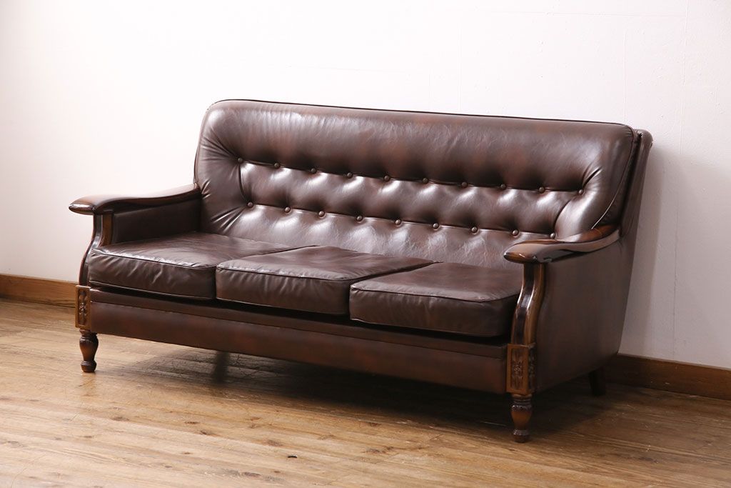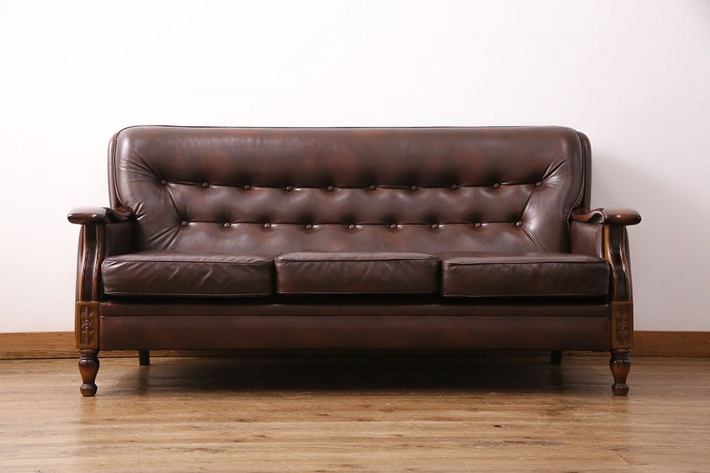 ラフジュ工房> ソファ> 2人掛けソファ > ビンテージ家具 カリモク家具(karimoku) 渋い雰囲気が格好良い!昭和レトロな佇まいが魅力の3人掛けソファ(アームソファ、ヴィンテージ)(R-049570)