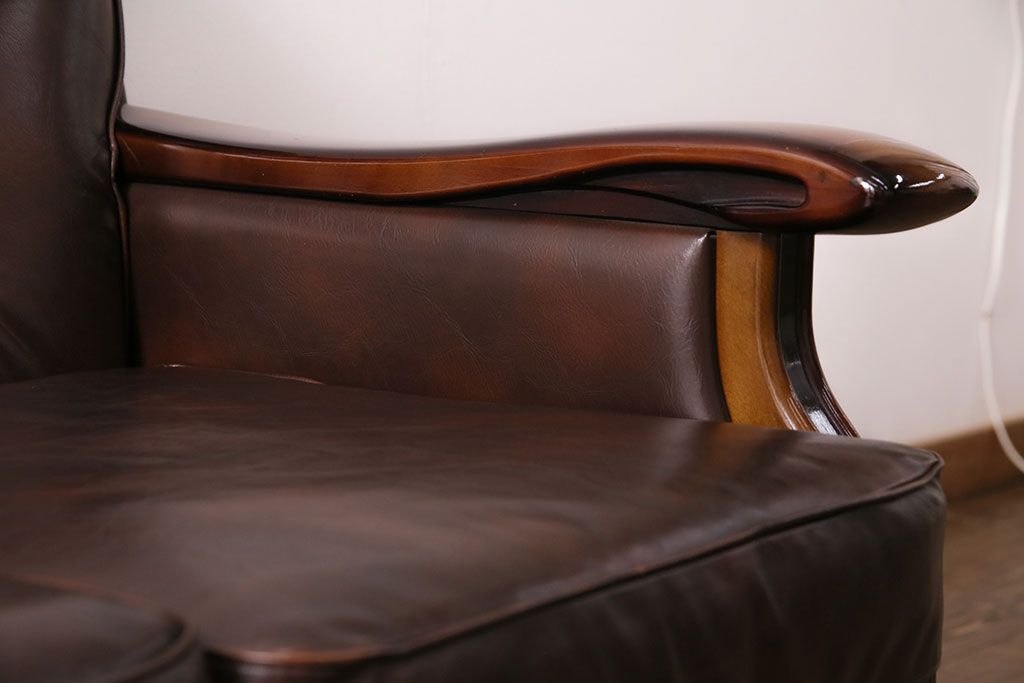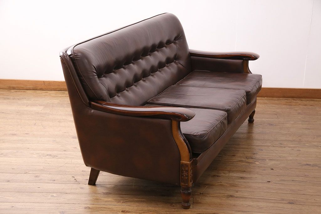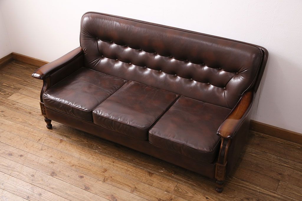 ビンテージ家具 カリモク家具(karimoku) 渋い雰囲気が格好良い!昭和レトロな佇まいが魅力の3人掛けソファ(アームソファ、ヴィンテージ)(R-049570)