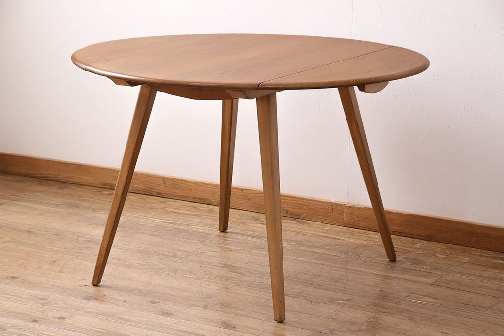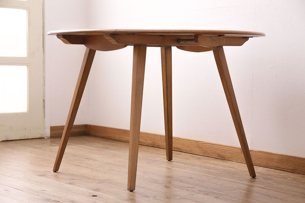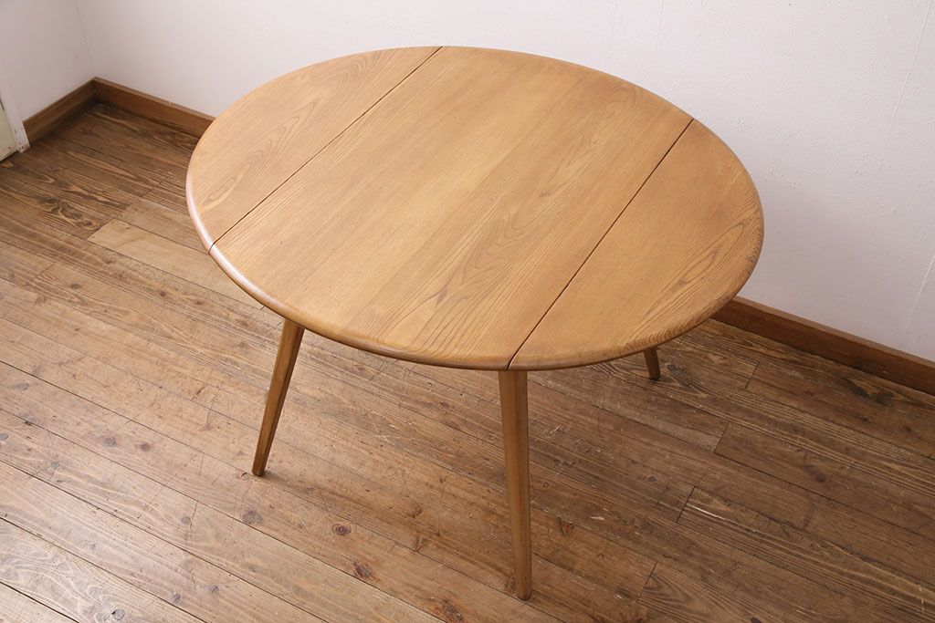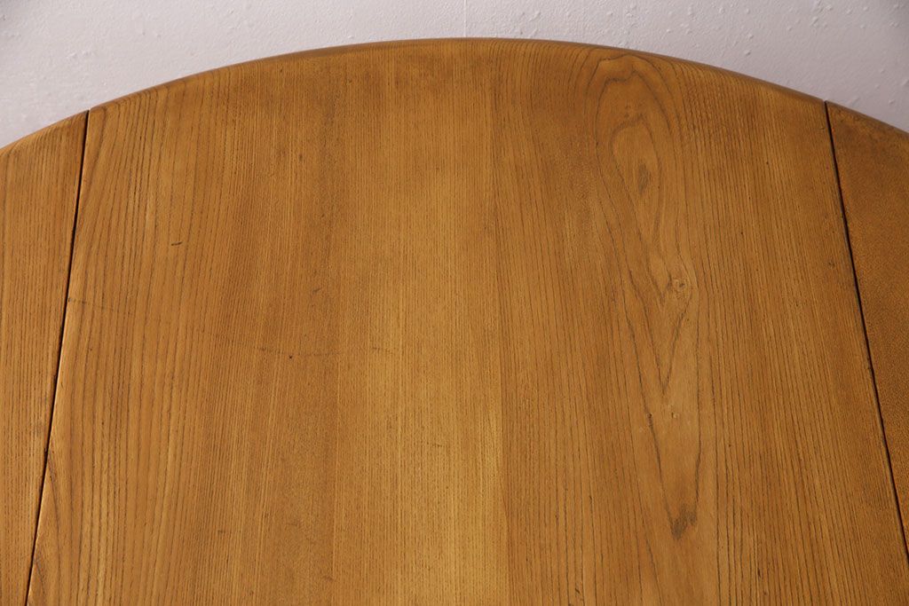 ヴィンテージ家具 イギリス ERCOL(アーコール) エルム材 ウィンザードロップリーフテーブル(バタフライテーブル、ラウンドテーブル、ビンテージ)(R-049596)