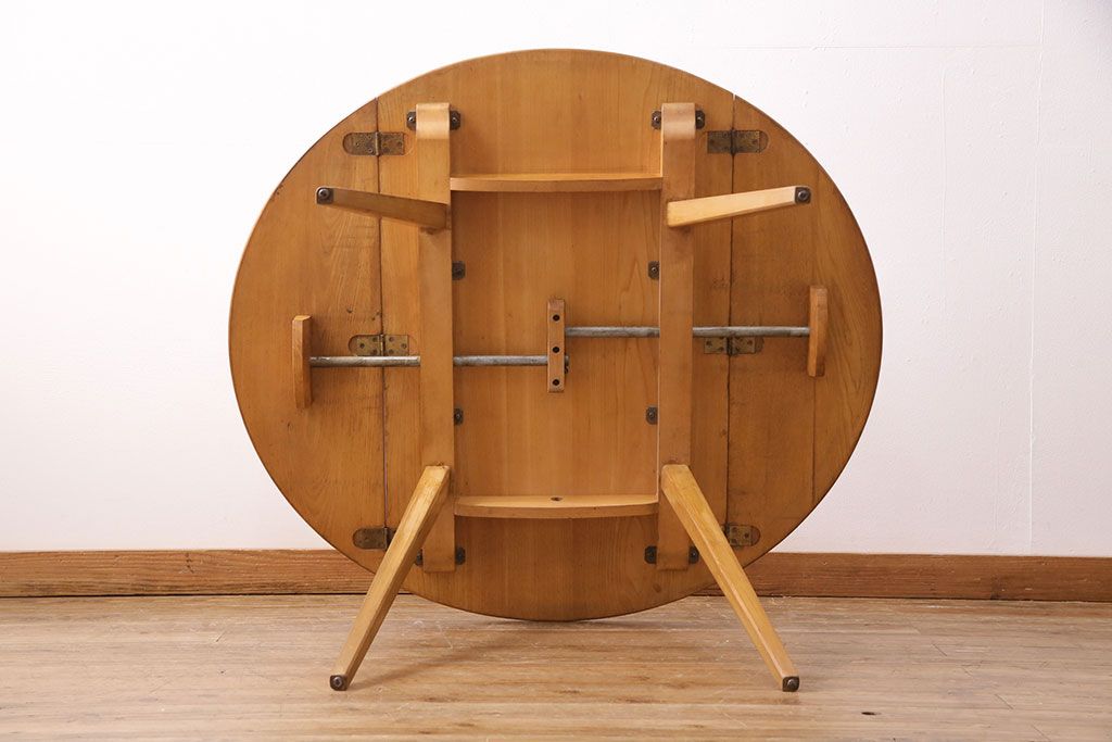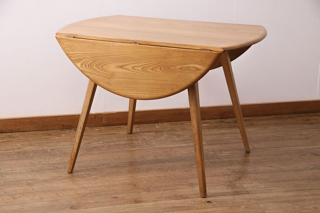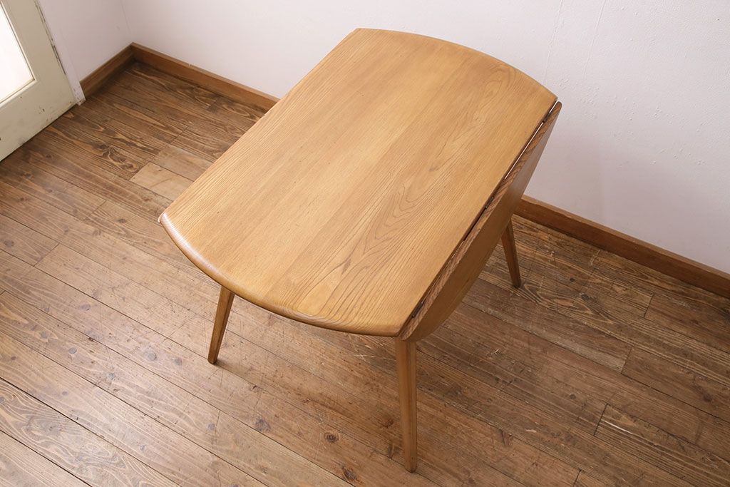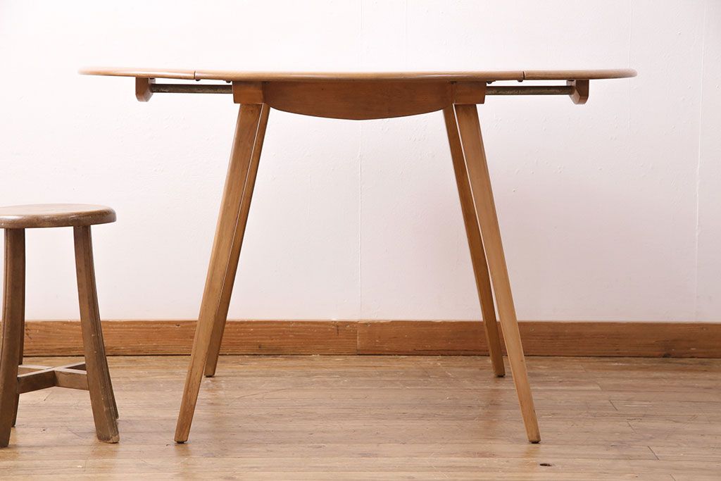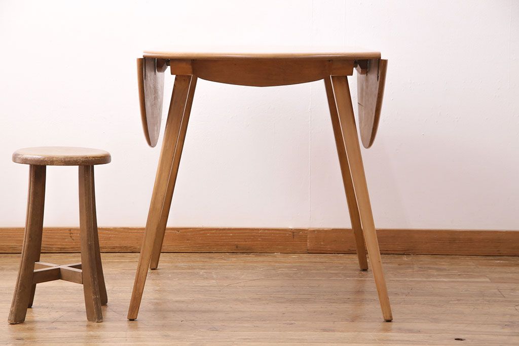 ヴィンテージ家具 イギリス ERCOL(アーコール) エルム材 ウィンザードロップリーフテーブル(バタフライテーブル、ラウンドテーブル、ビンテージ)(R-049596)