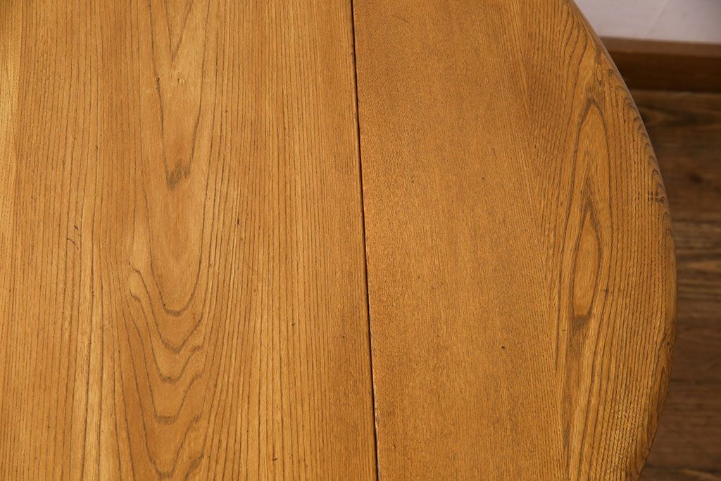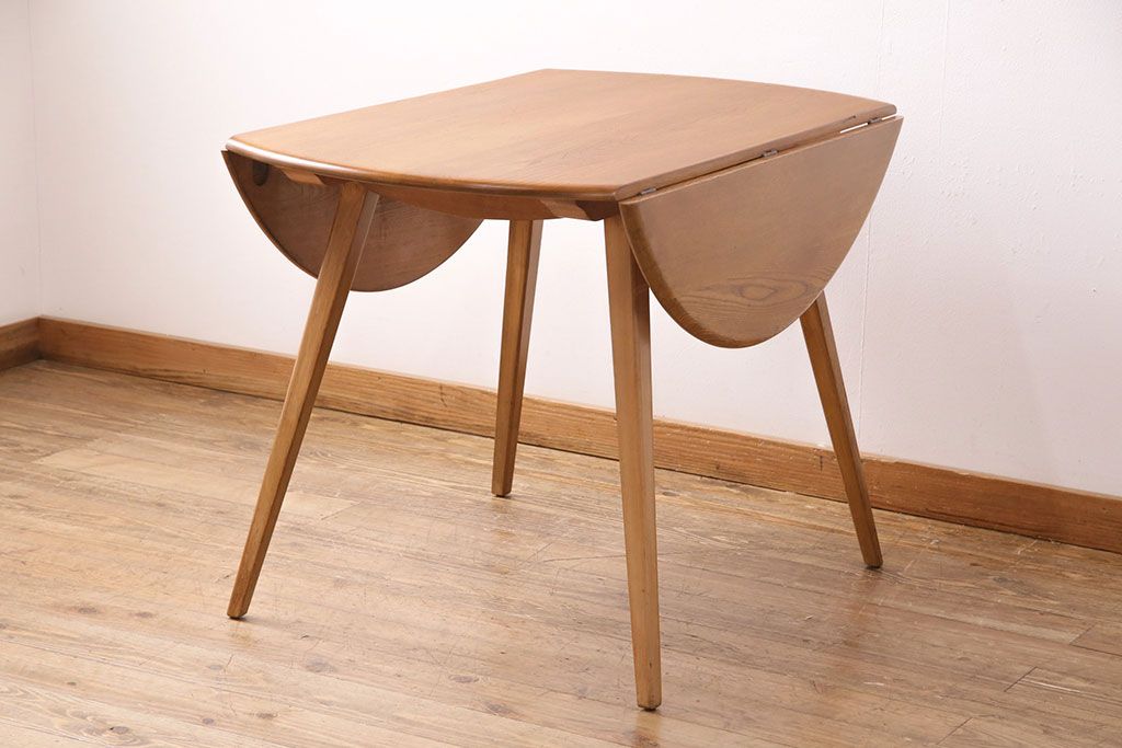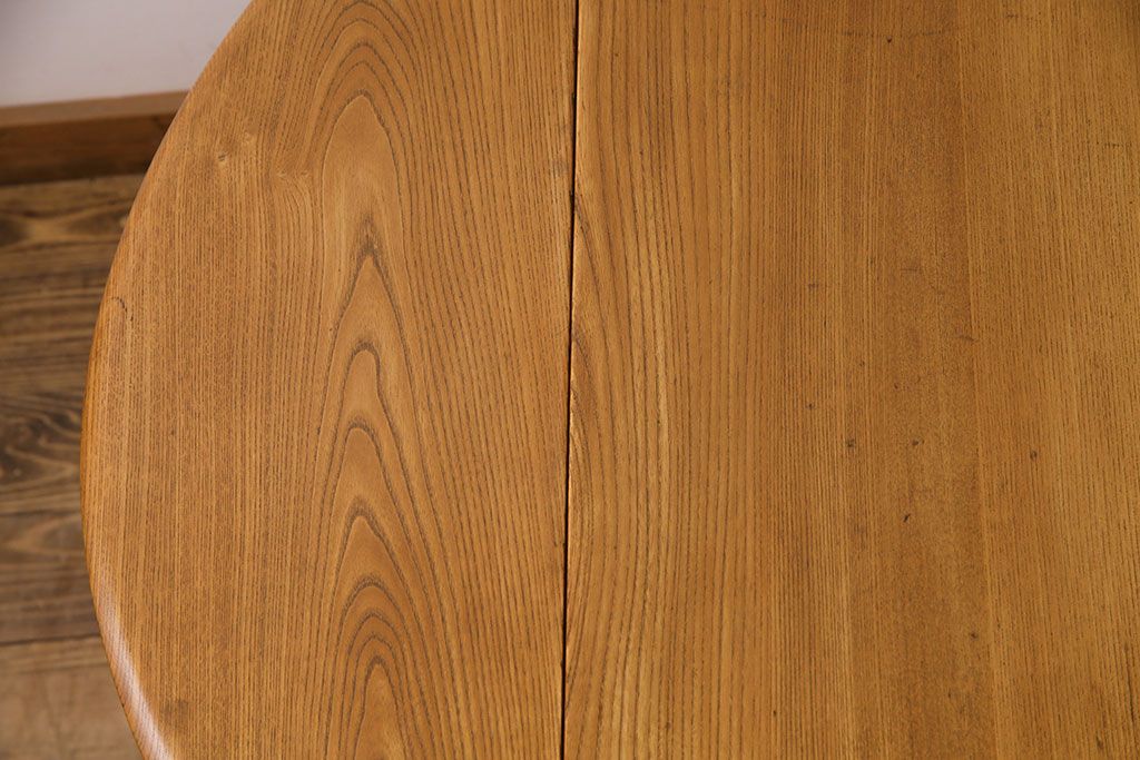 ラフジュ工房> テーブル> 4人用ダイニングテーブル > ヴィンテージ家具 イギリス ERCOL(アーコール) エルム材 ウィンザードロップリーフテーブル(バタフライテーブル、ラウンドテーブル、ビンテージ)(R-049596)
