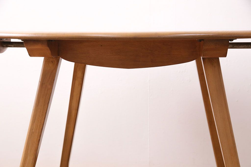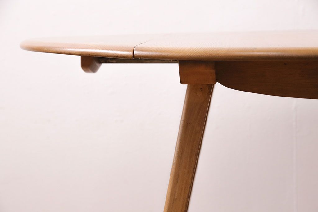ラフジュ工房> テーブル> バタフライテーブル > ヴィンテージ家具 イギリス ERCOL(アーコール) エルム材 ウィンザードロップリーフテーブル(バタフライテーブル、ラウンドテーブル、ビンテージ)(R-049596)