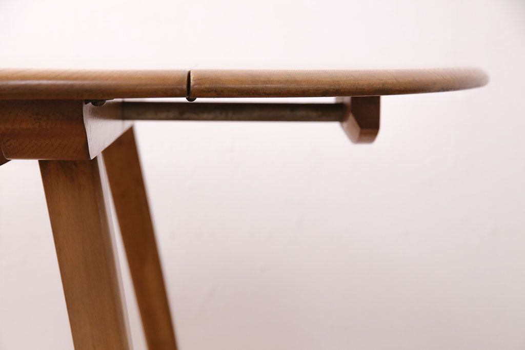 ラフジュ工房> テーブル> 丸テーブル > ヴィンテージ家具 イギリス ERCOL(アーコール) エルム材 ウィンザードロップリーフテーブル(バタフライテーブル、ラウンドテーブル、ビンテージ)(R-049596)