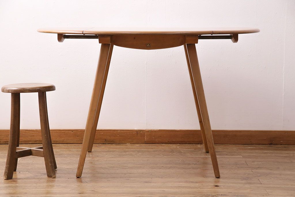 ラフジュ工房> テーブル> エクステンションテーブル > ヴィンテージ家具 イギリス ERCOL(アーコール) エルム材 ウィンザードロップリーフテーブル(バタフライテーブル、ラウンドテーブル、ビンテージ)(R-049596)