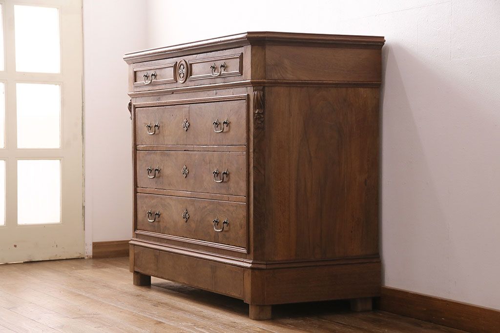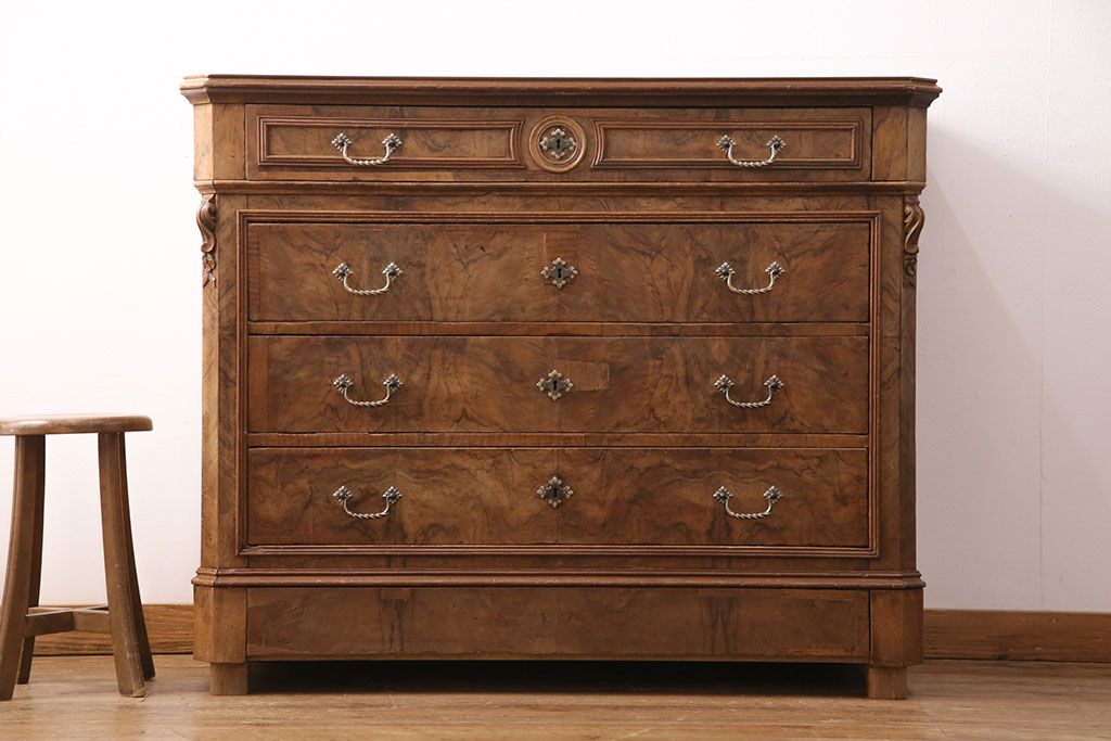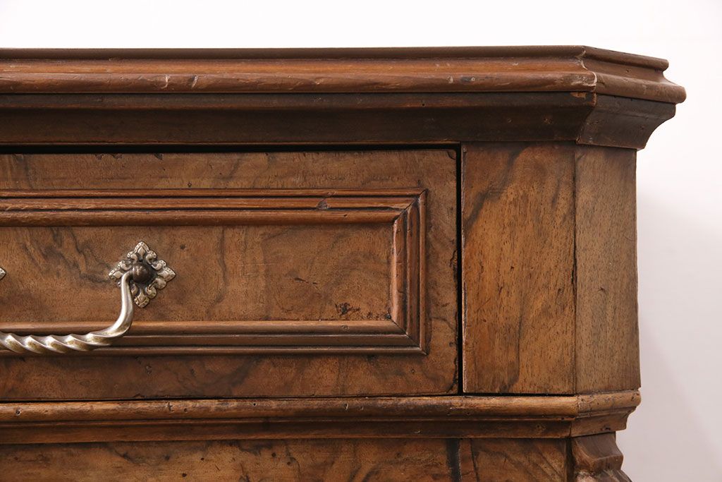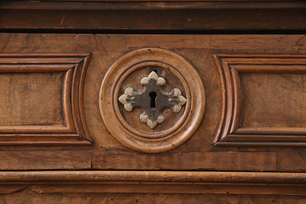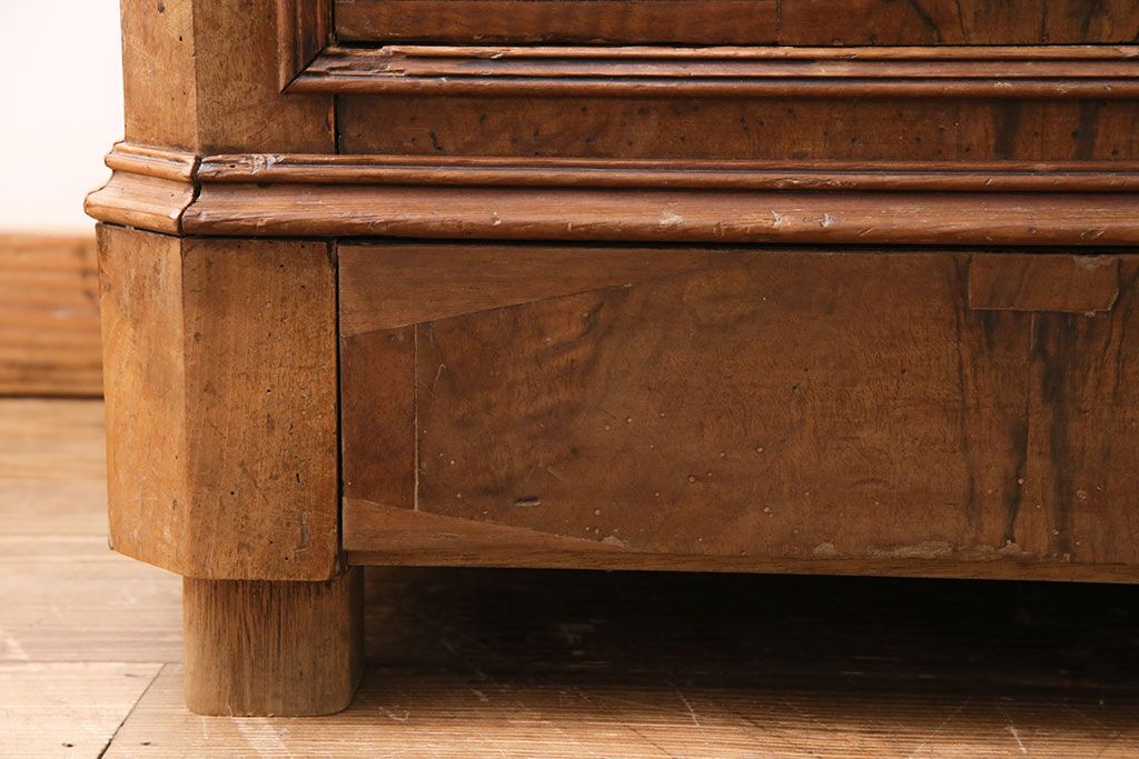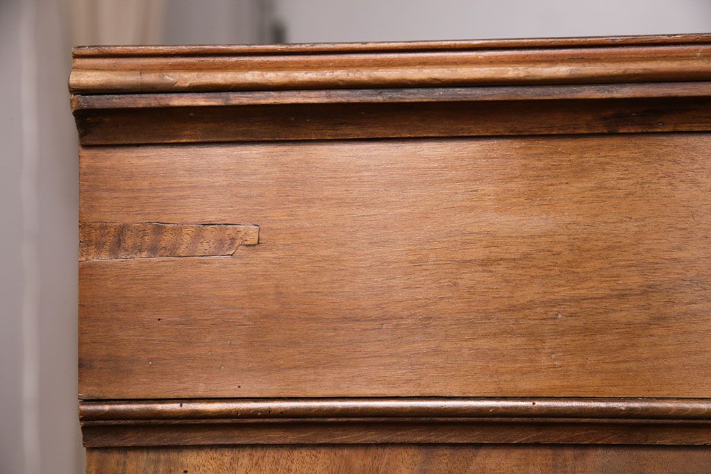 チェスト・引き出し > フランスアンティークのチェストの見た目を変えずに綺麗にリペア!傷んだ木部の交換。可動部の調整。1トーン落ち着いた色味に着色し仕上げ(引き出し、サイドボード)