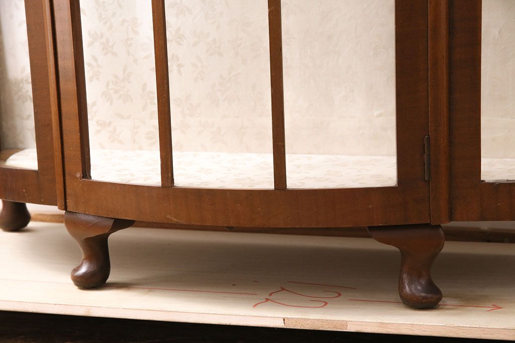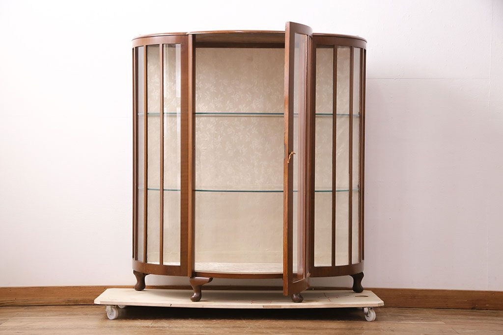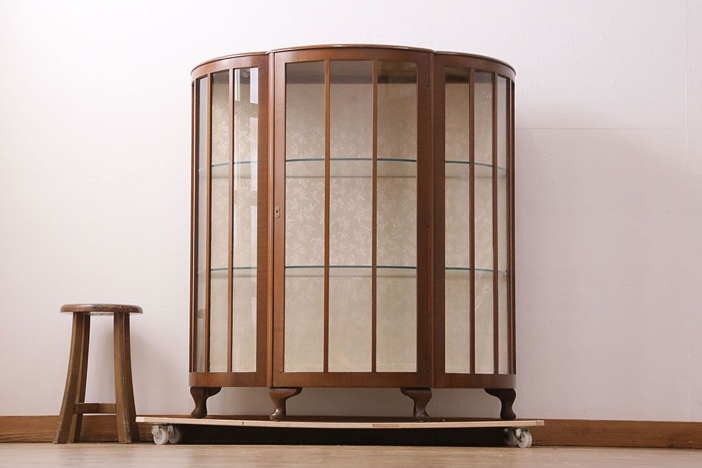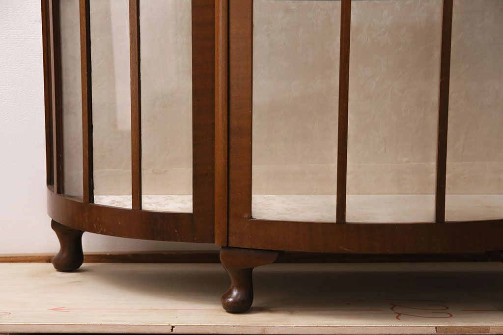 ラフジュ工房> ガラスケース・ショーケース > イギリスアンティーク 美品 半円形のフォルムがお洒落!エレガントなマホガニー材製のガラスケース(キャビネット、飾り棚、ハーフムーン)(R-049576)