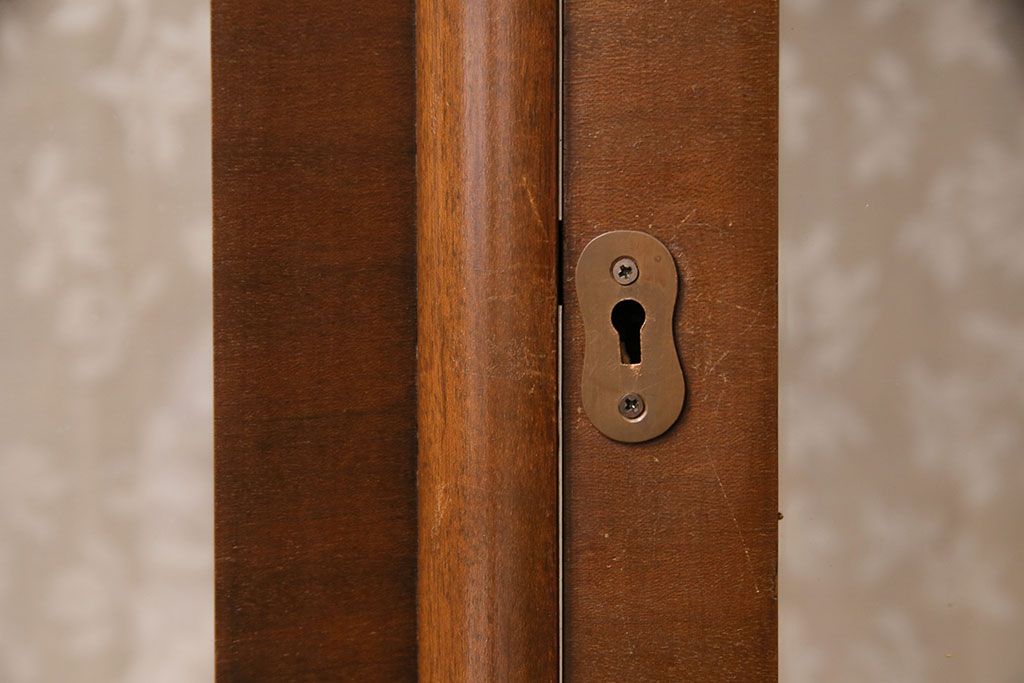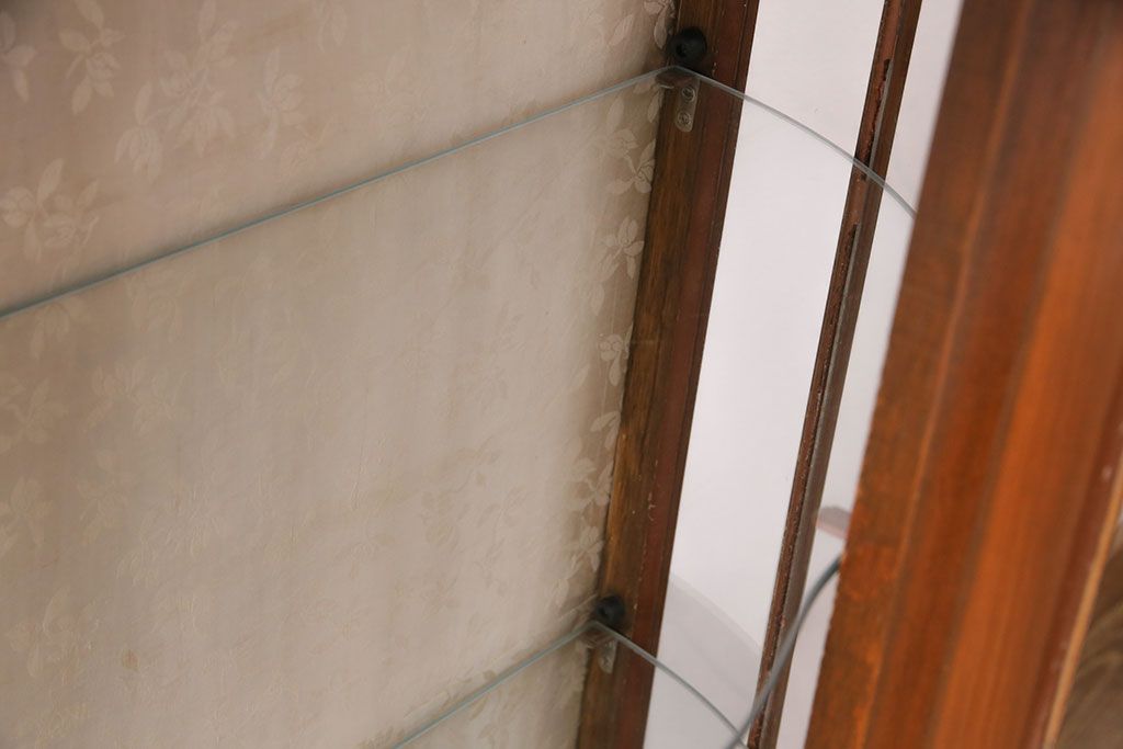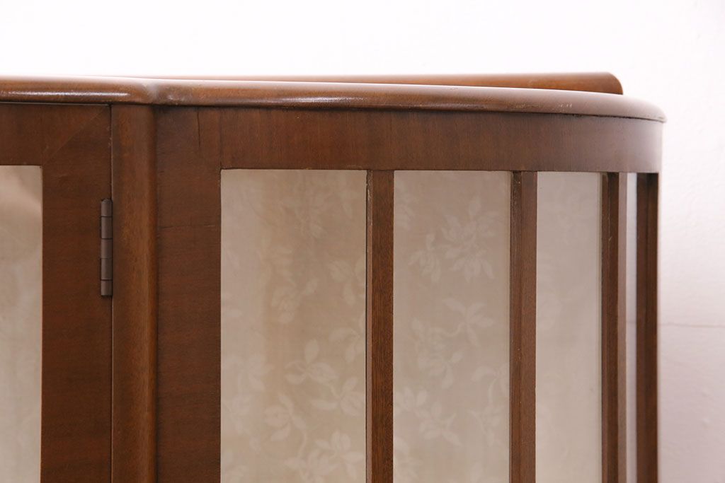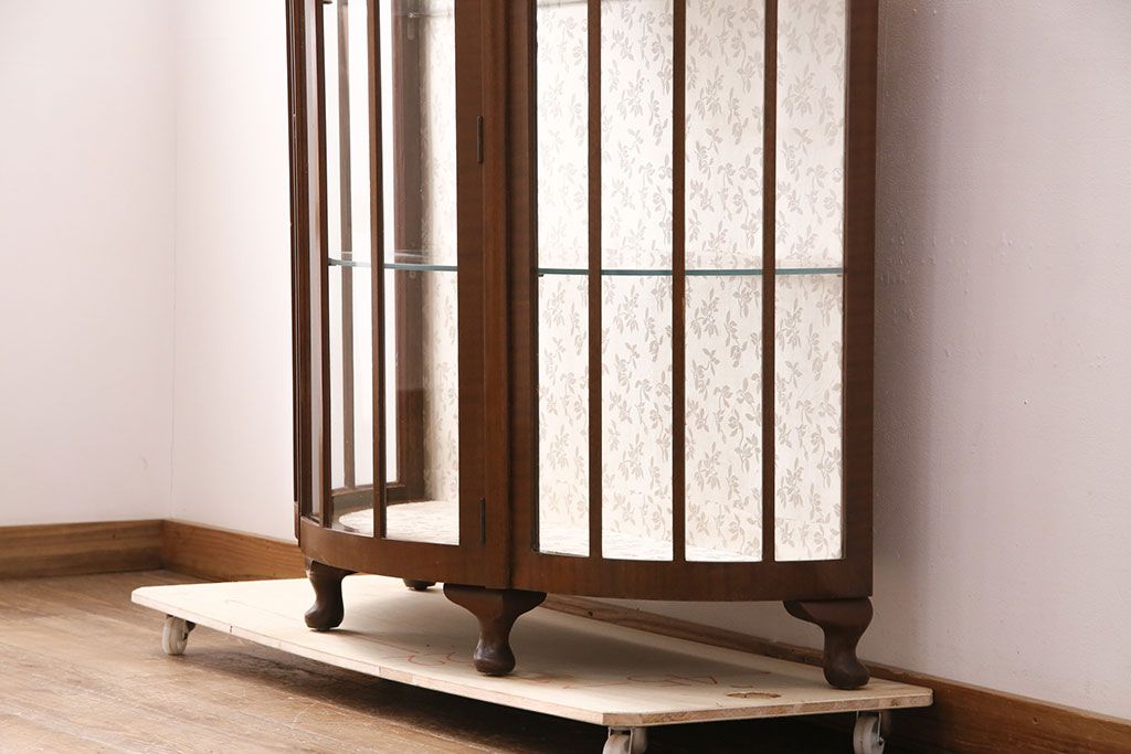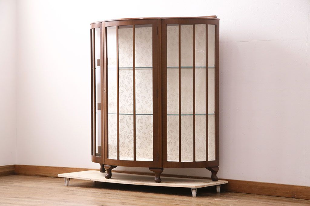 ラフジュ工房> ガラスケース・ショーケース > イギリスアンティーク 美品 半円形のフォルムがお洒落!エレガントなマホガニー材製のガラスケース(キャビネット、飾り棚、ハーフムーン)(R-049576)