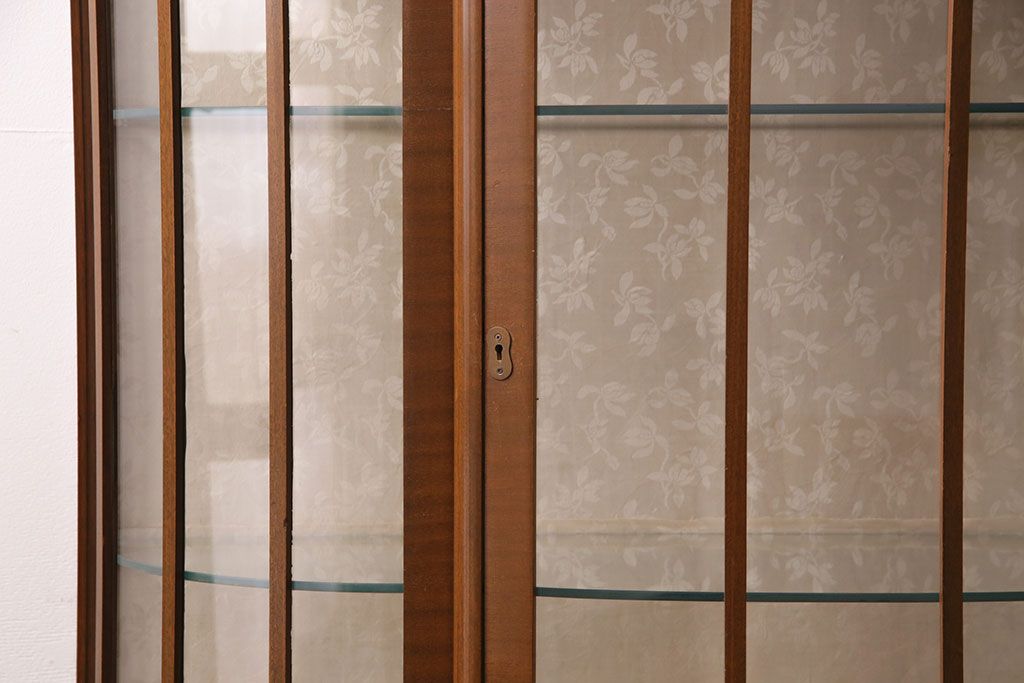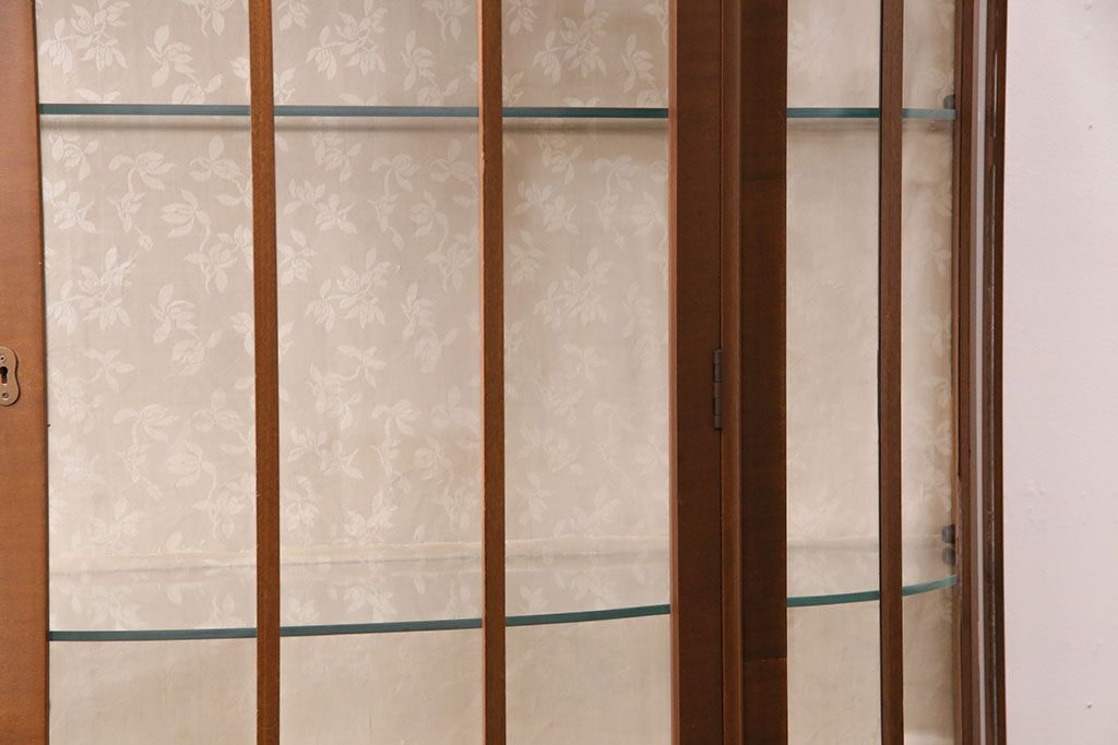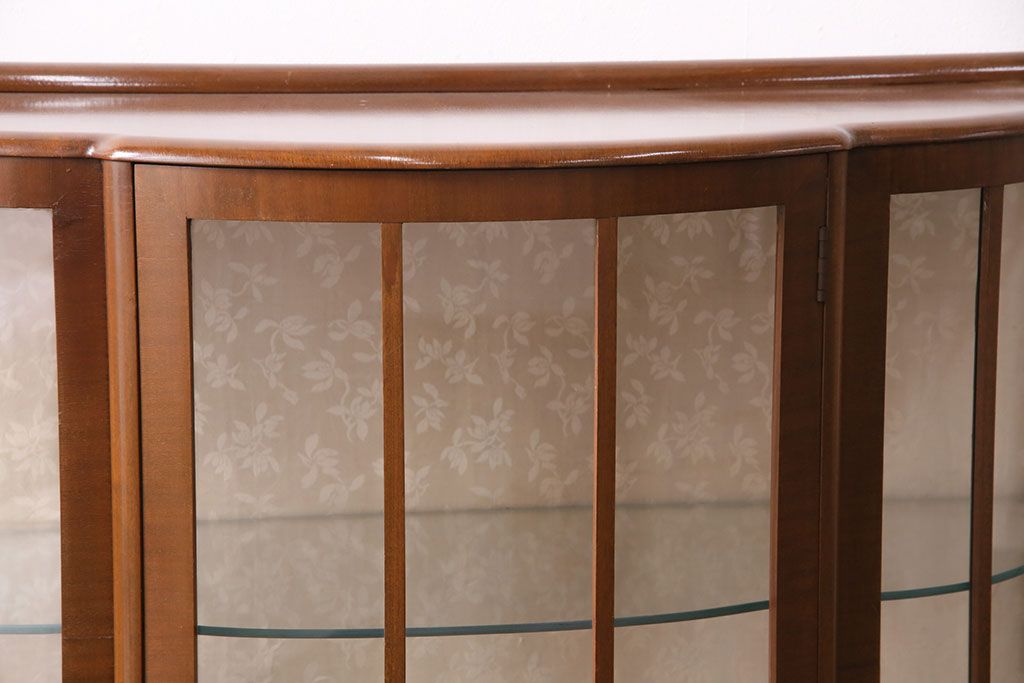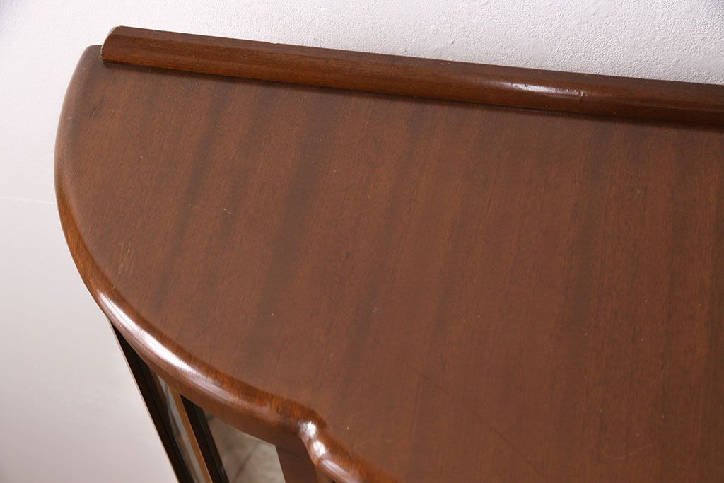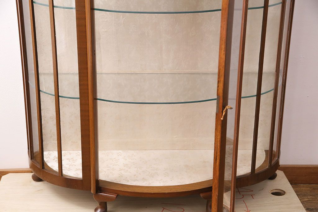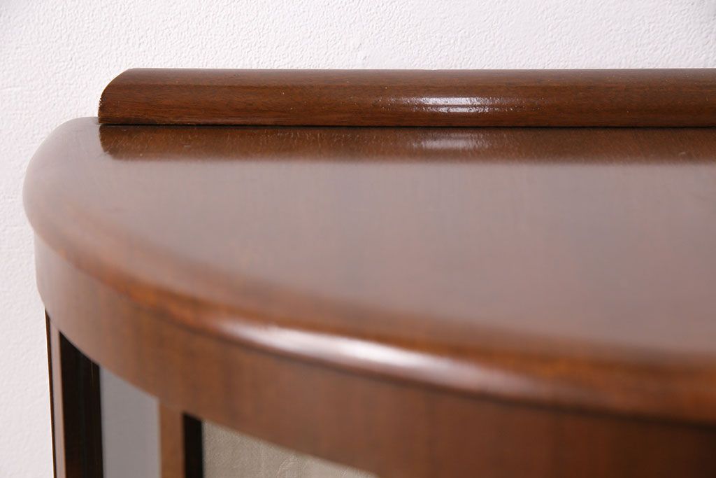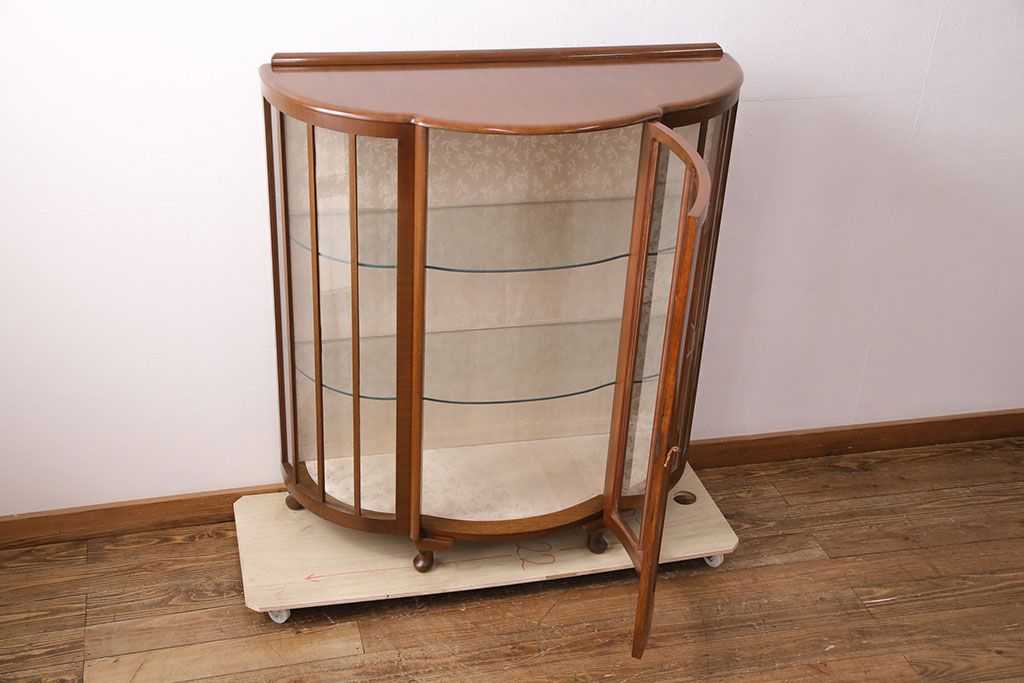 イギリスアンティーク 美品 半円形のフォルムがお洒落!エレガントなマホガニー材製のガラスケース(キャビネット、飾り棚、ハーフムーン)(R-049576)