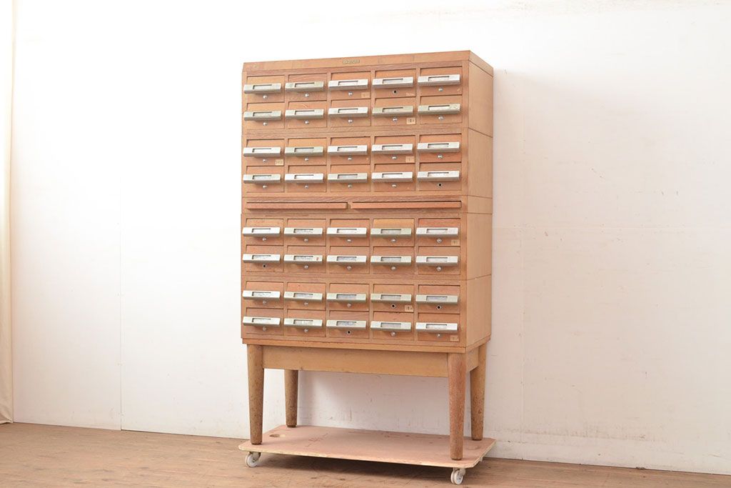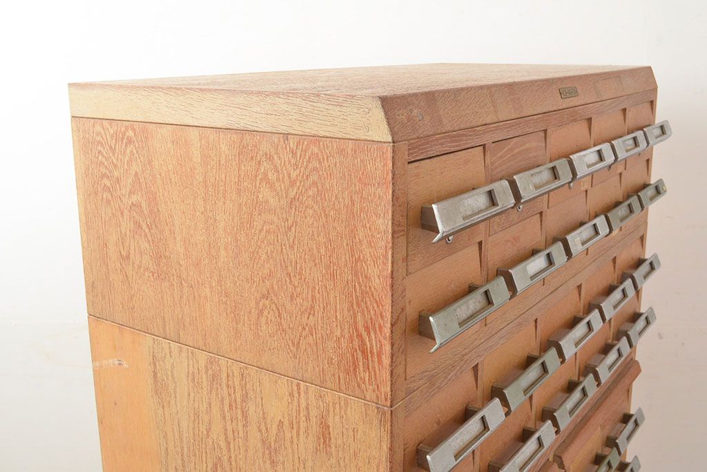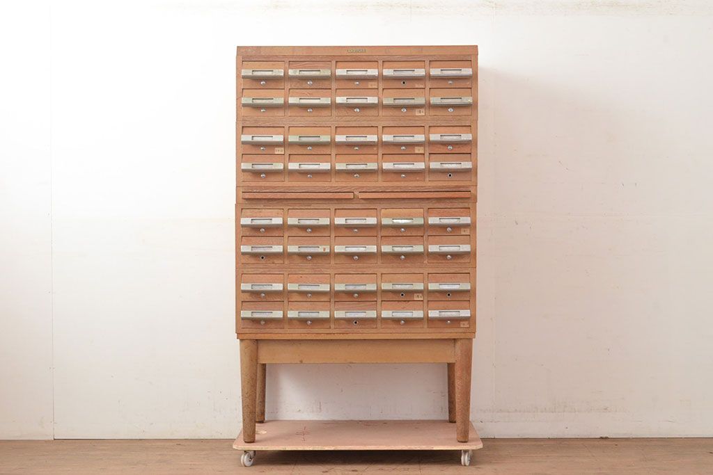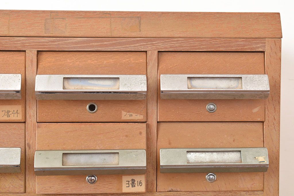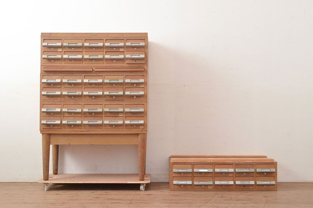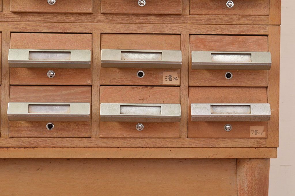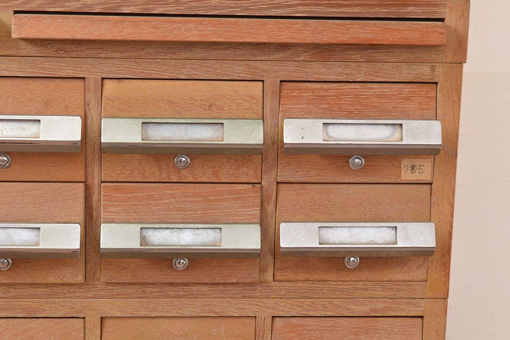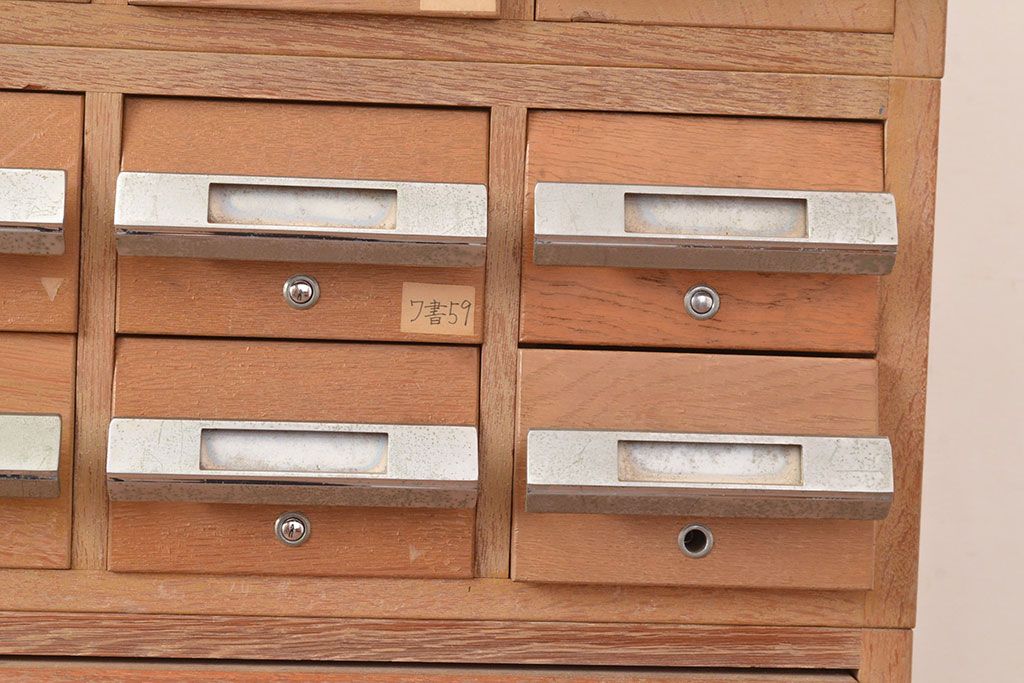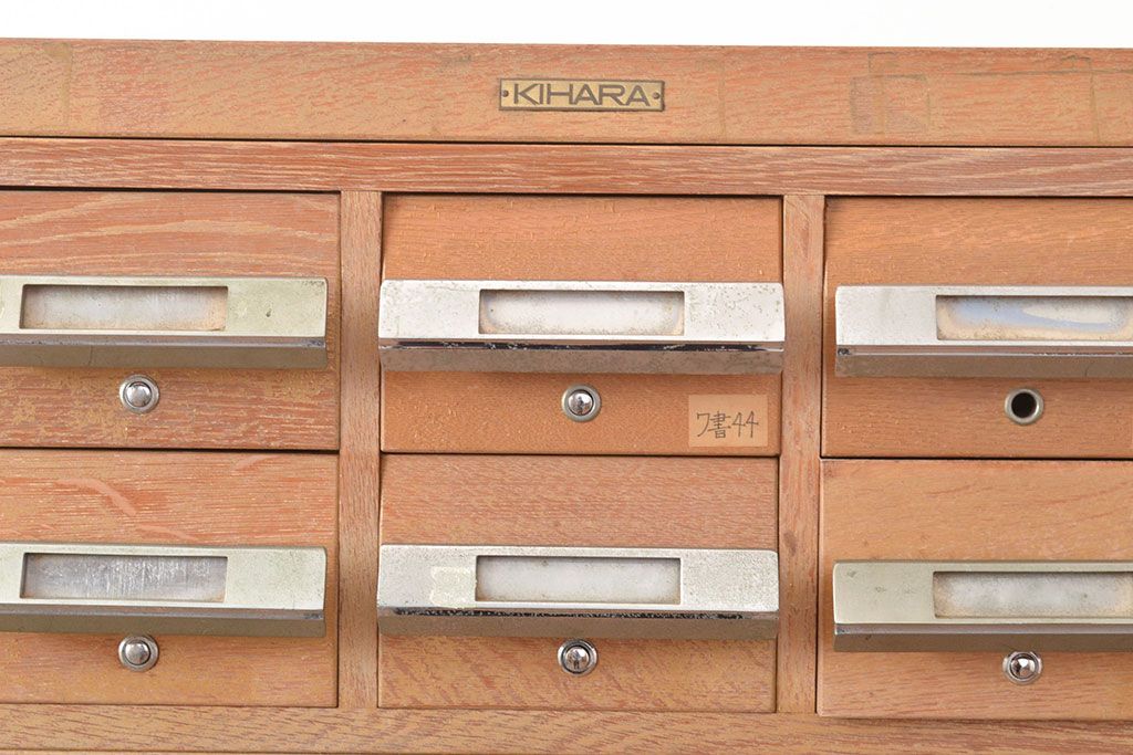 店舗什器 > 【簡易リペア限定品】レトロ家具 昭和レトロ KIHARA 小物収納にうってつけのナラ材製ネームプレート付きカードケース(引き出し、チェスト、図書館、図書室、店舗什器)(R-049472)