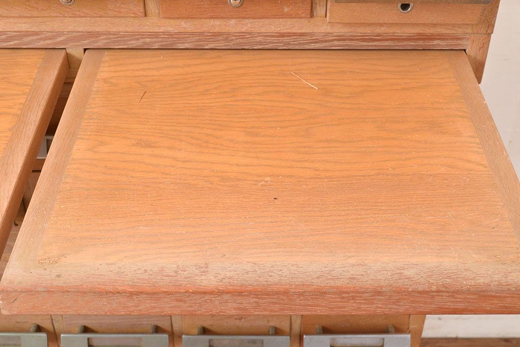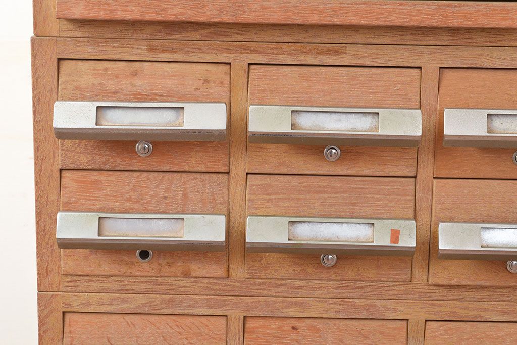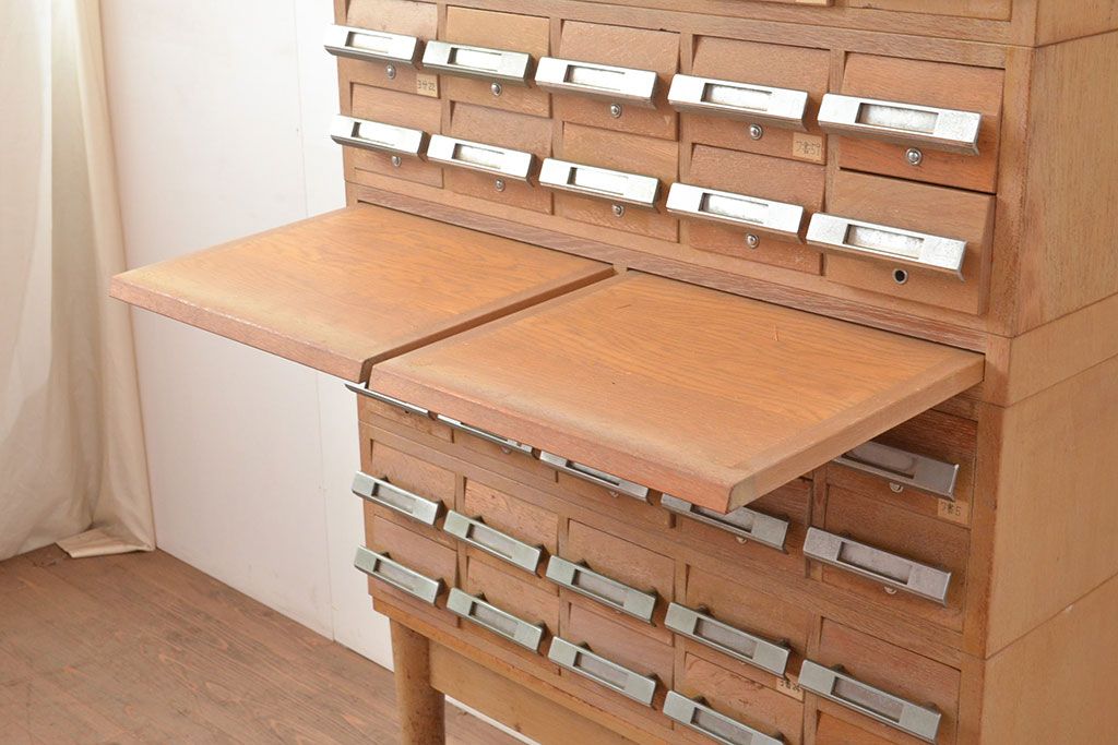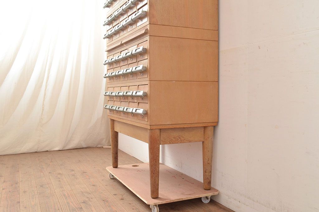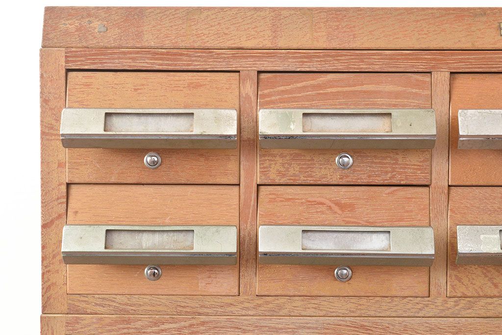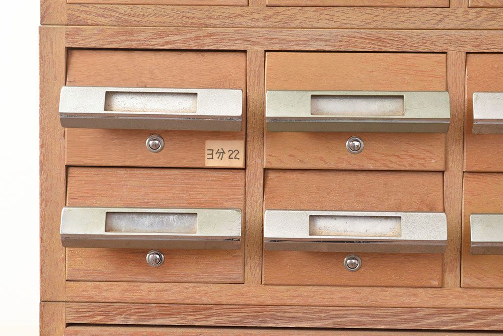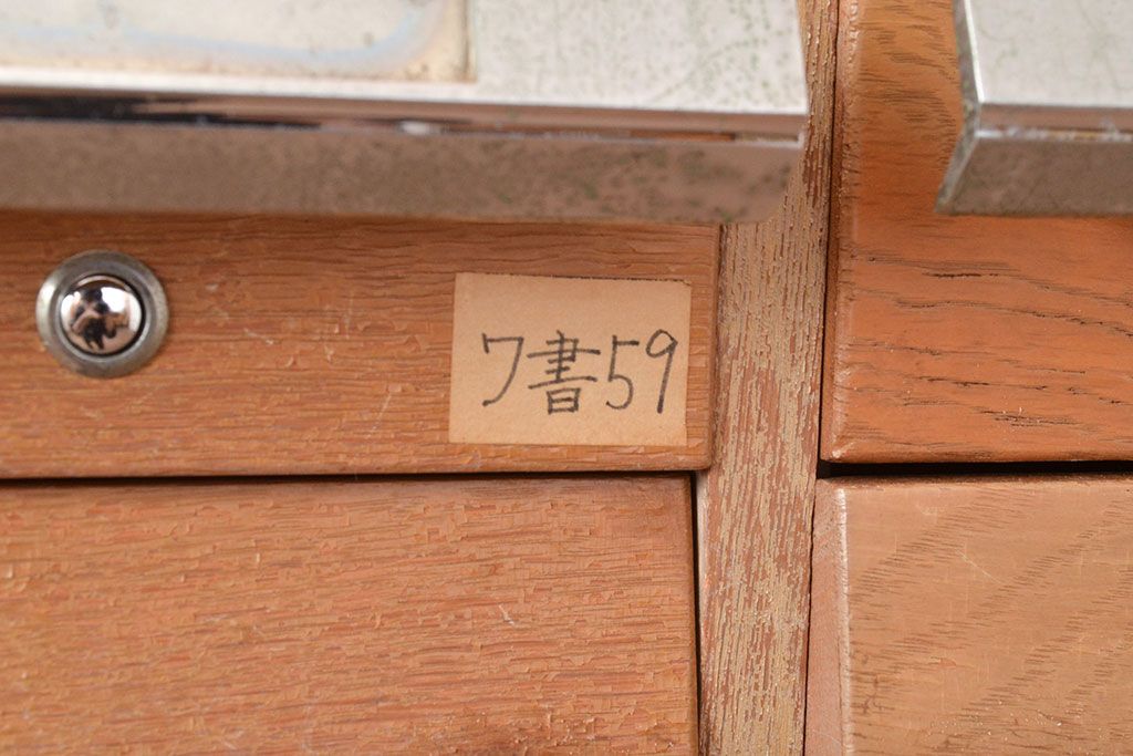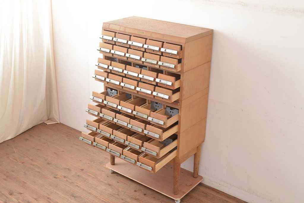 店舗什器 > 【簡易リペア限定品】レトロ家具 昭和レトロ KIHARA 小物収納にうってつけのナラ材製ネームプレート付きカードケース(引き出し、チェスト、図書館、図書室、店舗什器)(R-049472)
