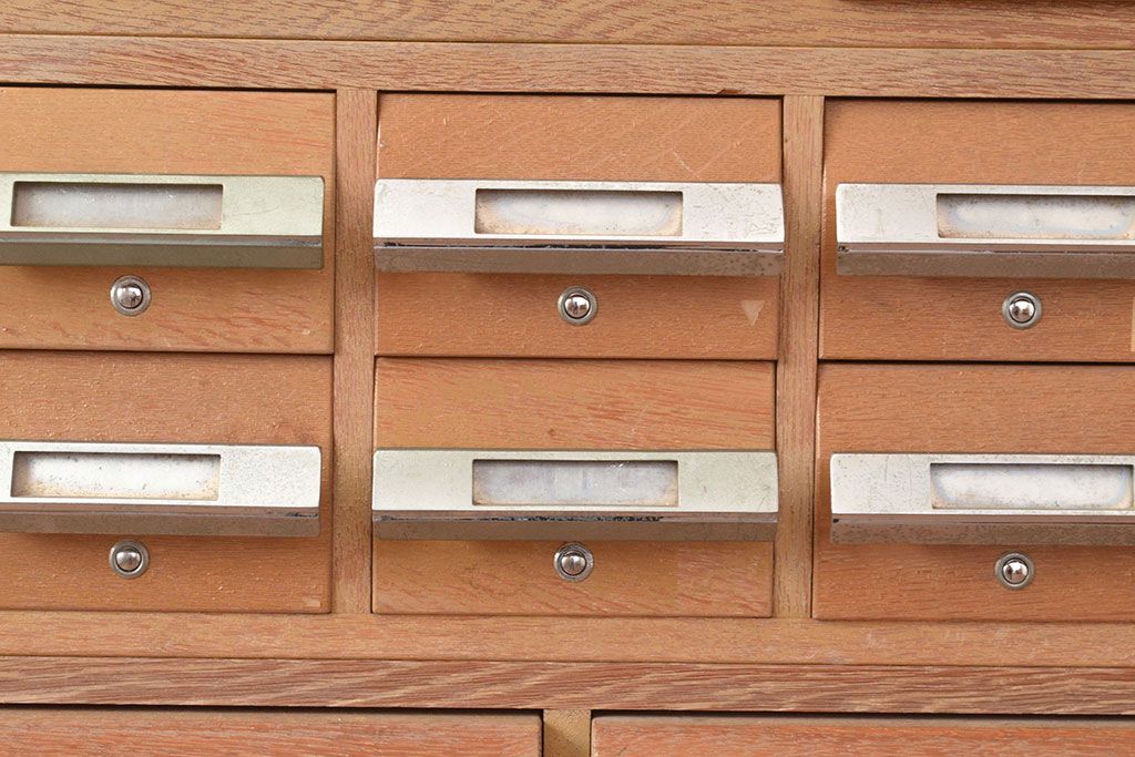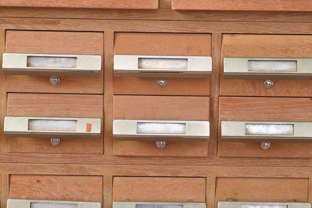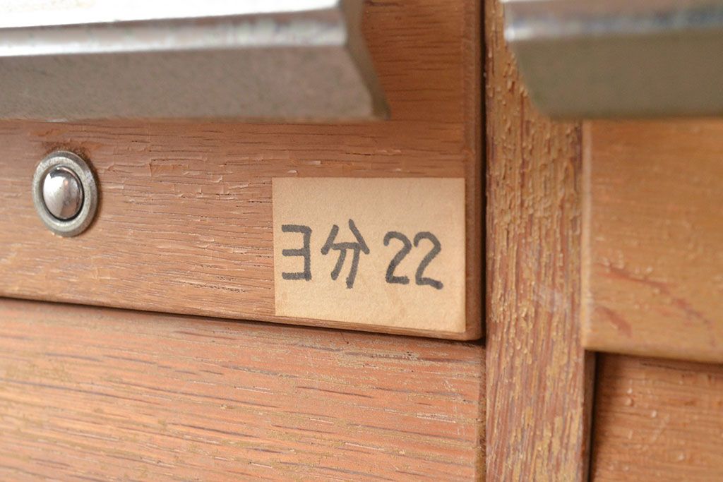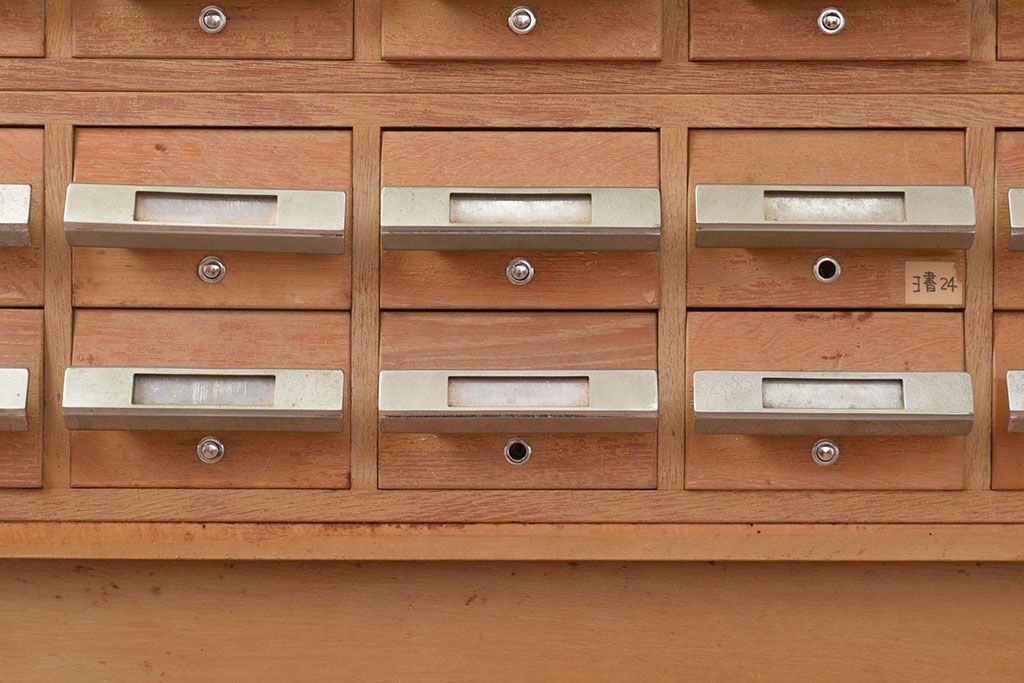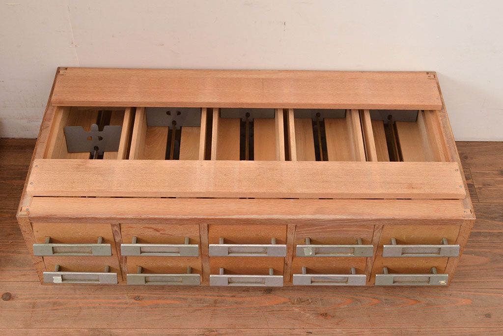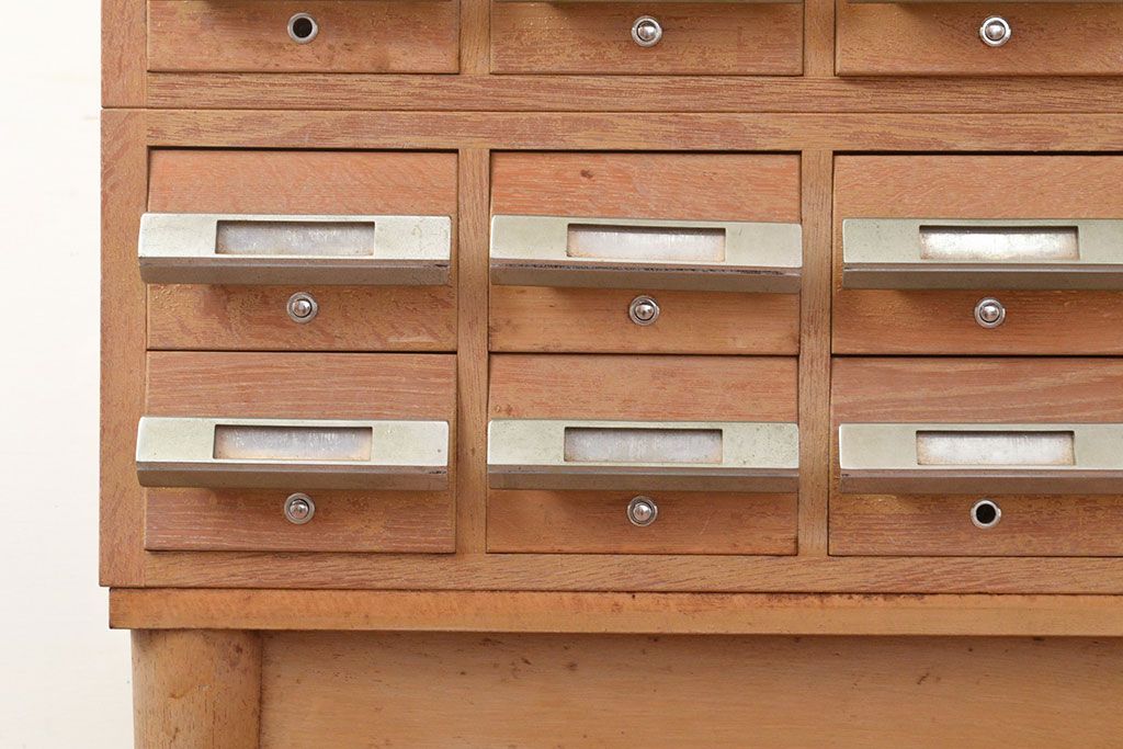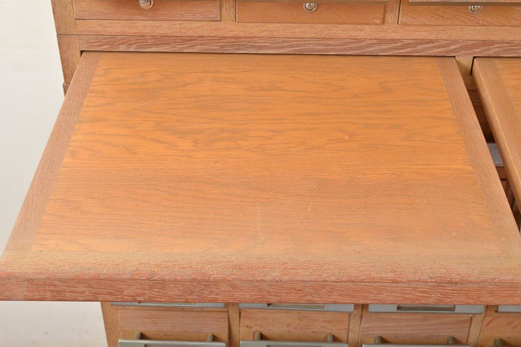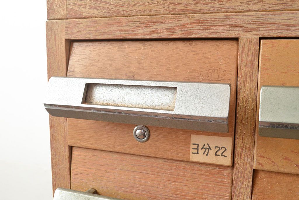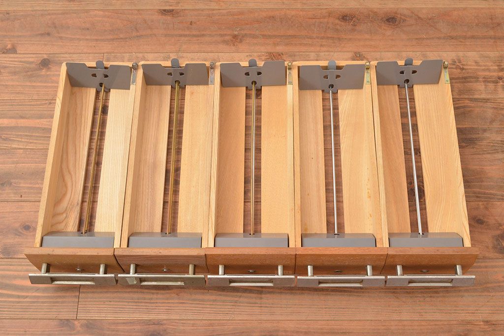 店舗什器 > 【簡易リペア限定品】レトロ家具 昭和レトロ KIHARA 小物収納にうってつけのナラ材製ネームプレート付きカードケース(引き出し、チェスト、図書館、図書室、店舗什器)(R-049472)