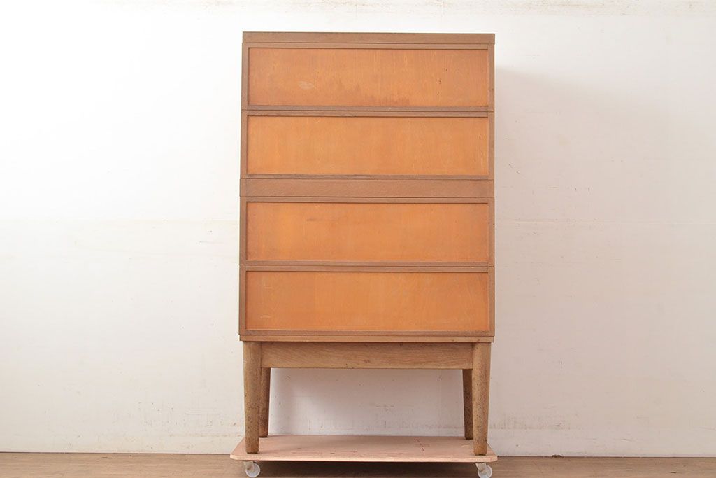 【簡易リペア限定品】レトロ家具 昭和レトロ KIHARA 小物収納にうってつけのナラ材製ネームプレート付きカードケース(引き出し、チェスト、図書館、図書室、店舗什器)(R-049472)