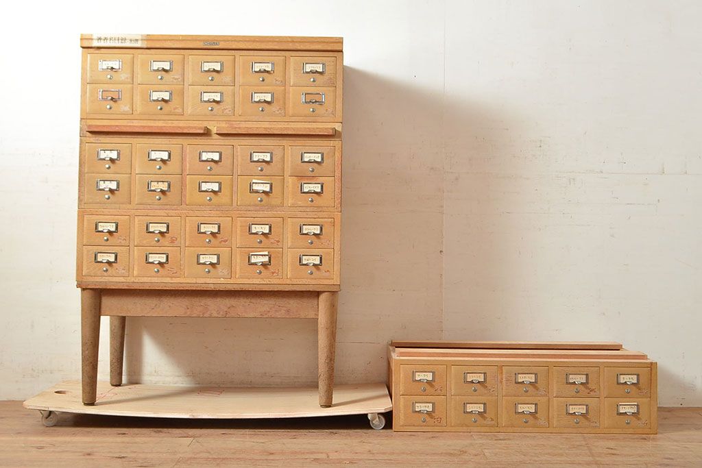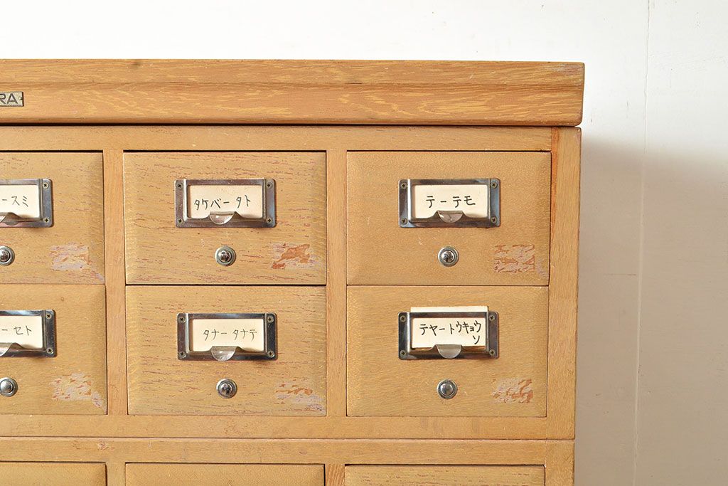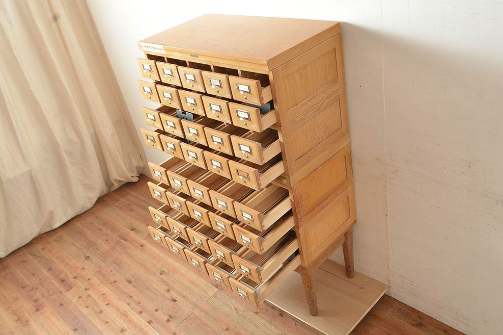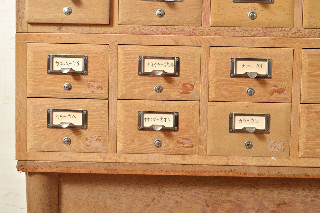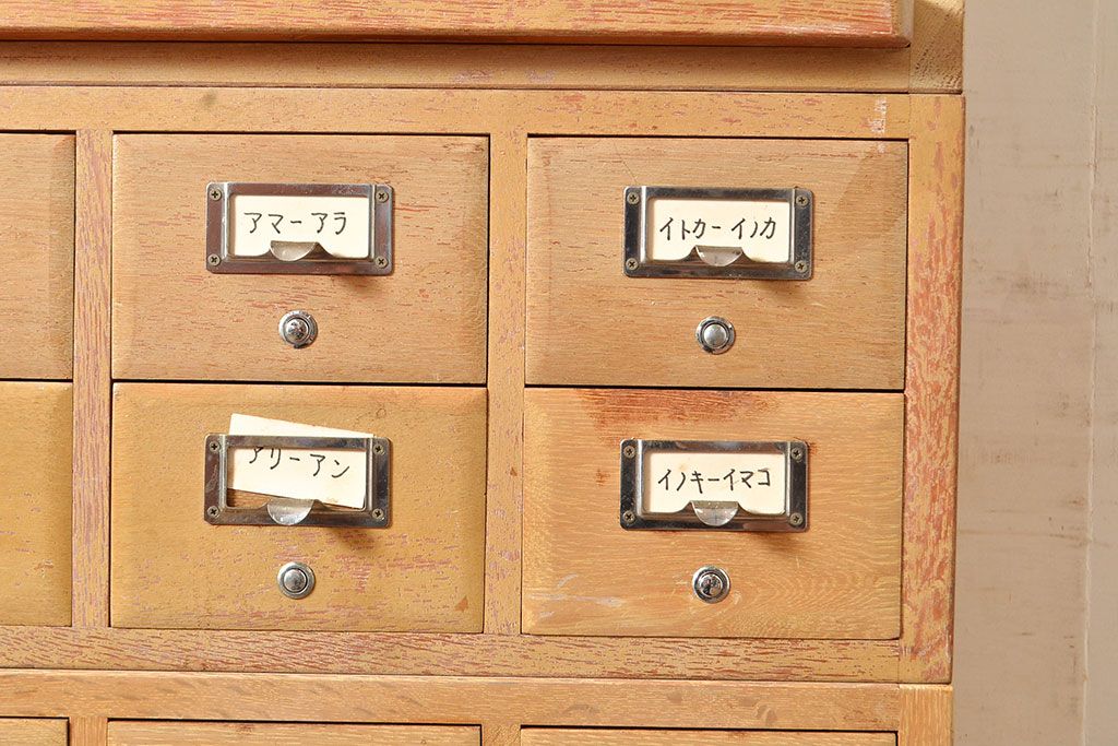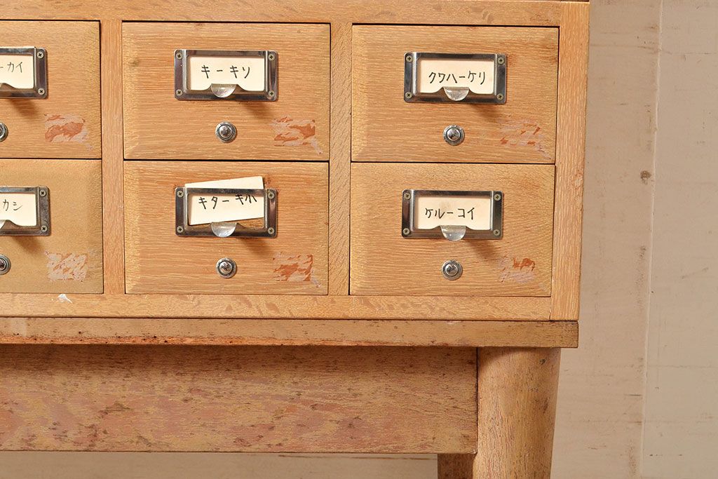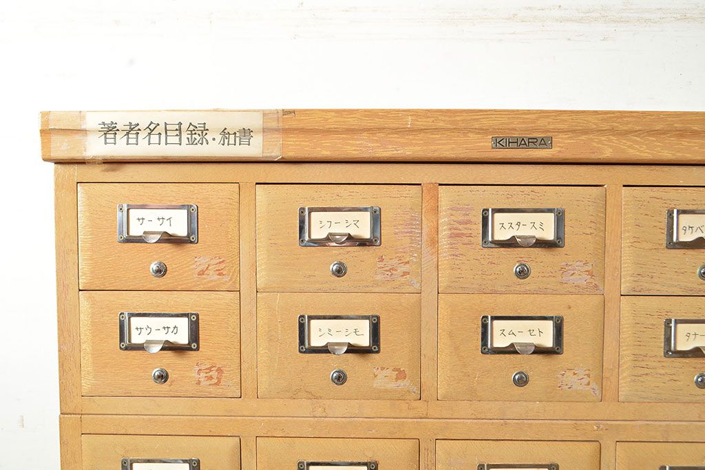 チェスト・引き出し > 【簡易リペア限定品】レトロ家具 昭和レトロ KIHARA レトロな小物収納におすすめのナラ材製ネームプレート付きカードケース(引き出し、チェスト、図書館、図書室)(R-049499)