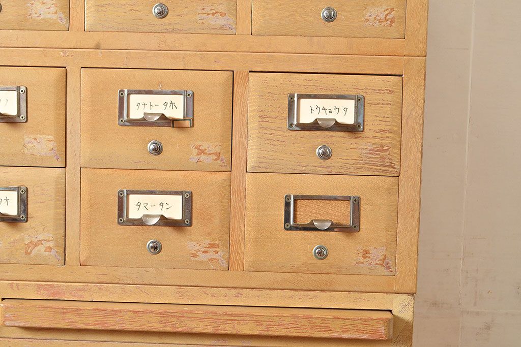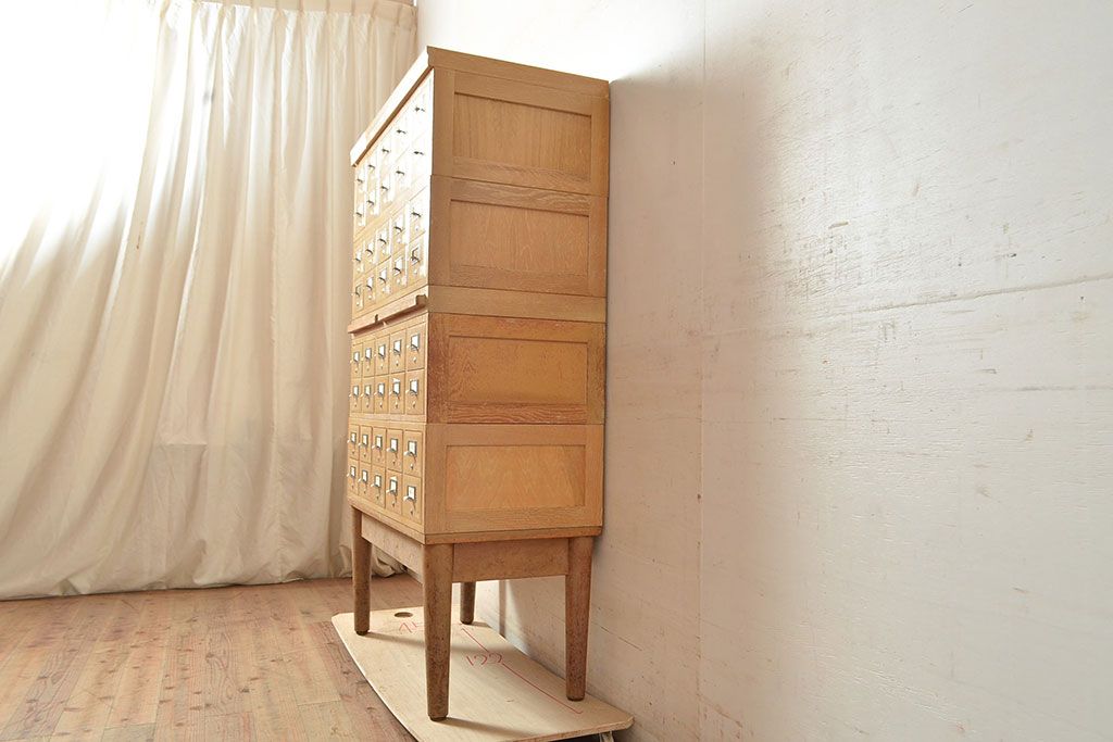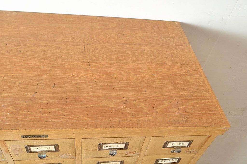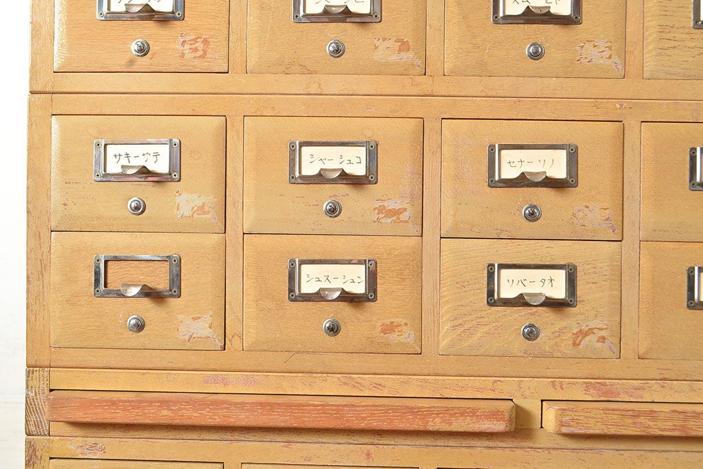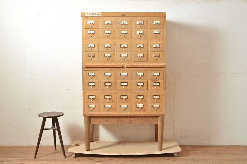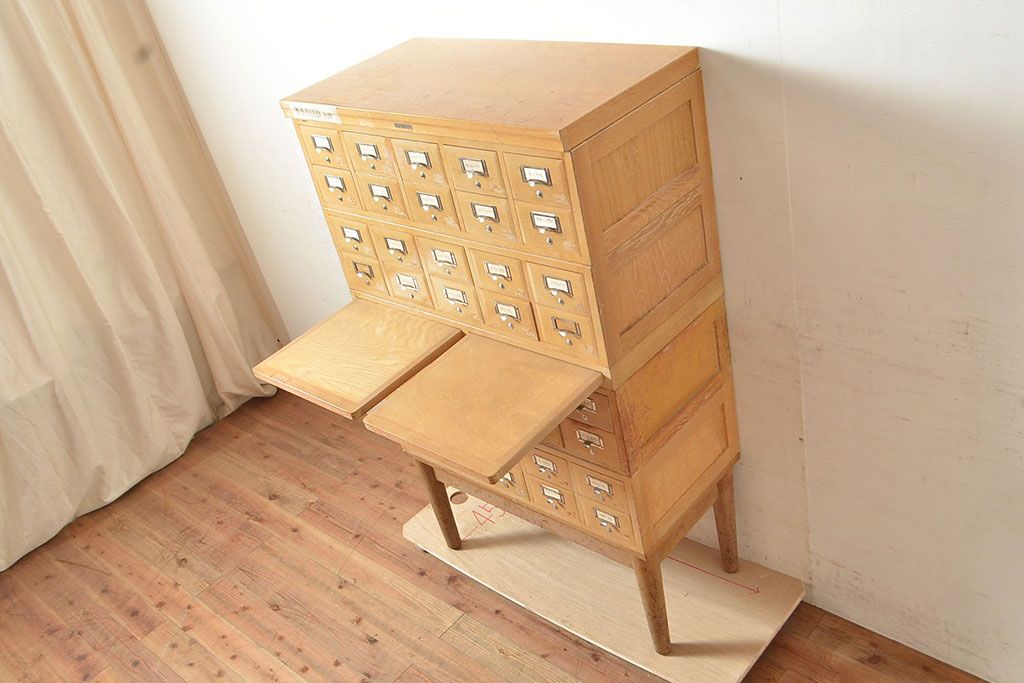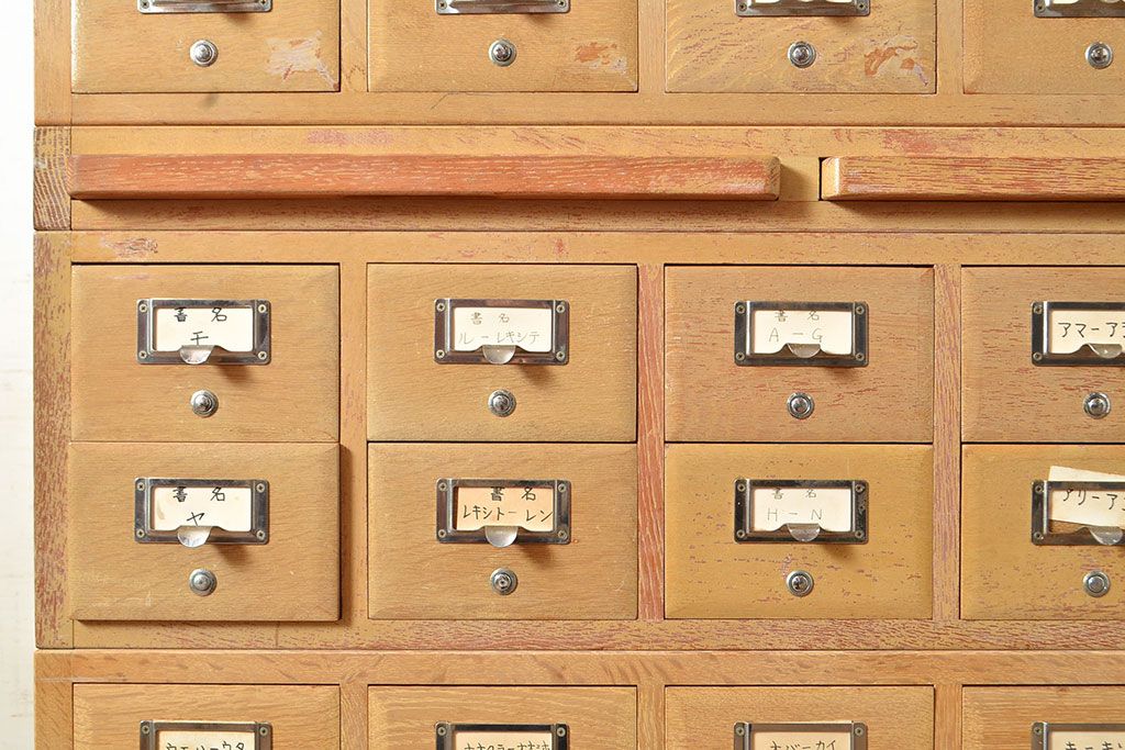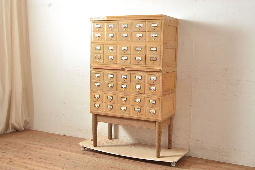 チェスト・引き出し > 【簡易リペア限定品】レトロ家具 昭和レトロ KIHARA レトロな小物収納におすすめのナラ材製ネームプレート付きカードケース(引き出し、チェスト、図書館、図書室)(R-049499)