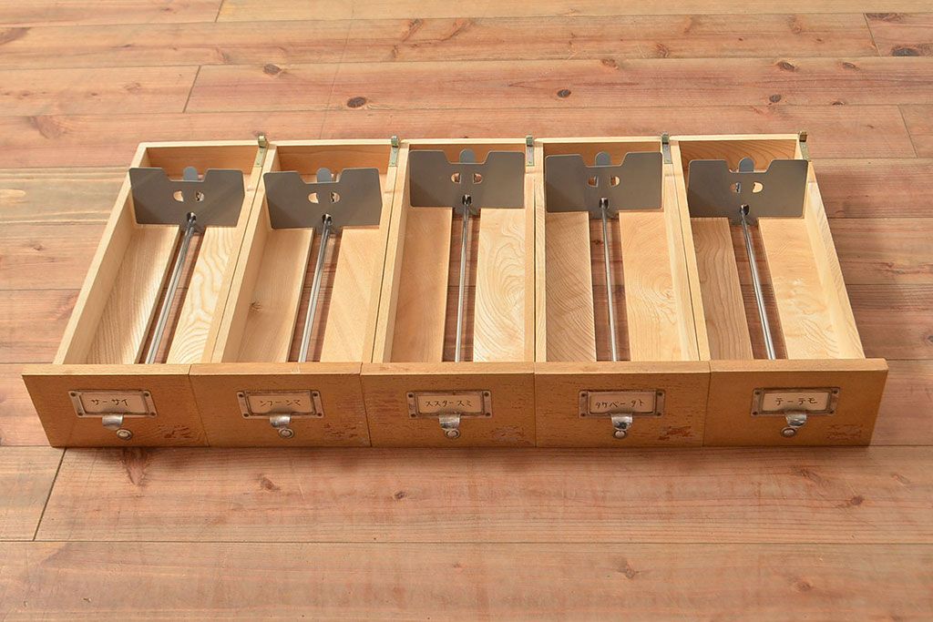 【簡易リペア限定品】レトロ家具 昭和レトロ KIHARA レトロな小物収納におすすめのナラ材製ネームプレート付きカードケース(引き出し、チェスト、図書館、図書室)(R-049499)