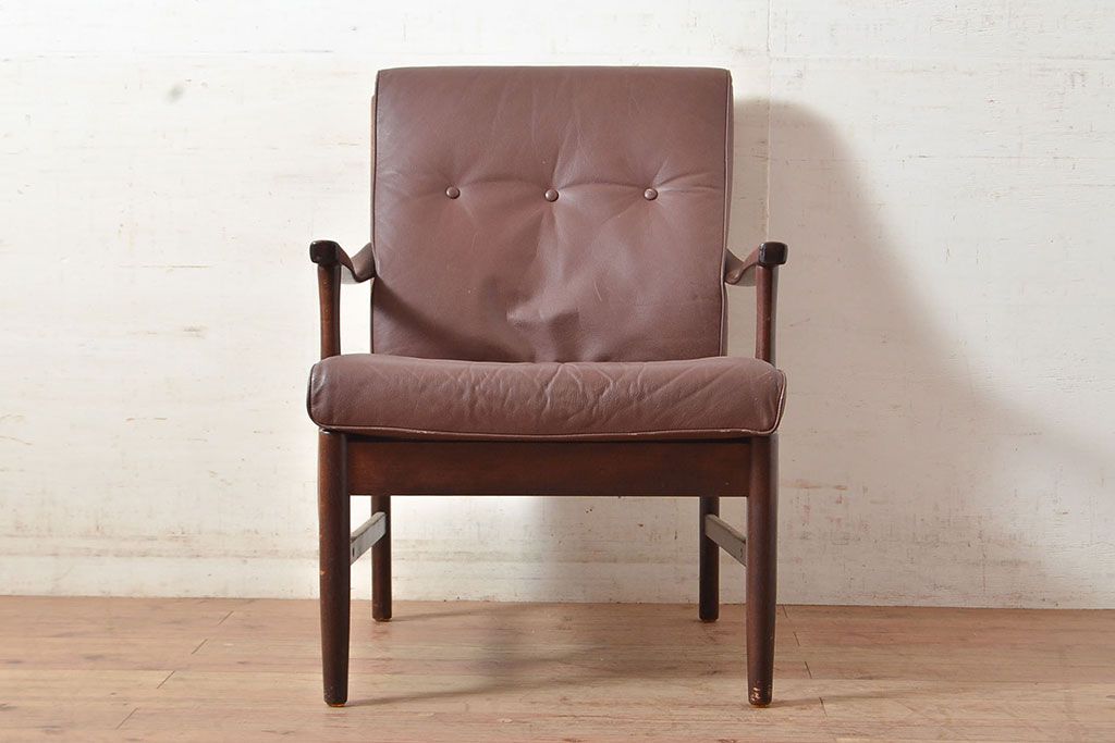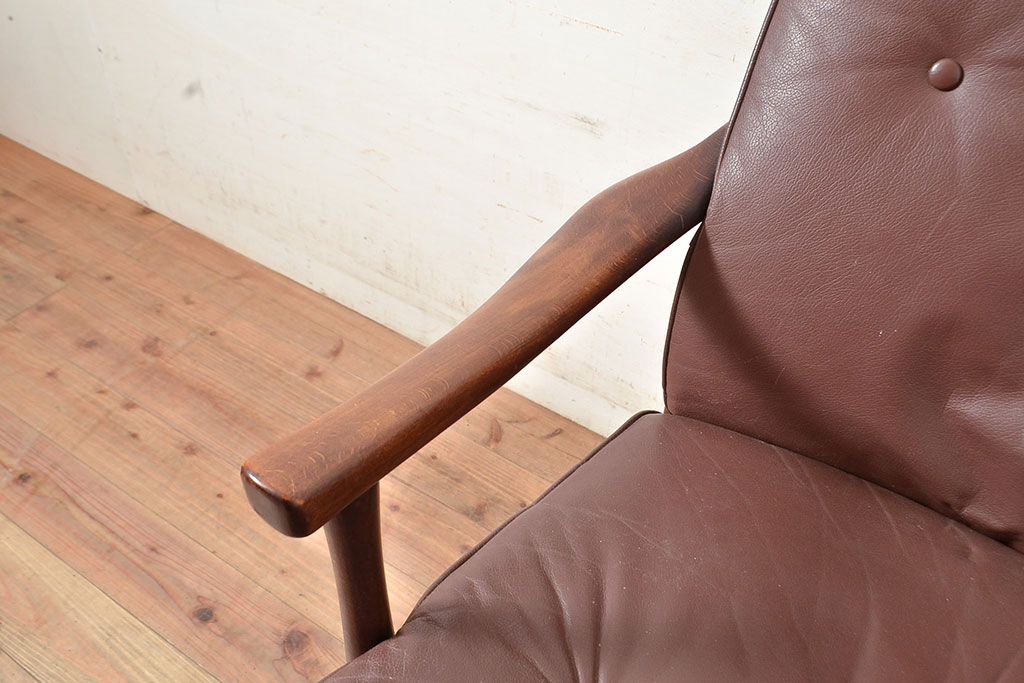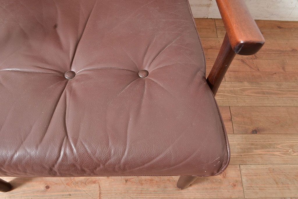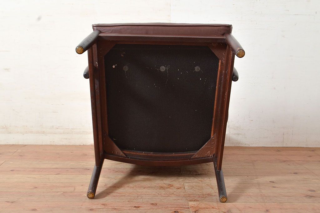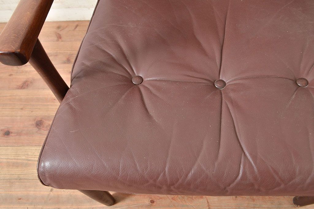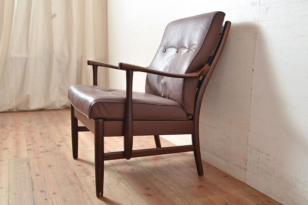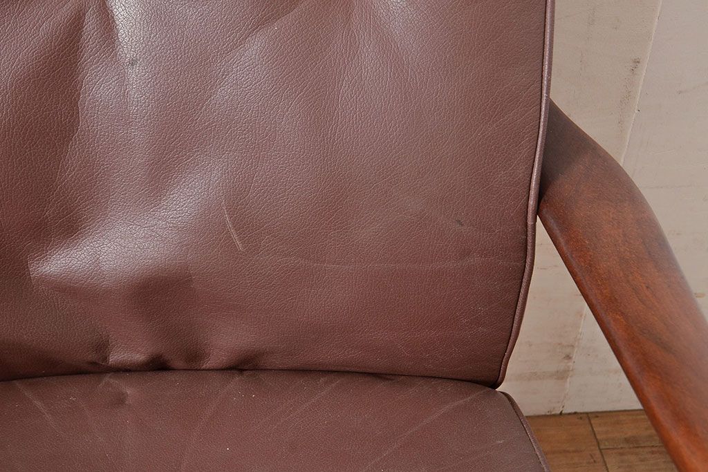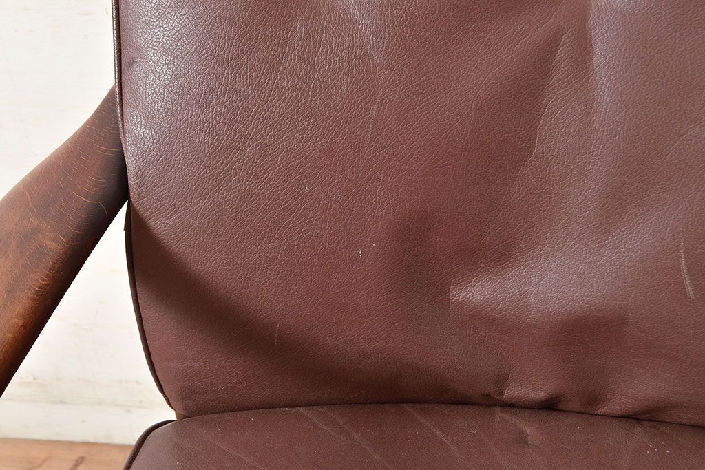 椅子・ベンチ> アームチェア > ヴィンテージ家具 北欧家具 デンマーク ビーチ材 大人の格好いい空間を演出するイージーチェア(アームチェア、ダイニングチェア、椅子、イス、合皮、ビンテージ)(R-049493)