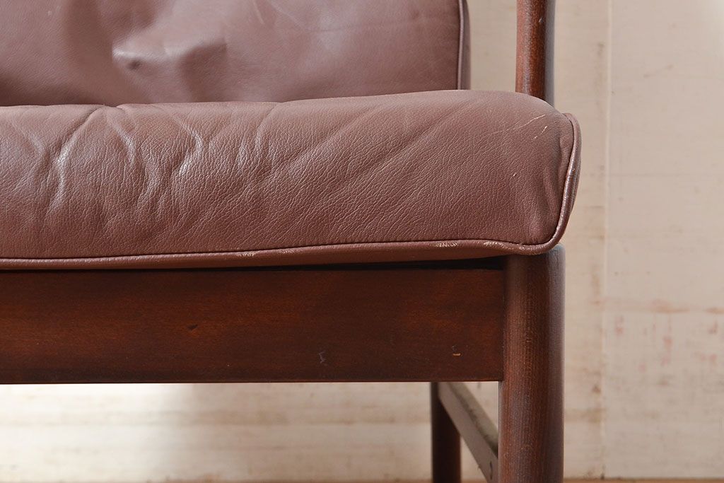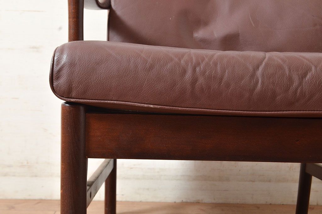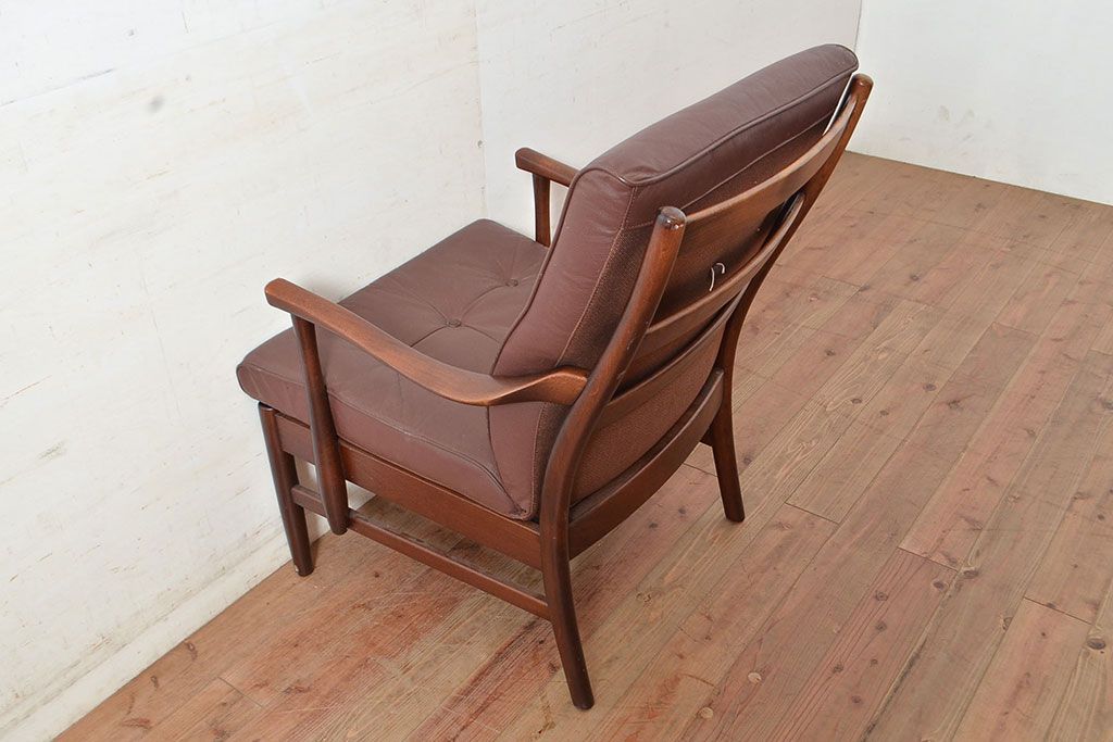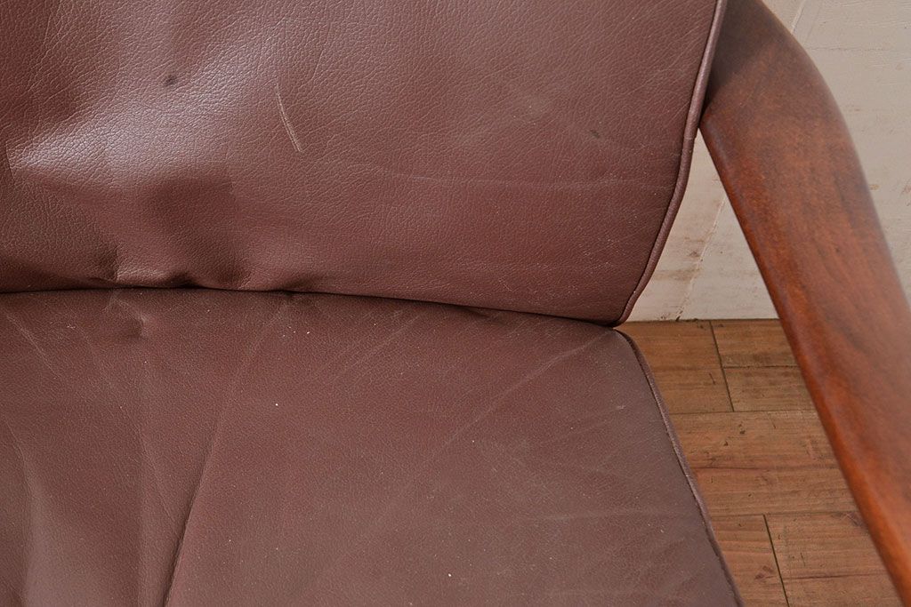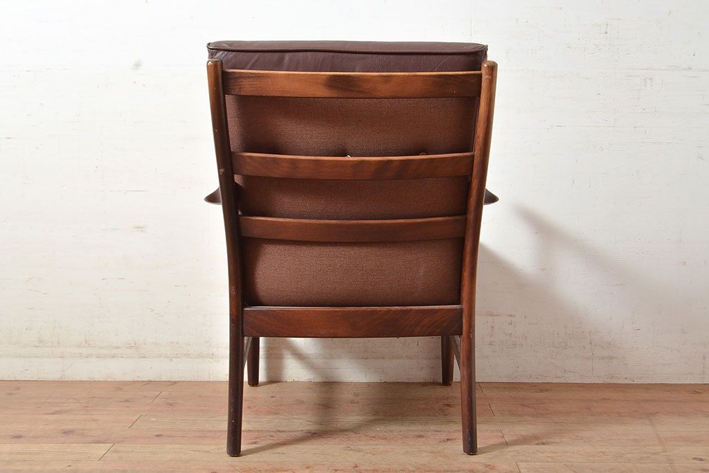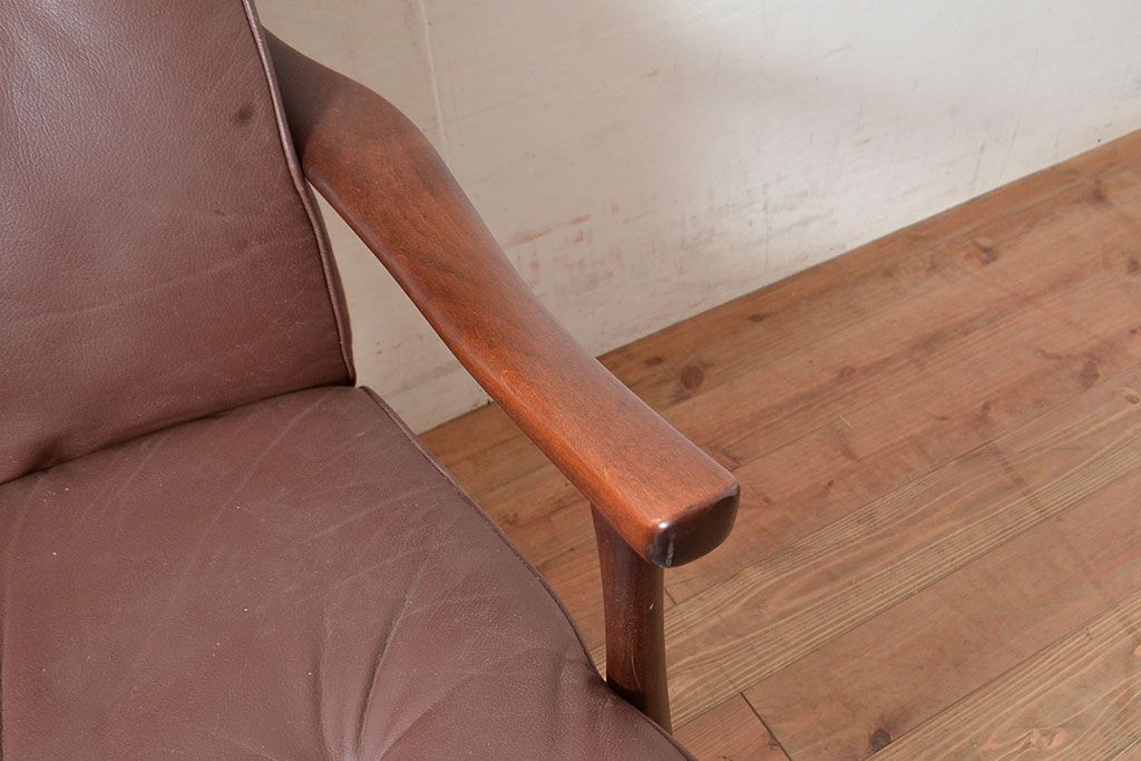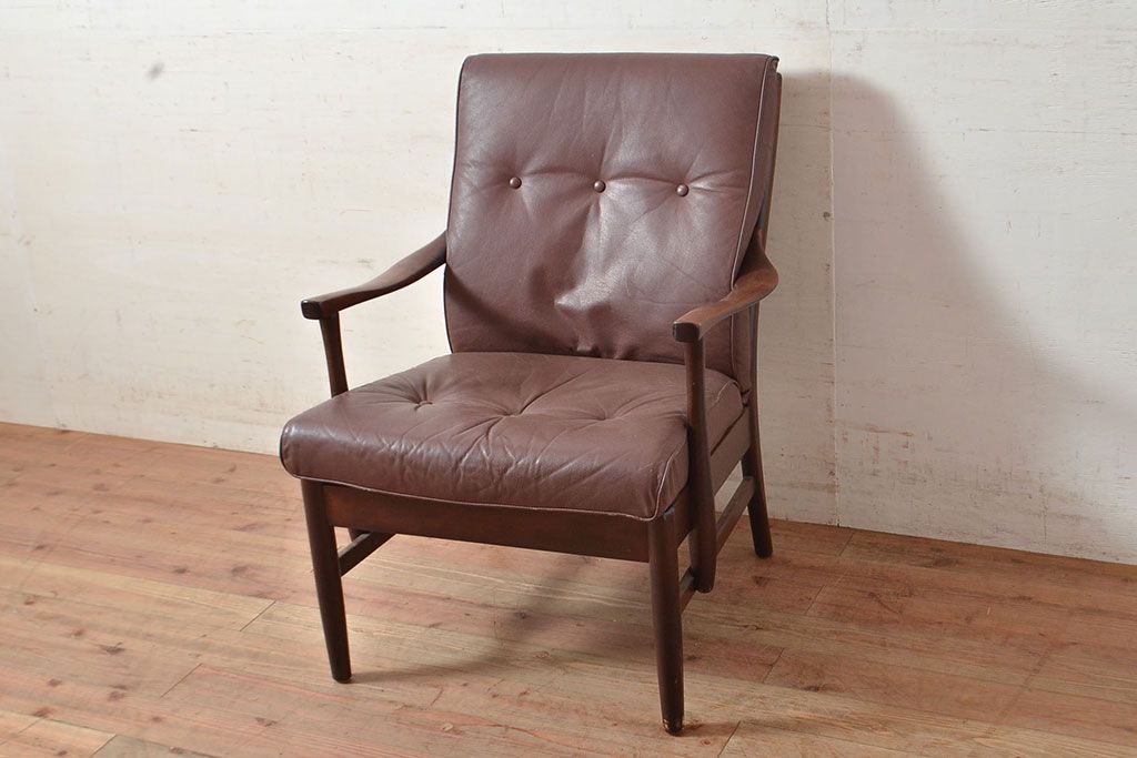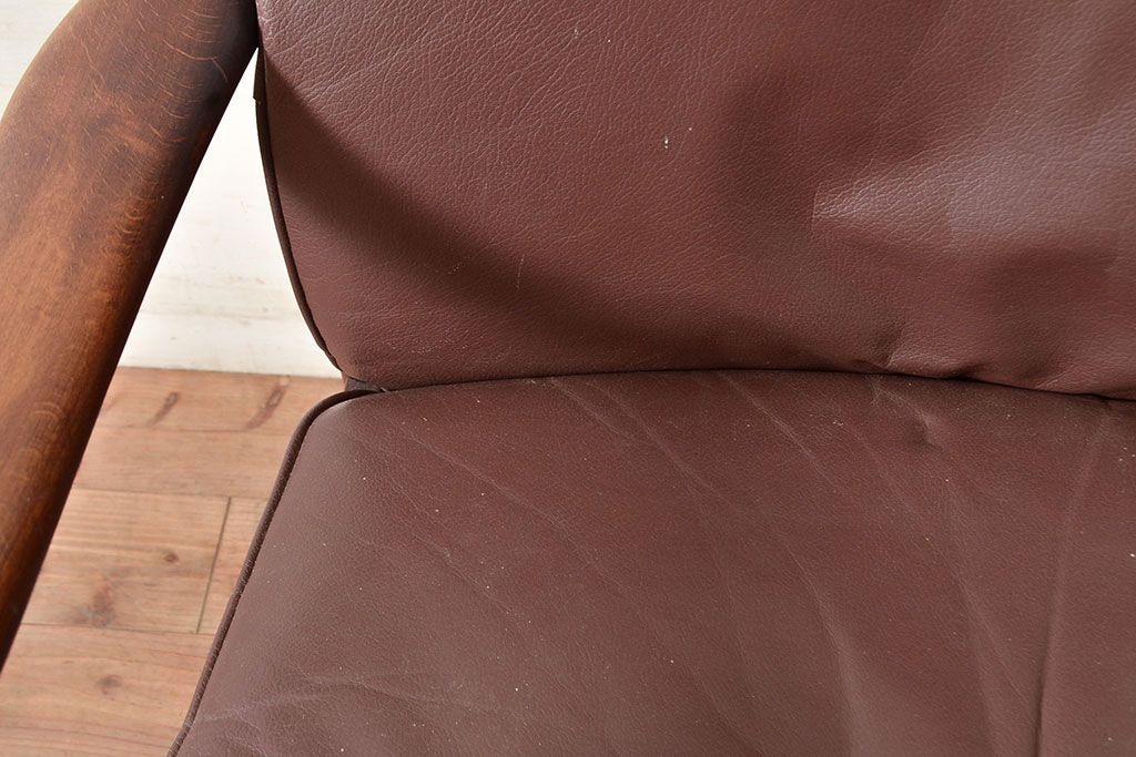 椅子・ベンチ> アームチェア > ヴィンテージ家具 北欧家具 デンマーク ビーチ材 大人の格好いい空間を演出するイージーチェア(アームチェア、ダイニングチェア、椅子、イス、合皮、ビンテージ)(R-049493)