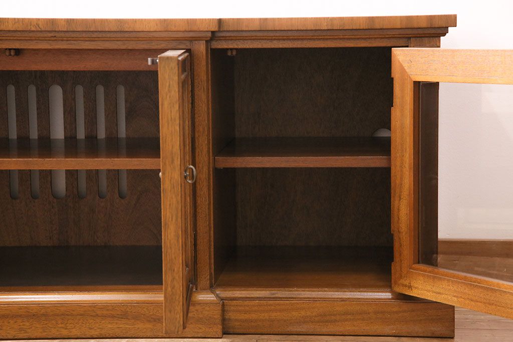 ドレクセルヘリテイジのテレビボードをリペア&カスタム!可動部の調整を行い、背面穴開け加工。(ローボード、収納棚、キャビネット)