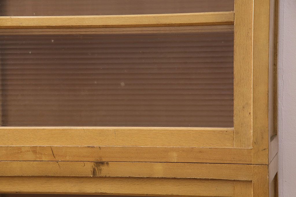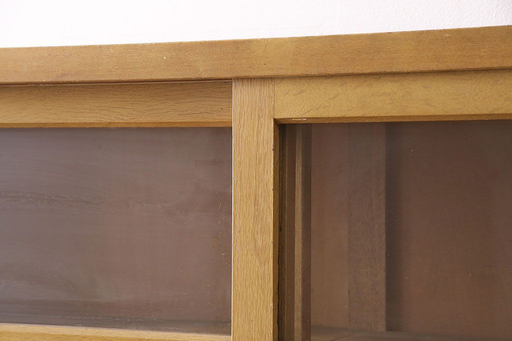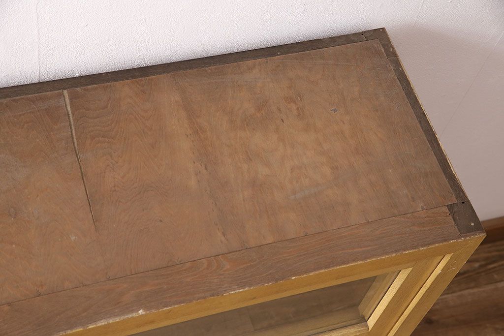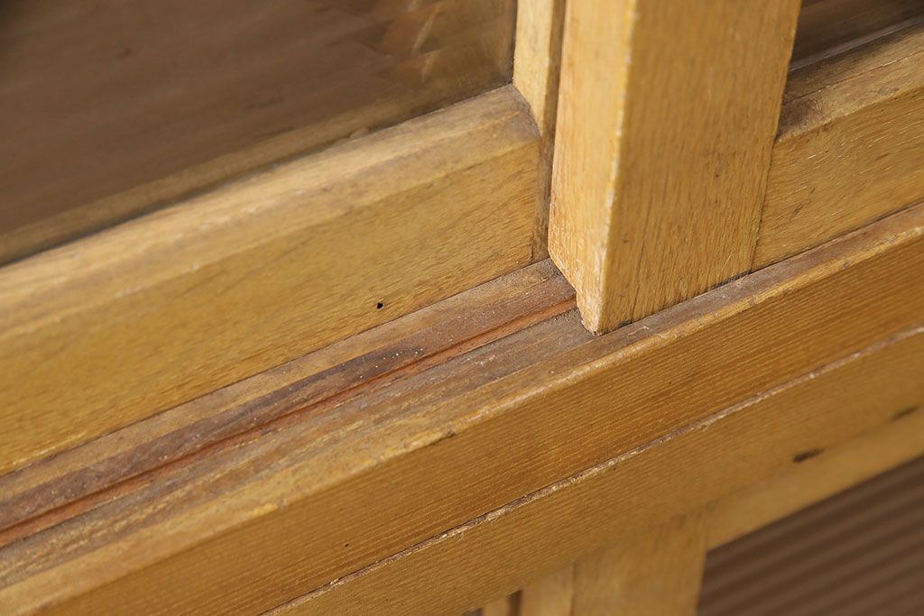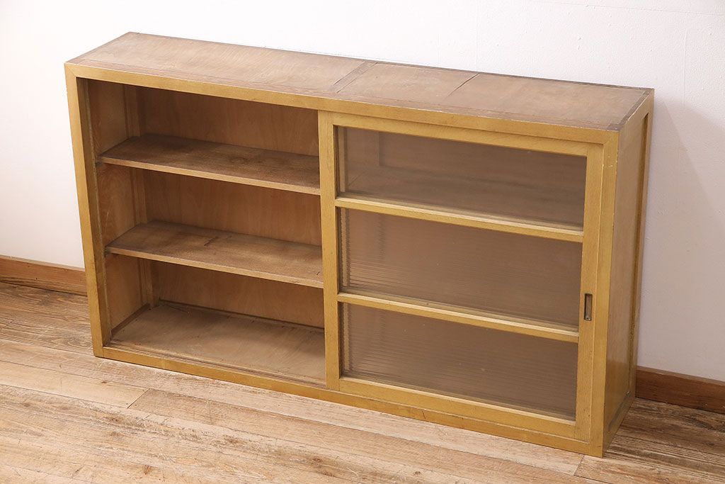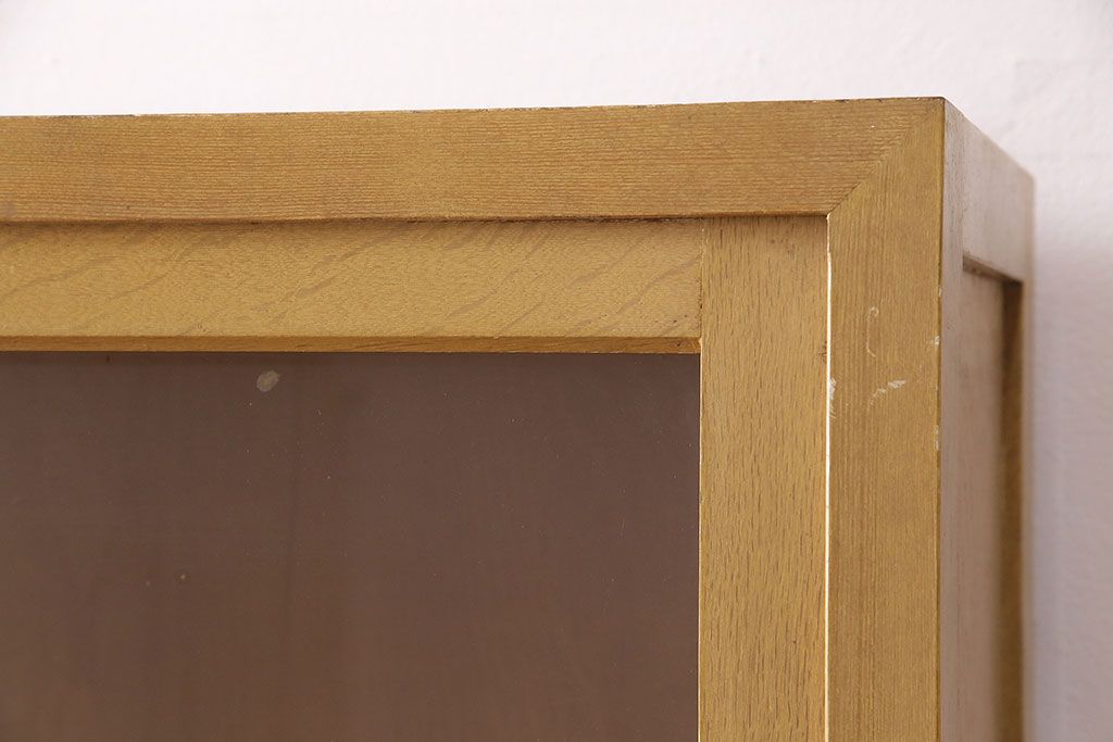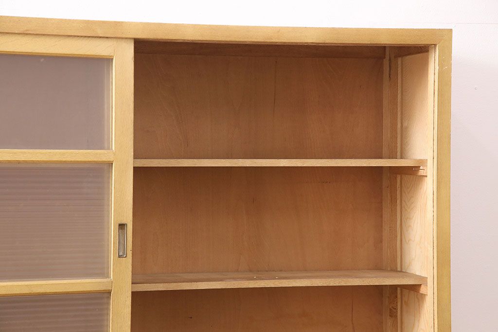 レトロ家具 タモ材合板 人気のモールガラス入り!昭和レトロな佇まいが魅力的な戸棚(サイドボード、ガラス戸棚、収納棚、食器棚)(R-048611)