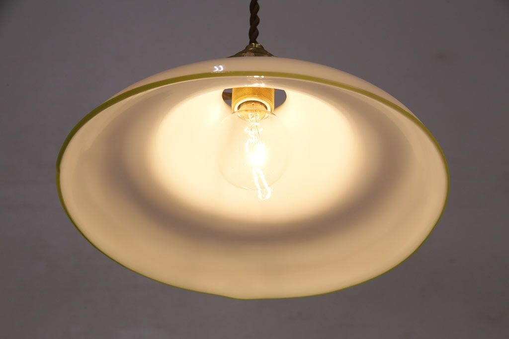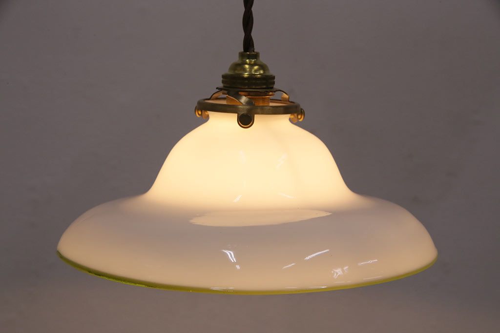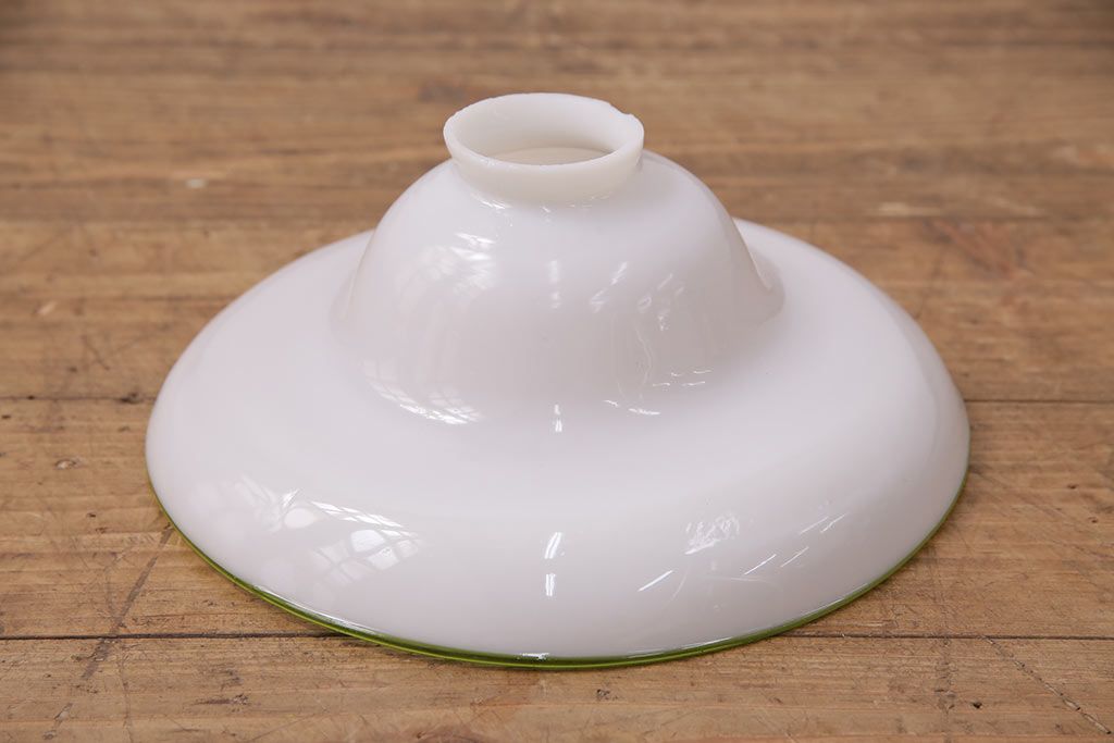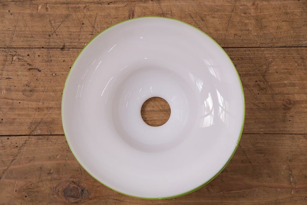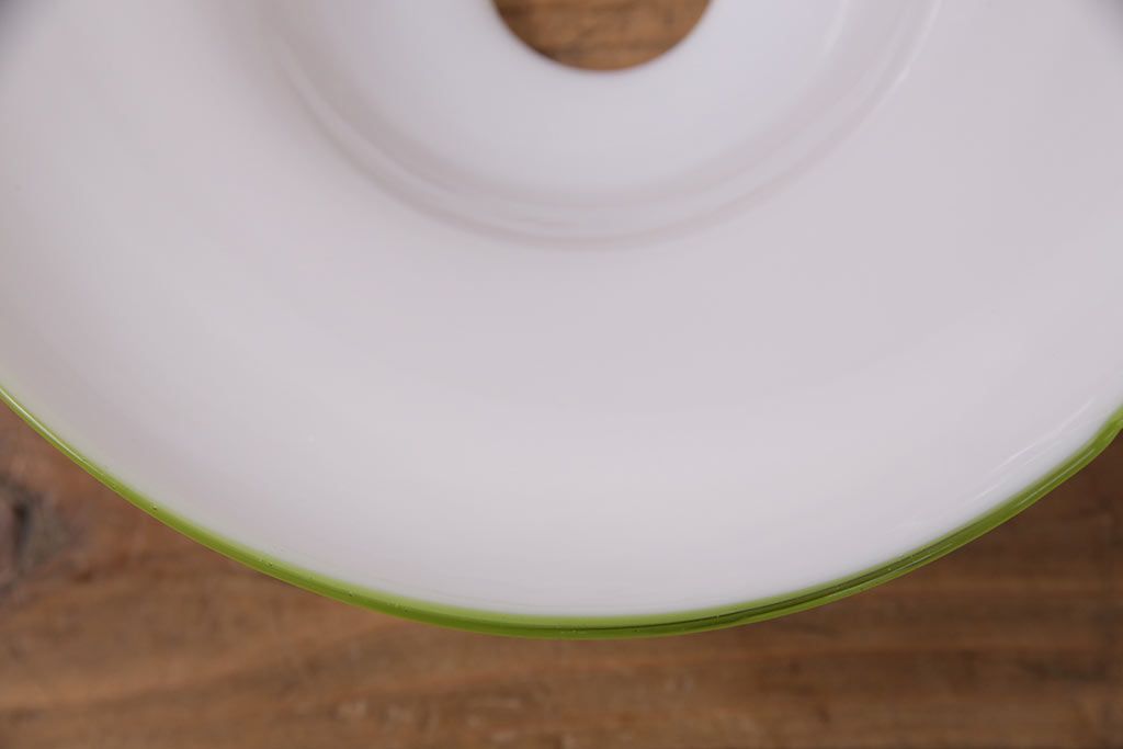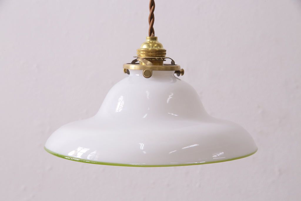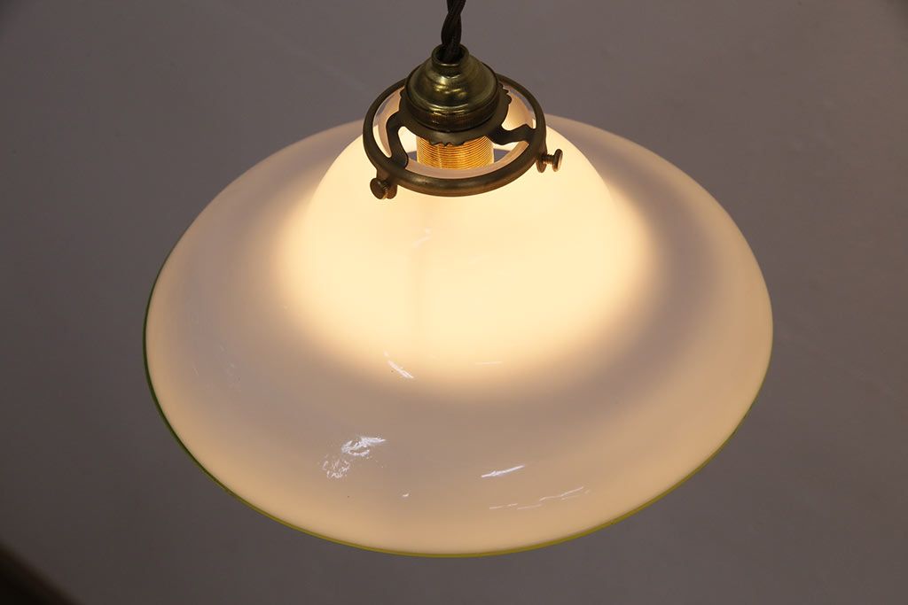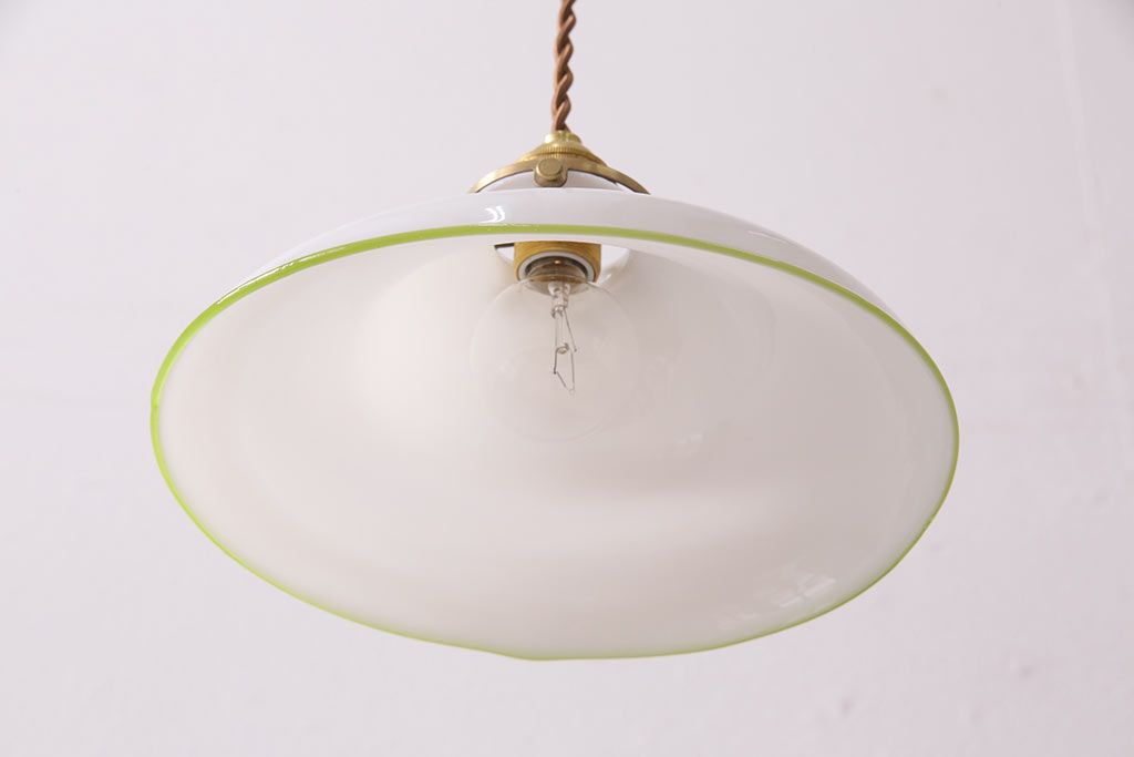 照明・ランプ> ペンダントライト > アンティーク照明 和製アンティーク グリーンの縁がアクセントのシンプルな吊り下げ照明(天井照明、ペンダント照明、シェード、電笠)(R-049532)