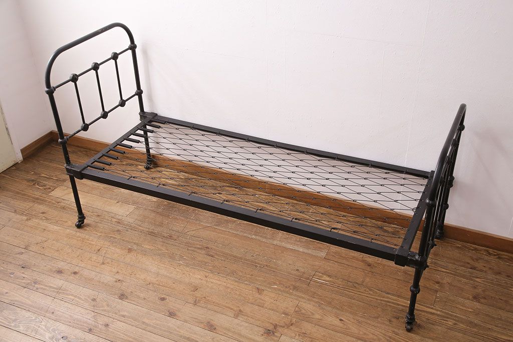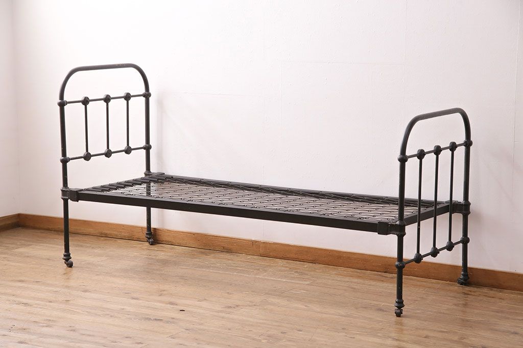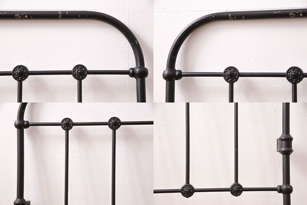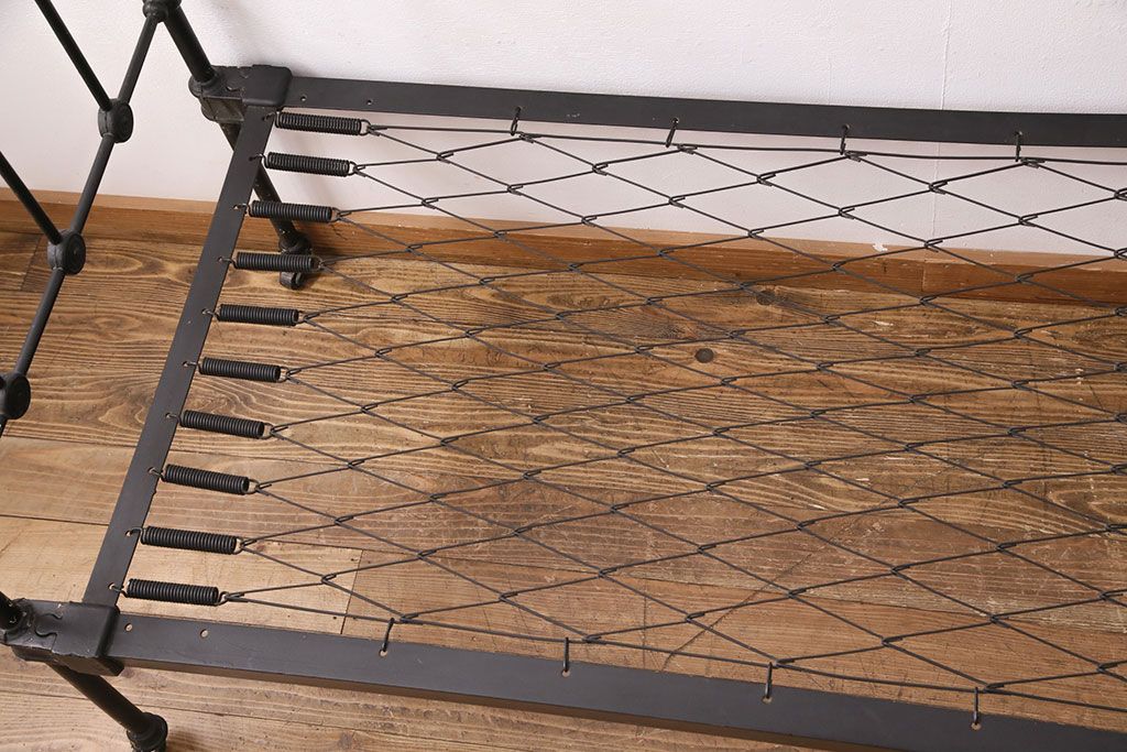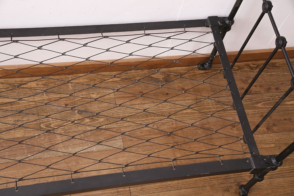 アンティーク家具 フランスアンティーク メンズライクスタイルにおすすめ!金網のようなデザインがおしゃれなベッドフレーム(飾り棚、陳列棚、シングル)(R-049631)