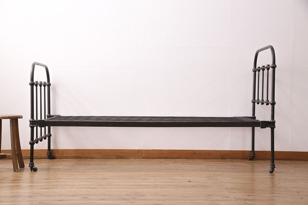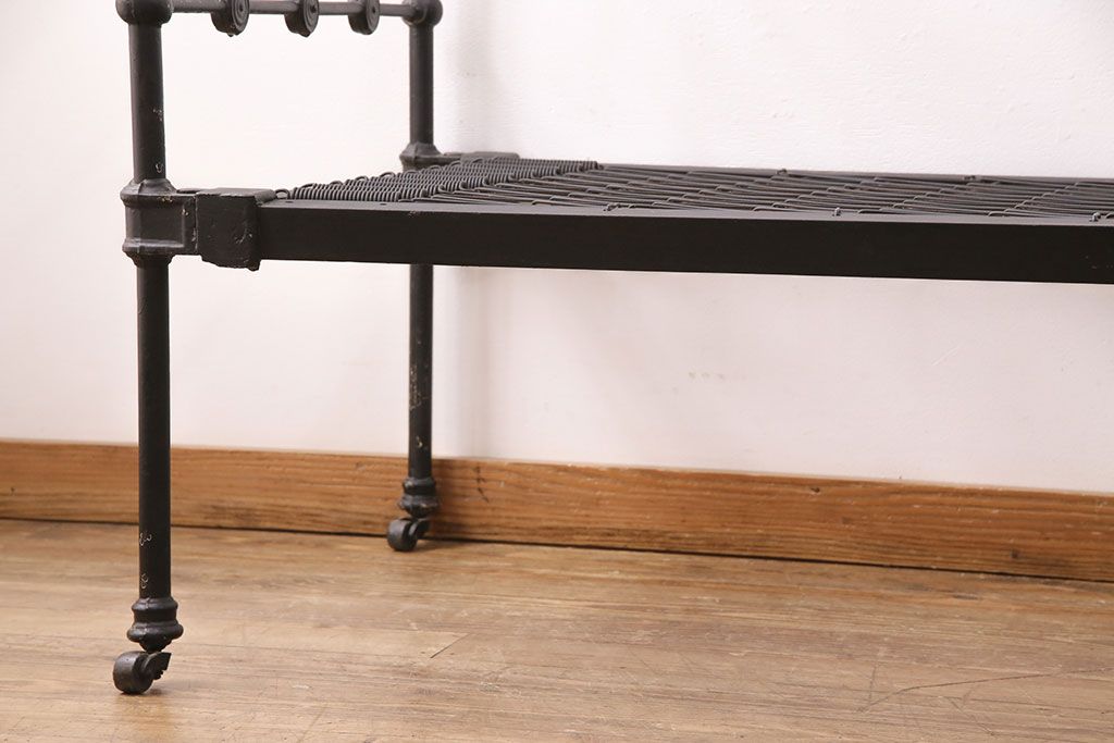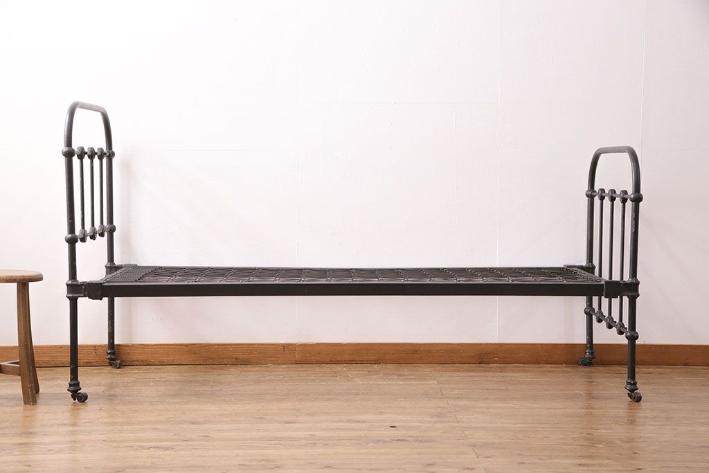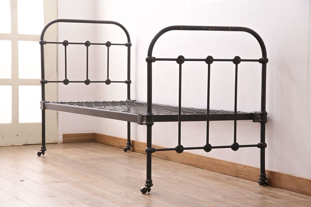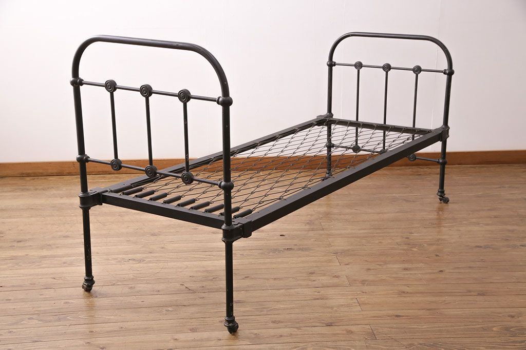アンティーク家具 フランスアンティーク メンズライクスタイルにおすすめ!金網のようなデザインがおしゃれなベッドフレーム(飾り棚、陳列棚、シングル)(R-049631)
