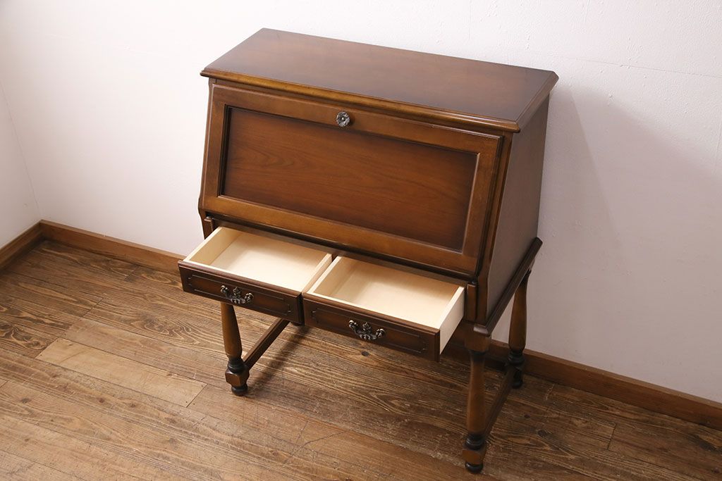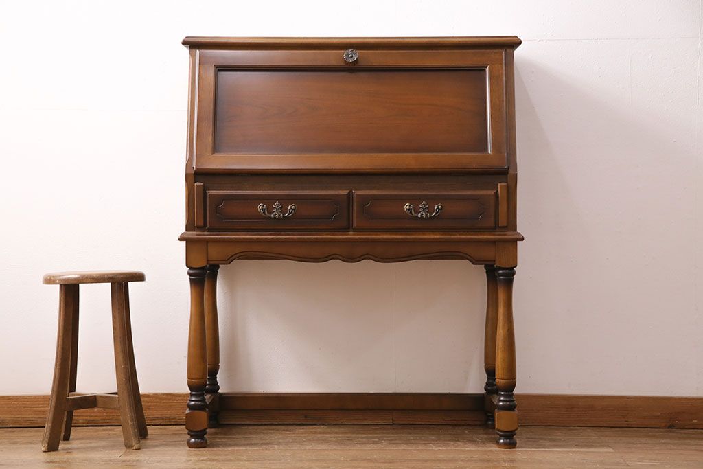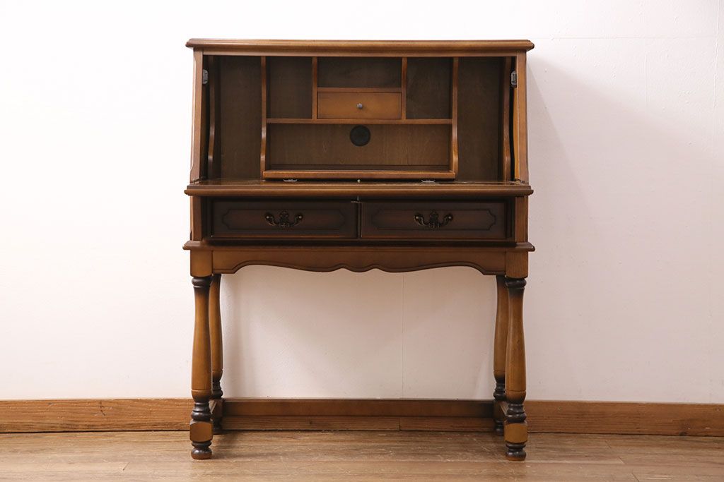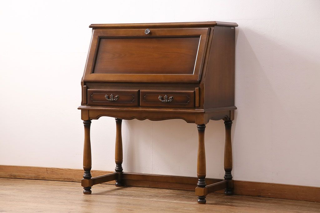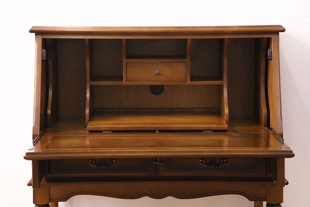 中古 美品 カリモク家具(karimoku) コロニアルシリーズ クラシカルな佇まいが魅力のライティングビューロー(簿記机、在宅ワーク、在宅用ワークデスク)(R-049685)