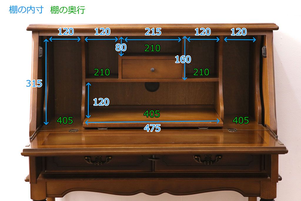 ■引き出しの内寸(ビューロー内) 深さ55mm/幅195mm/奥行165mm