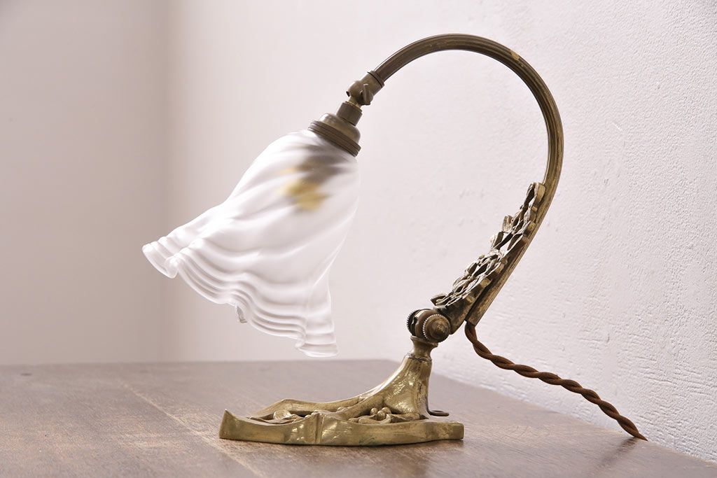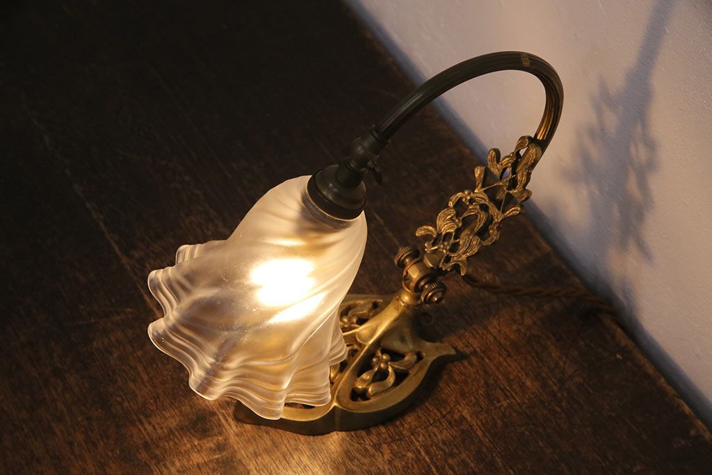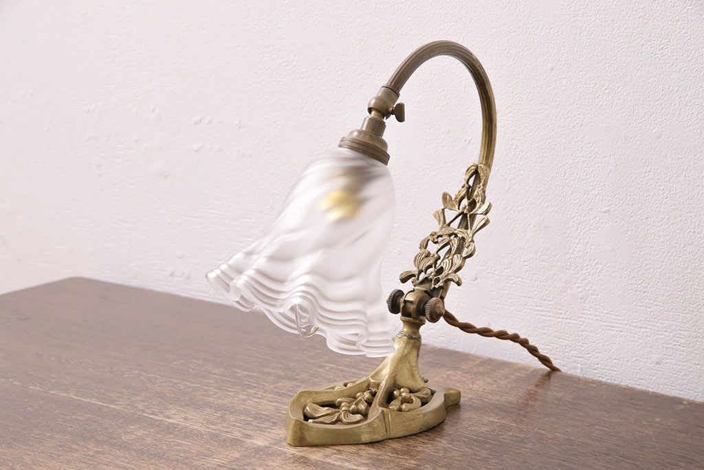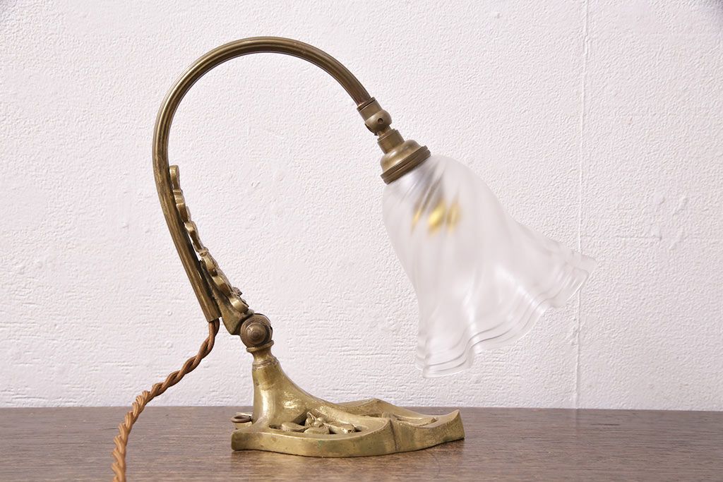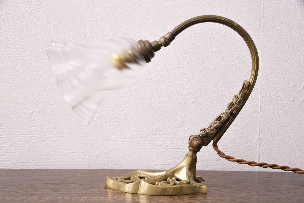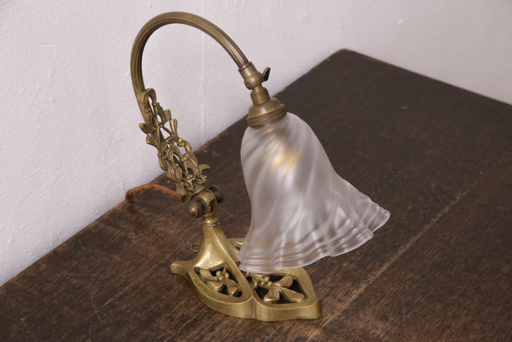 ビンテージ照明 高級品 真鍮製 イギリスよりやってきました!凝った装飾に目を奪われるスタンド照明(スタンドライト、卓上照明、ヴィンテージ)(R-049545)