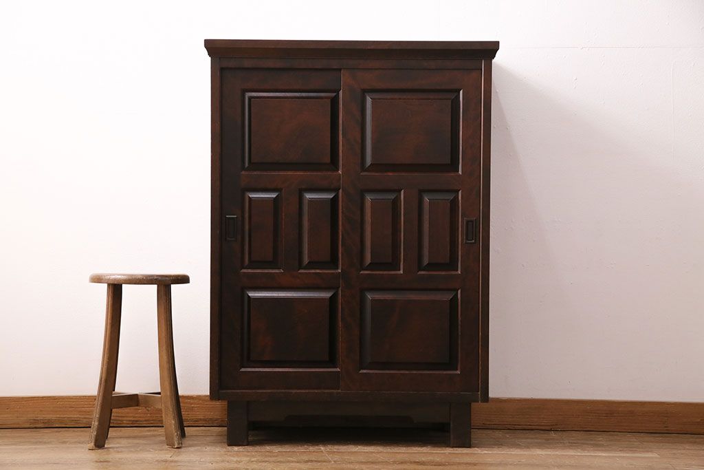 キャビネット・戸棚> 下駄箱 > 中古 北海道民芸家具 シックなデザインで大人の落ち着きのある佇まいが魅力的な下駄箱(靴箱、戸棚、収納棚)(R-049671)