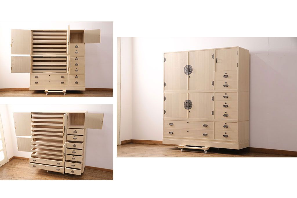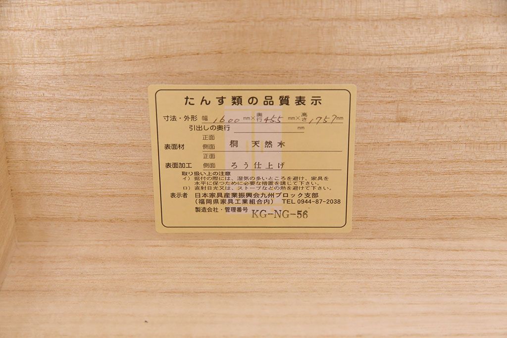 和箪笥 > 展示品 美品 伝統工芸 収納力抜群!気品あふれる佇まいが魅力の加茂総桐箪笥(総桐たんす、着物タンス、引き出し、並厚)(定価約140万円)(R-049600)