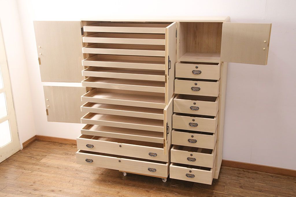衣装盆や大小の引き出しが多数あり、