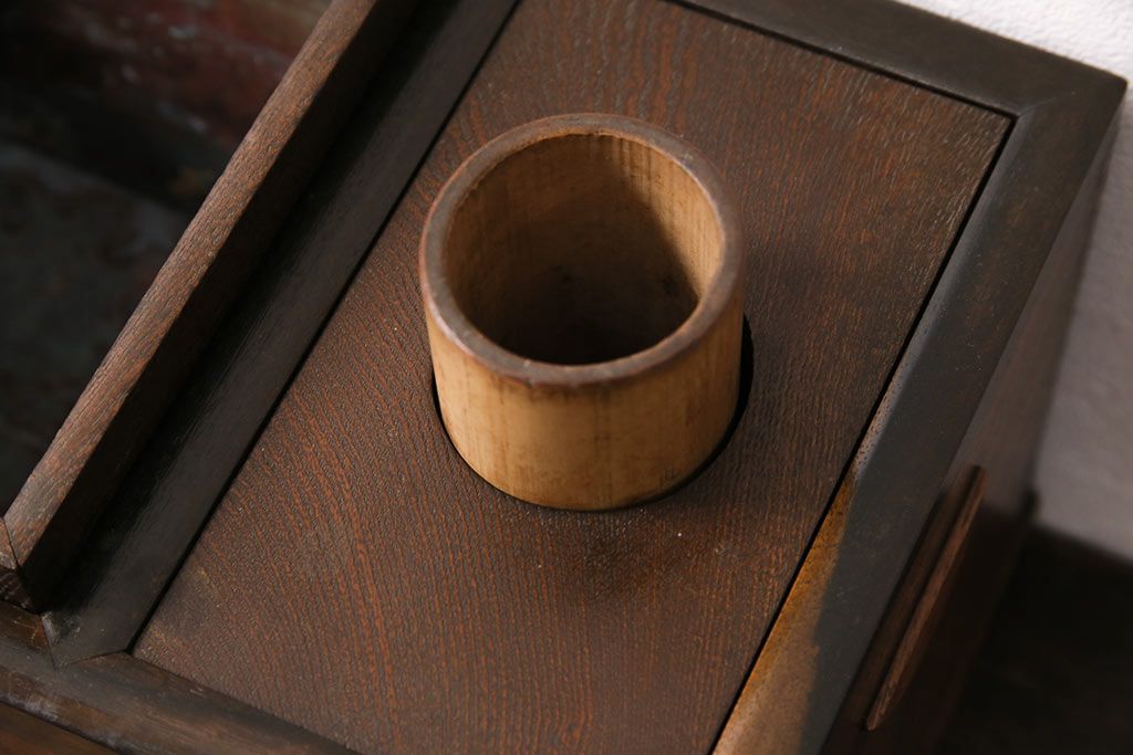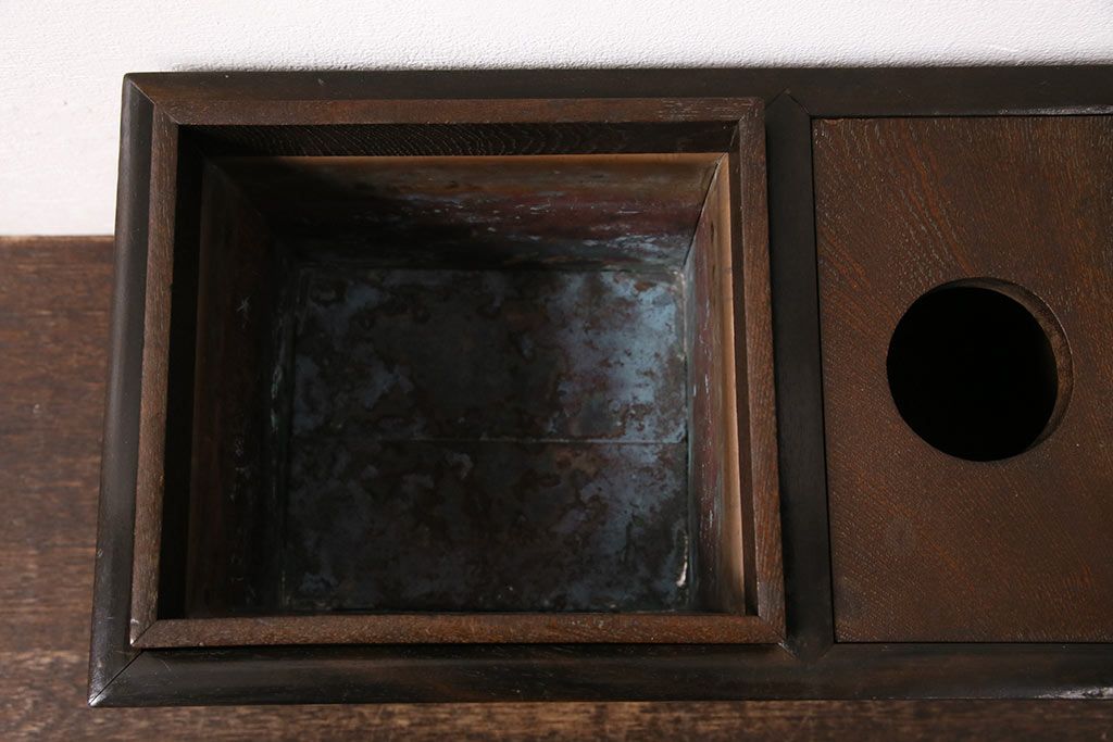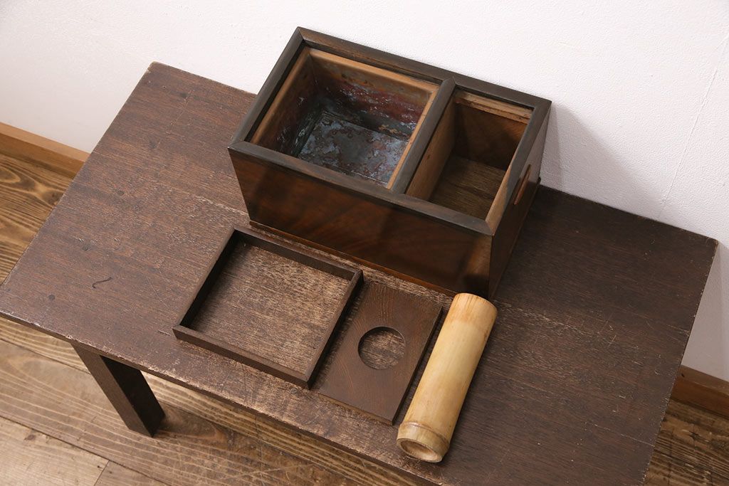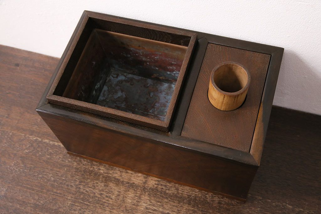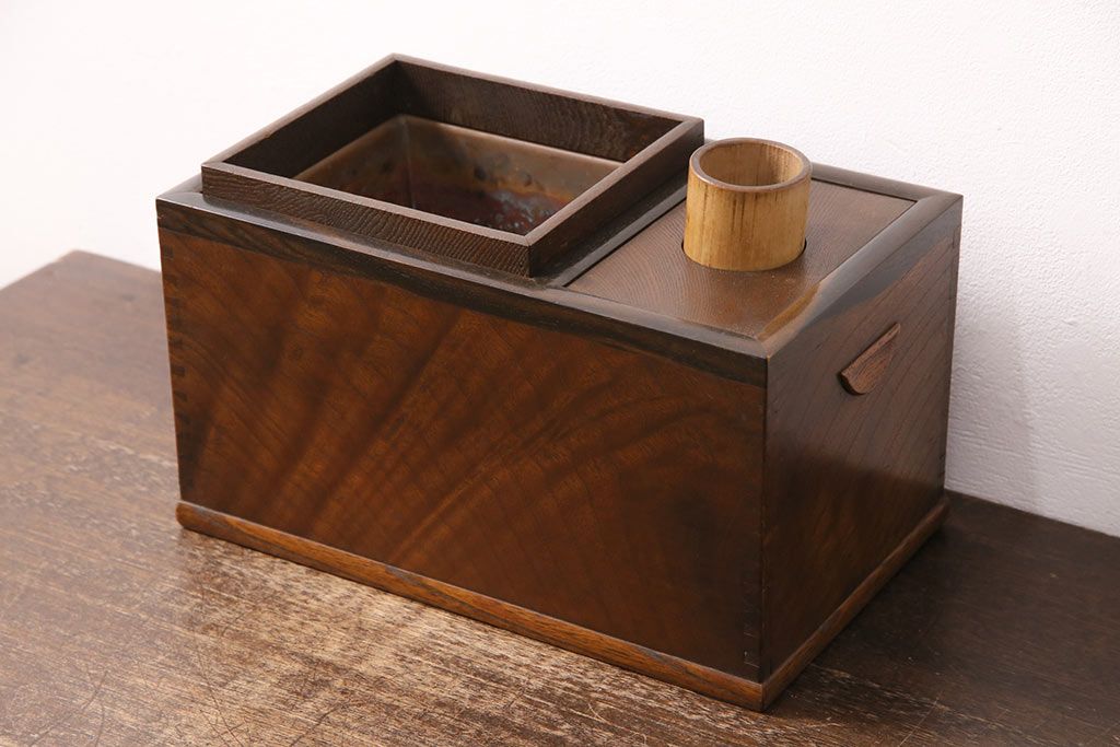 アンティーク雑貨 ケヤキ材・黒柿材 風情を感じる佇まいが魅力の煙草盆(タバコ盆、たばこ盆、火鉢)(R-049698)