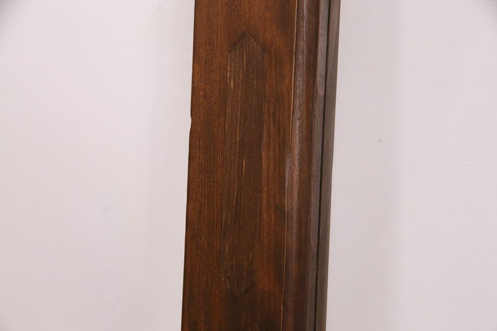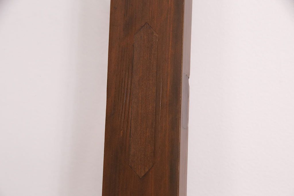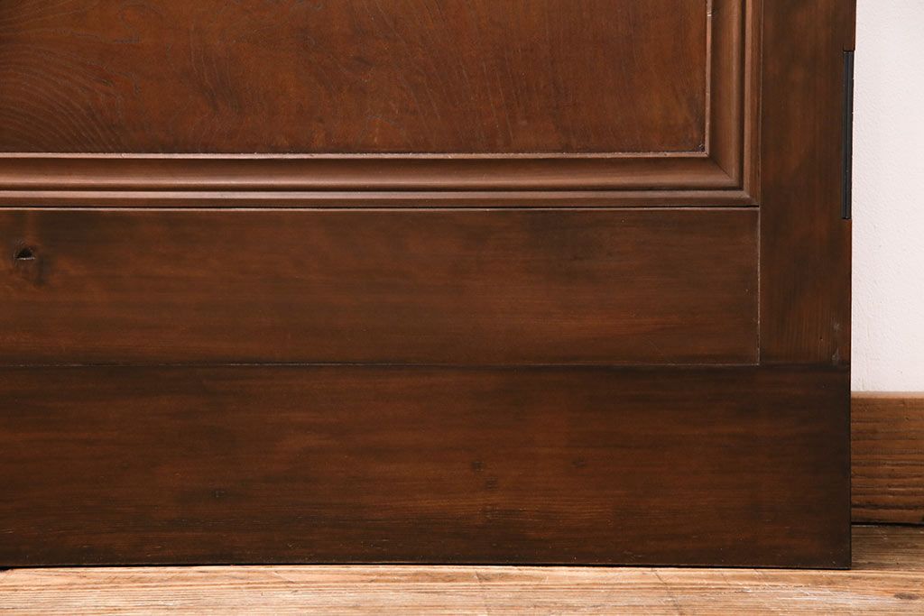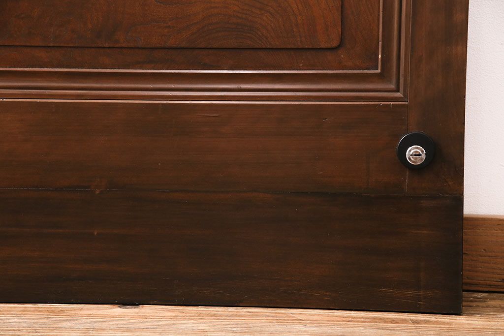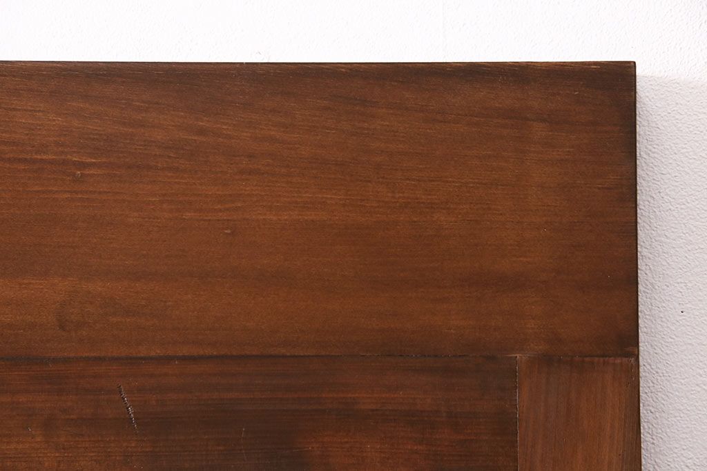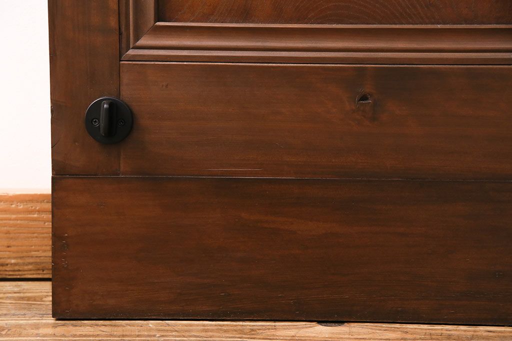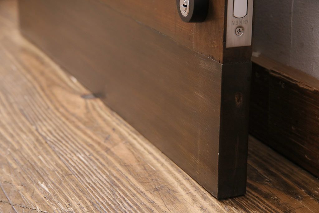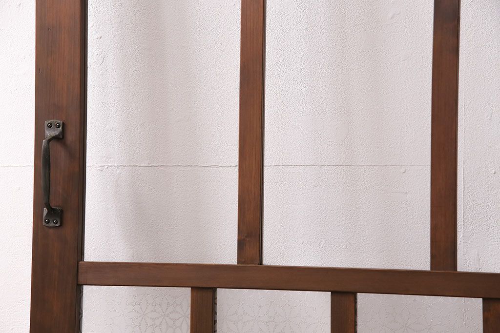 組子細工入り木製ドアをリペア&カスタム!設置場所に合わせてリサイズ。鍵、取っ手、蝶番、ローラー締りを取り付け。クリアガラス、花菱模様ガラス、変わり花菱模様ガラスを組み入れ。当店商品を参考に着色し仕上げ。(玄関ドア、建具)
