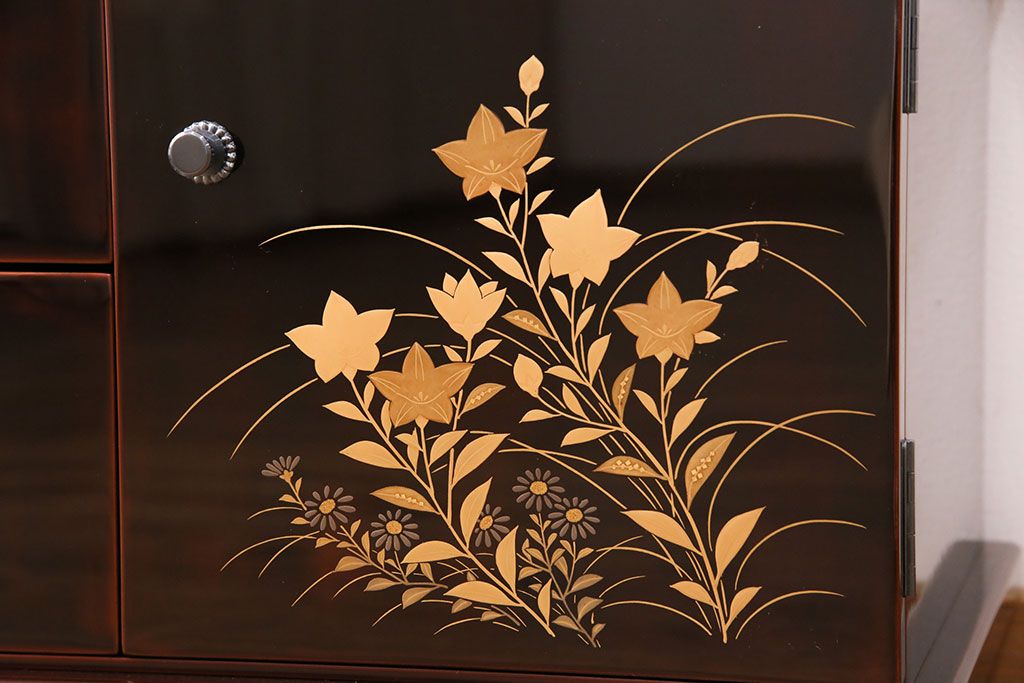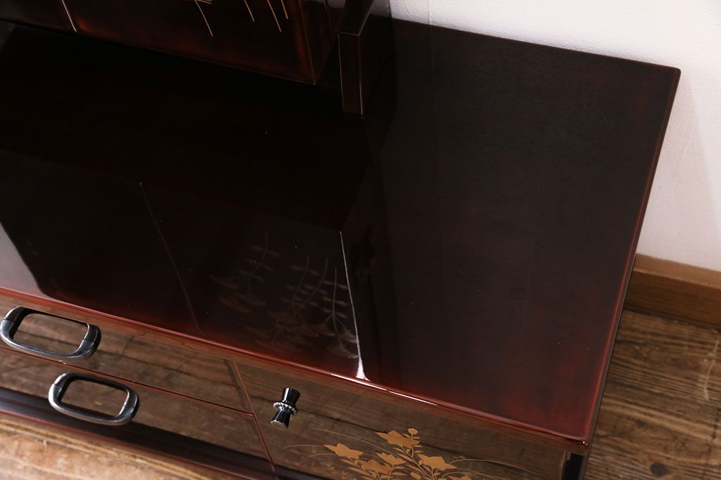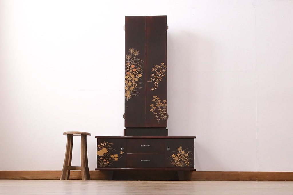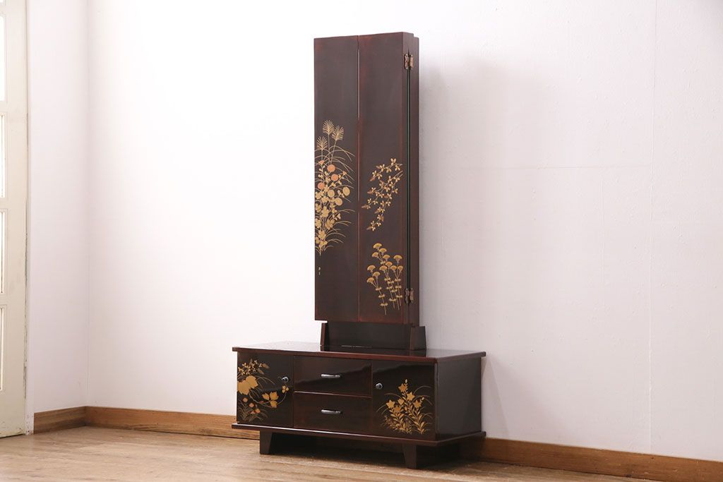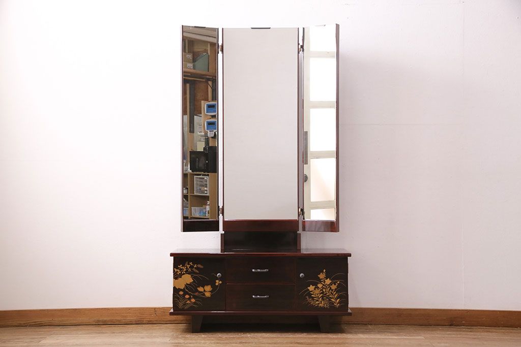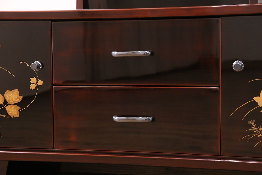 民芸家具 > 未使用 新古品 最高級 勝月銘 蒔絵入り 本漆溜塗り 四季折々の草花の蒔絵が情緒溢れる鏡台(定価約95万円)(姿見、ドレッサー)(R-049635)