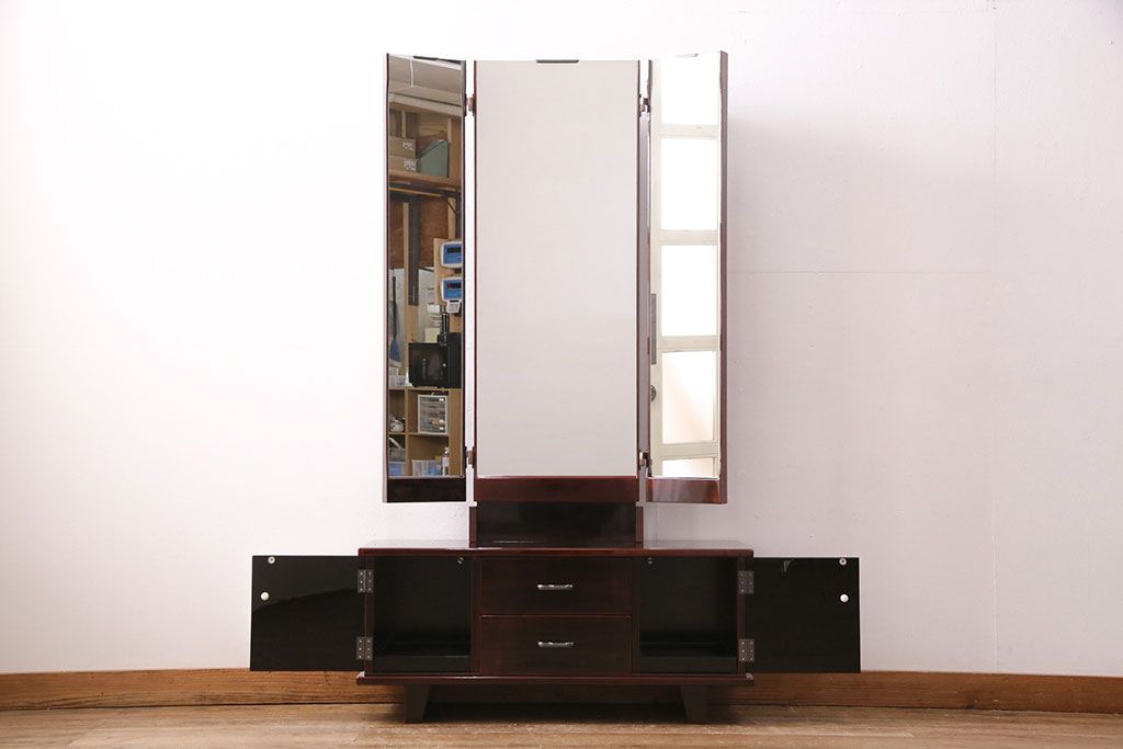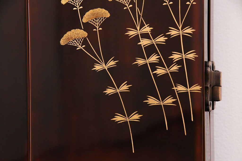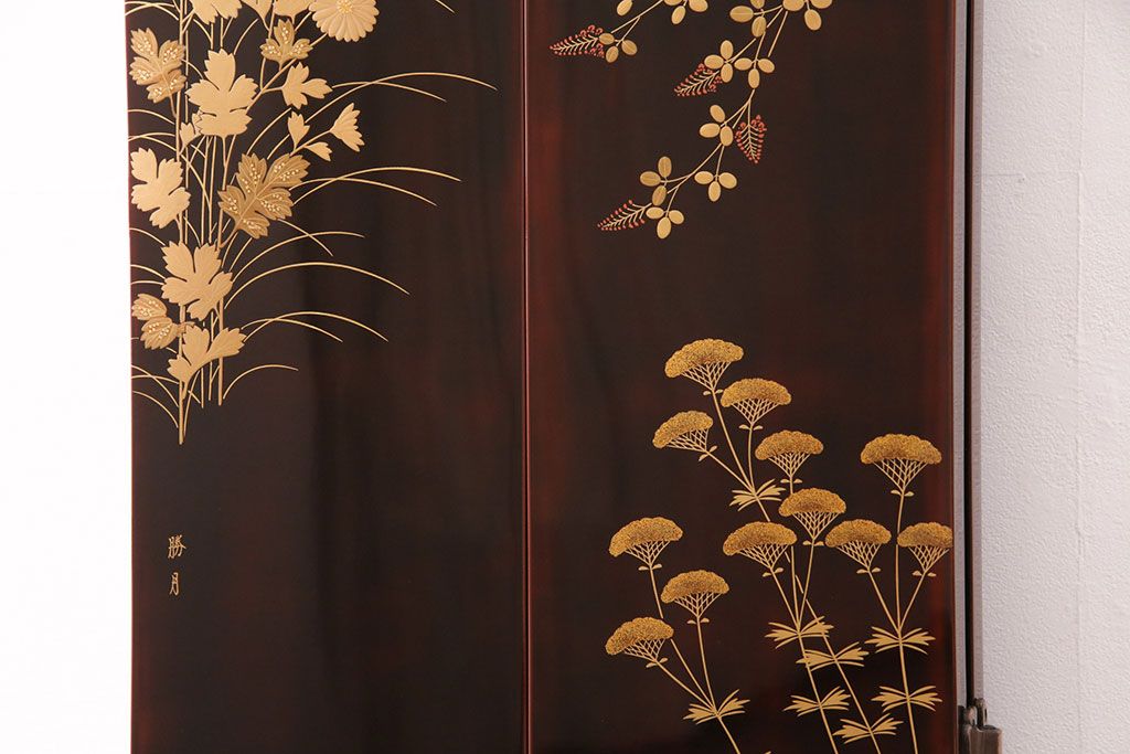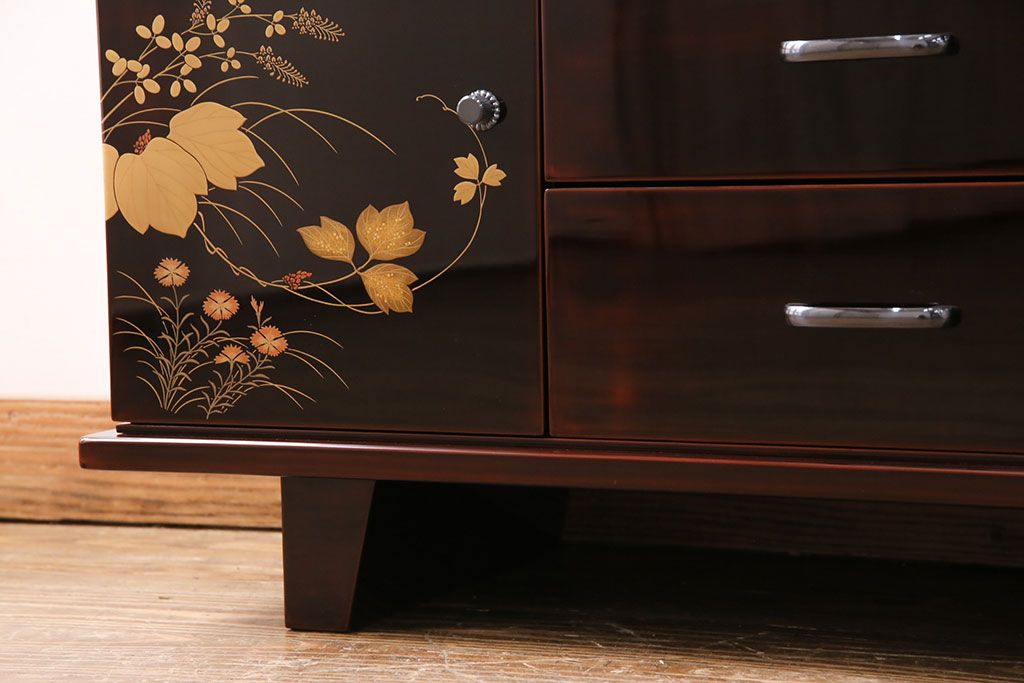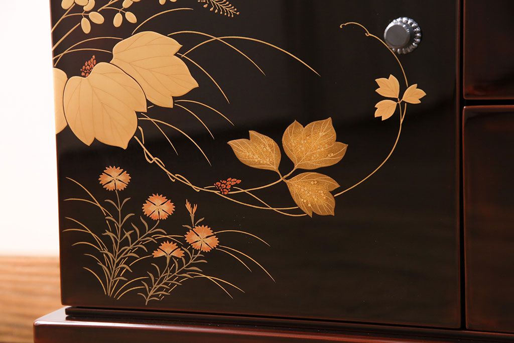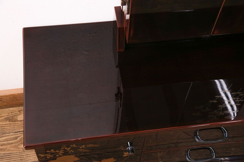 民芸家具 > 未使用 新古品 最高級 勝月銘 蒔絵入り 本漆溜塗り 四季折々の草花の蒔絵が情緒溢れる鏡台(定価約95万円)(姿見、ドレッサー)(R-049635)
