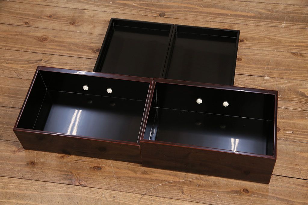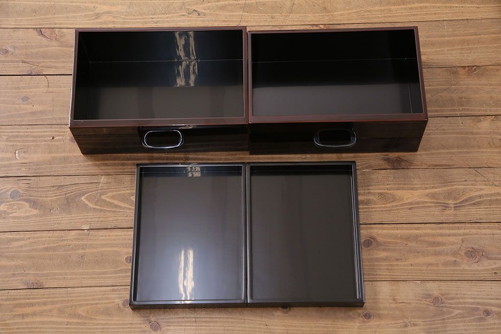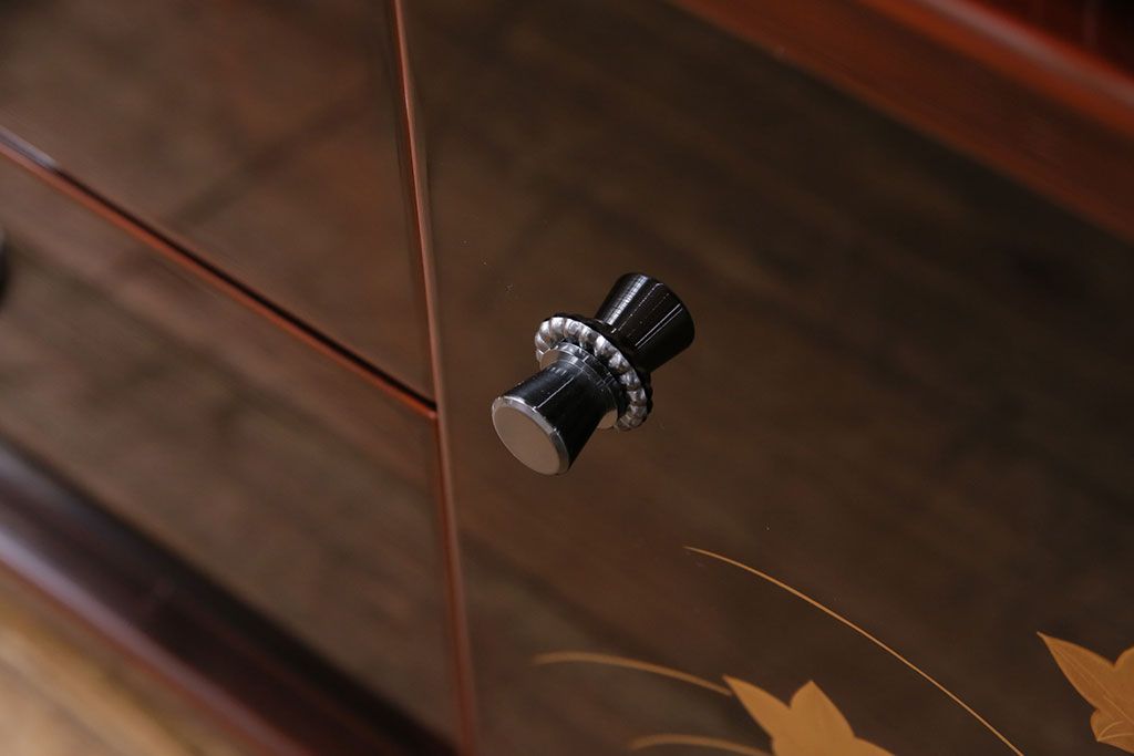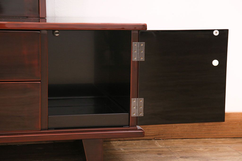 戸棚や引き出しの内部に至るまで漆塗りが施されており、