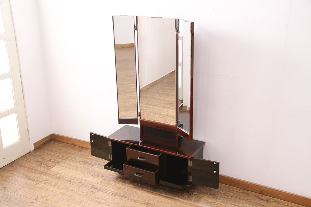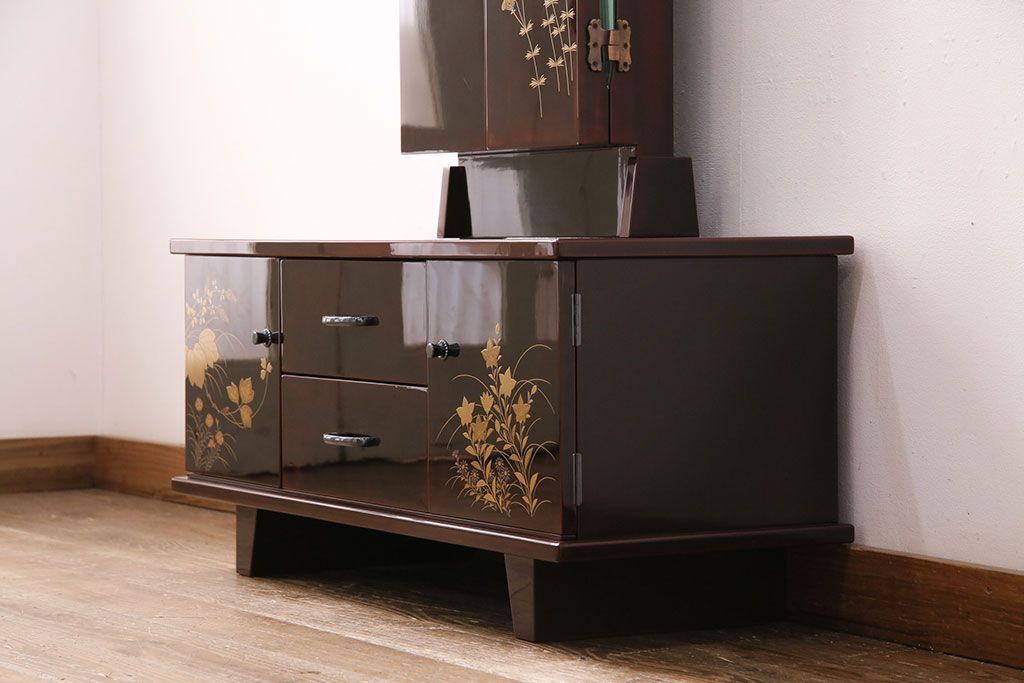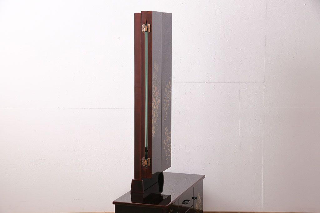 未使用 新古品 最高級 勝月銘 蒔絵入り 本漆溜塗り 四季折々の草花の蒔絵が情緒溢れる鏡台(定価約95万円)(姿見、ドレッサー)(R-049635)