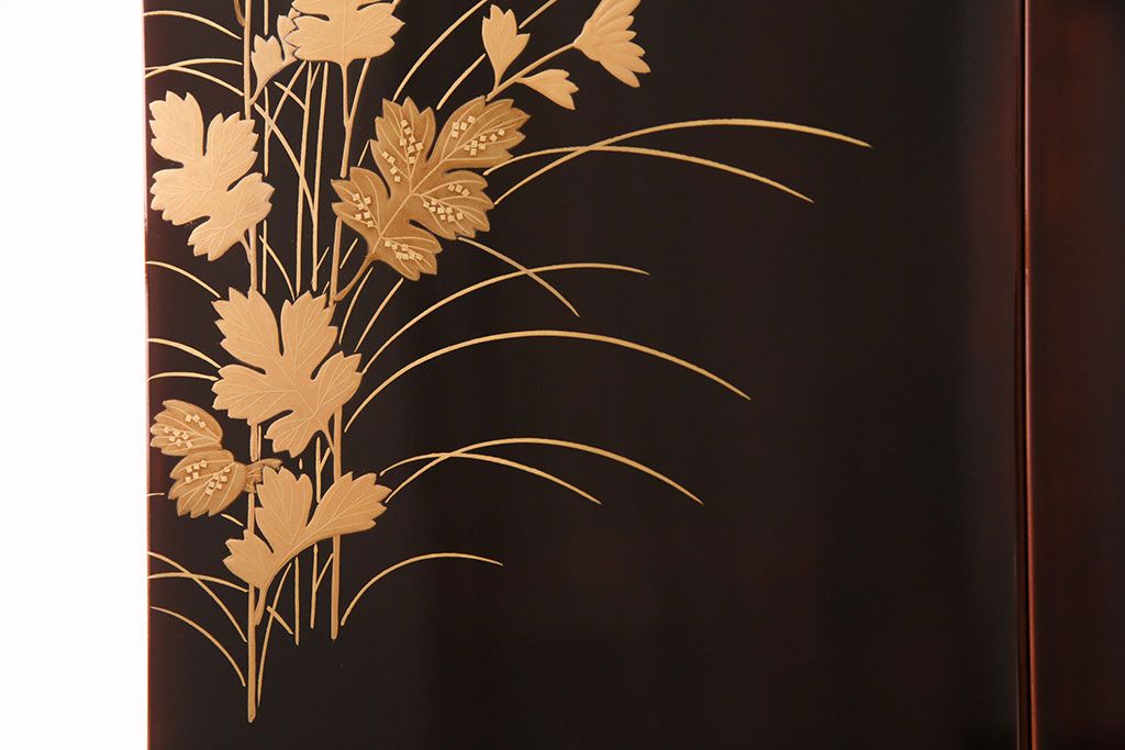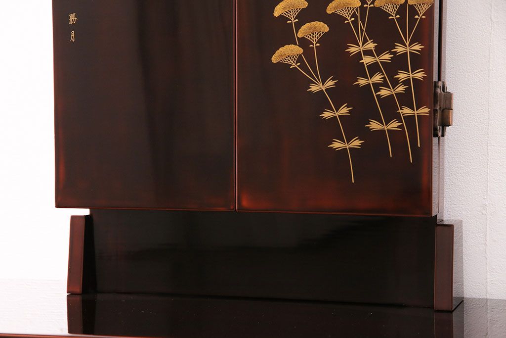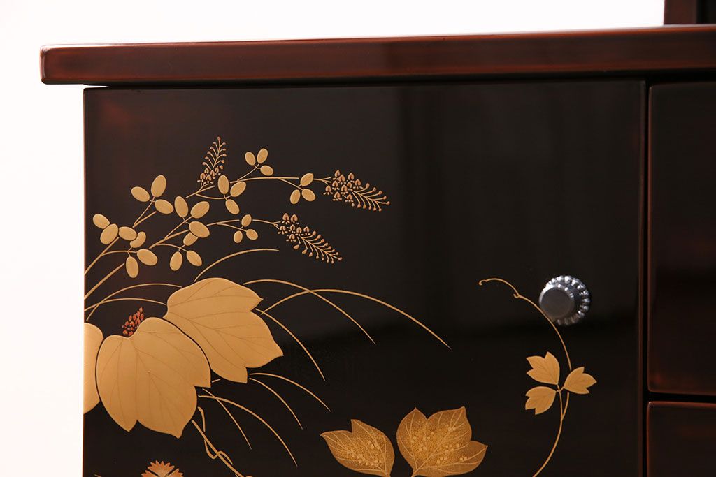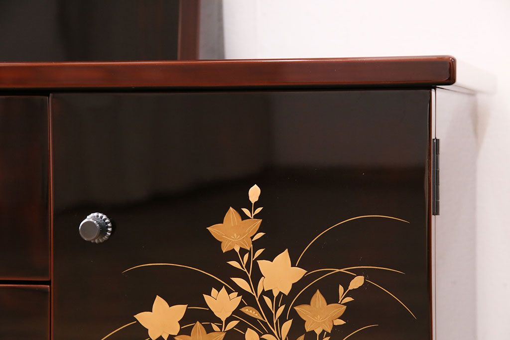 ドレッサー・鏡台 > 未使用 新古品 最高級 勝月銘 蒔絵入り 本漆溜塗り 四季折々の草花の蒔絵が情緒溢れる鏡台(定価約95万円)(姿見、ドレッサー)(R-049635)