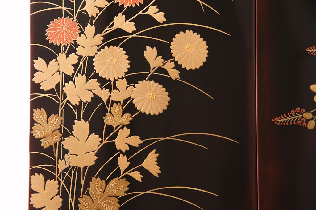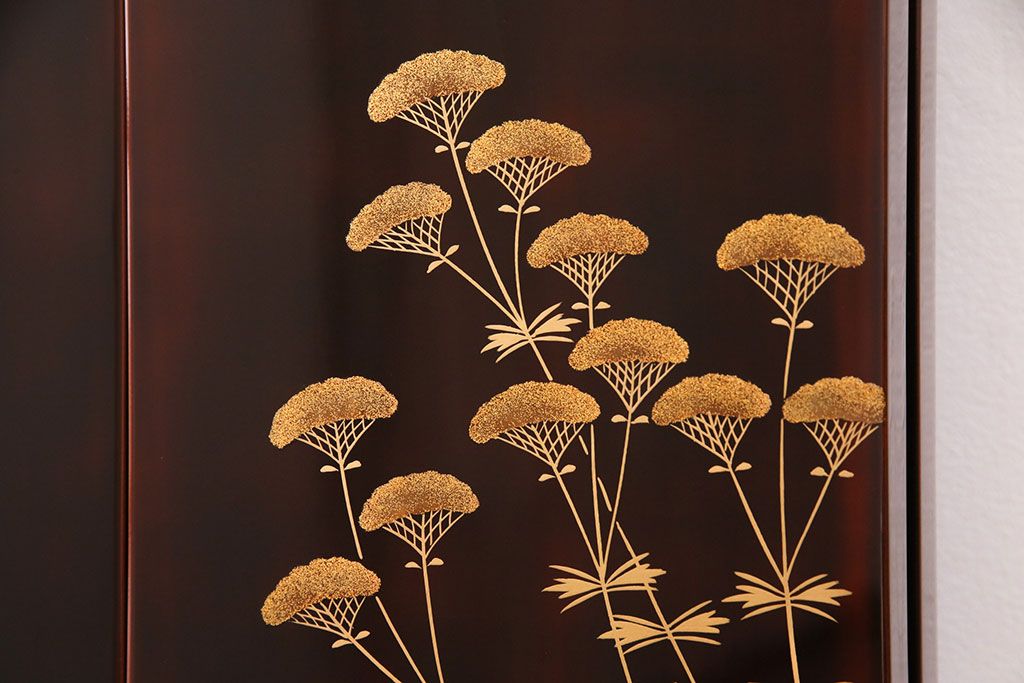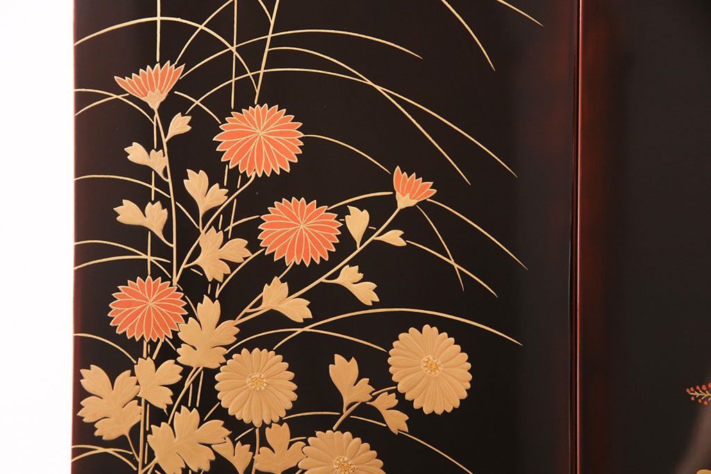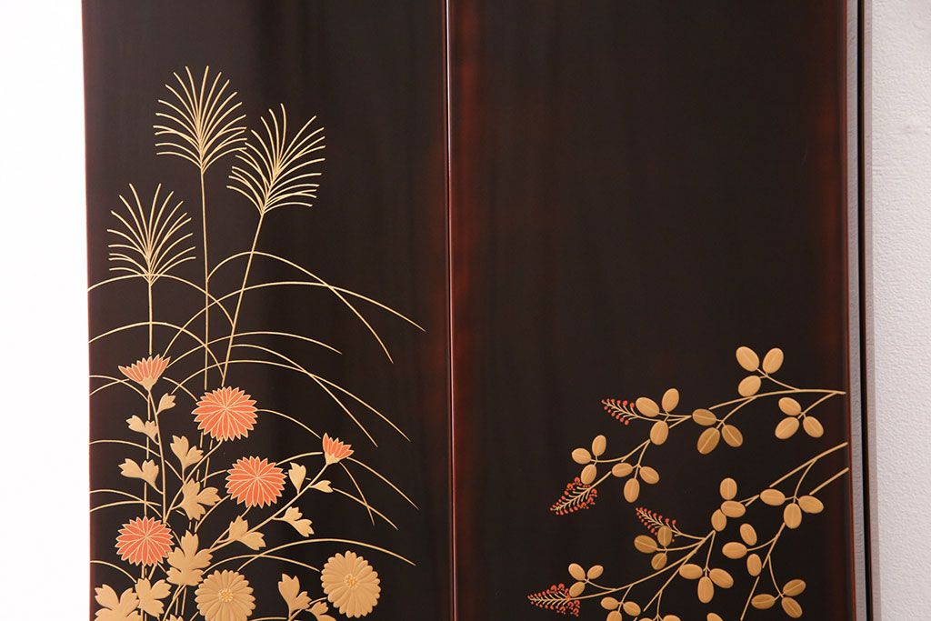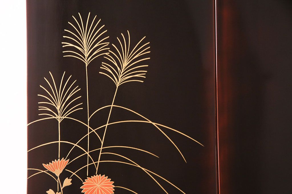 ドレッサー・鏡台 > 未使用 新古品 最高級 勝月銘 蒔絵入り 本漆溜塗り 四季折々の草花の蒔絵が情緒溢れる鏡台(定価約95万円)(姿見、ドレッサー)(R-049635)