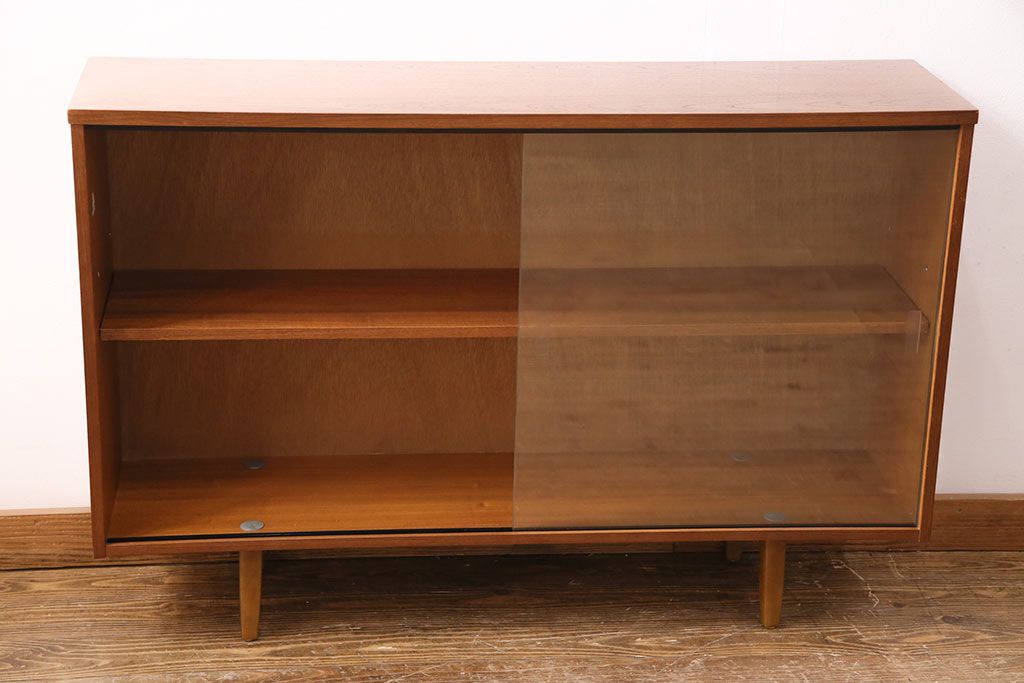ヴィンテージ家具 イギリス チーク材 シンプルで洗練されたデザインがおしゃれなブックケース(リビングボード、キャビネット、飾り棚)(R-049733)です。