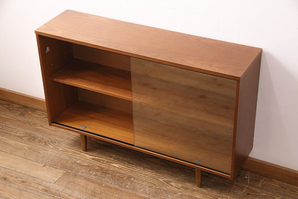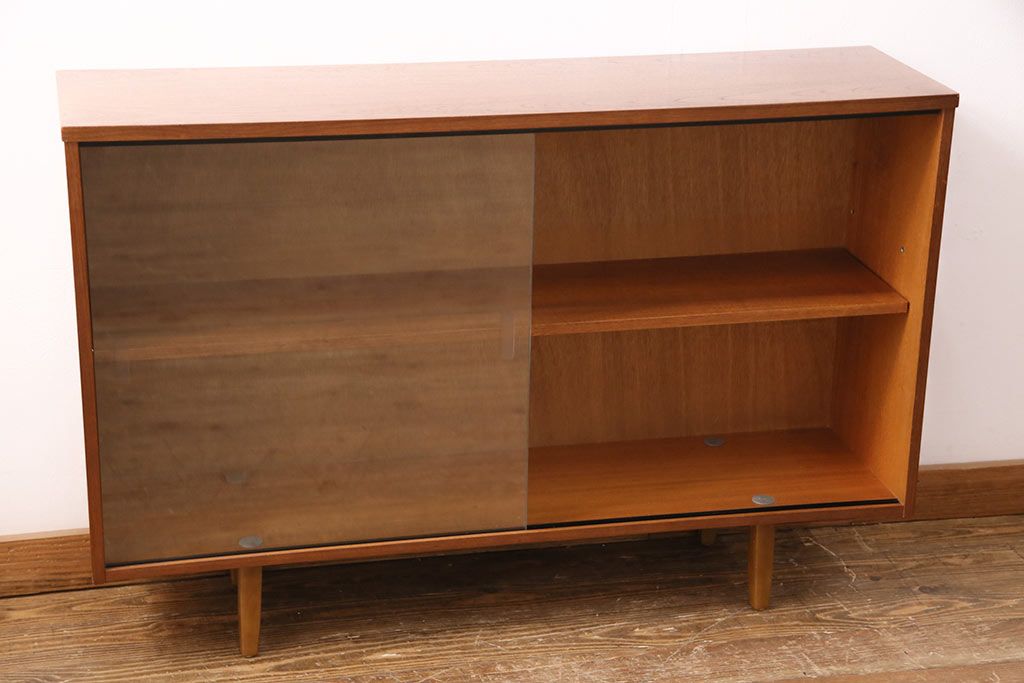 ヴィンテージ家具 イギリス チーク材 シンプルで洗練されたデザインがおしゃれなブックケース(リビングボード、キャビネット、飾り棚、ビンテージ)(R-049733)