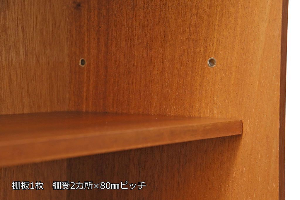 棚板は取り外しできます。棚板は1枚あります。棚受けは2ヶ所、80mmピッチで調整できます。棚